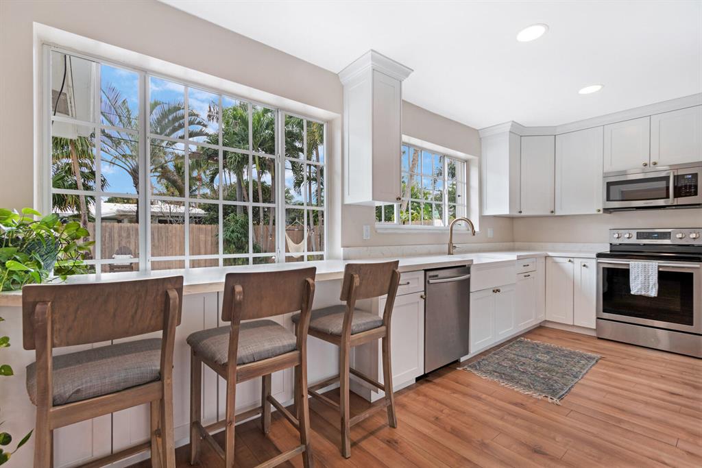 NEW ROOF/NEW POOL This 3 BEDROOM 3 BATH + GARAGE in IMPERIAL POINT with SIDEWALKS and STREET LIGHTS - has everything you could want. HUGE PRIVATE FENCED BACKYARD. The NEW KITCHEN TOTALLY REMODELED features snack bar, new appliances, shaker cabinets and CARRARA QUARTZ countertop for a lifetime of fashion and design. The OPEN CONCEPT invites you in and draws your eyes to the Dining Room - open wide and view of the pool. This warm and beautiful home with extra-large living area is bordered by large bay windows. And there are many large windows and lots of natural light as you walk through. The 3 bedrooms are large and 2 that could be Masters with large closets and either a view of the pool or a sitting area/small desk and more closets outside of the bedroom. All of the bedrooms have