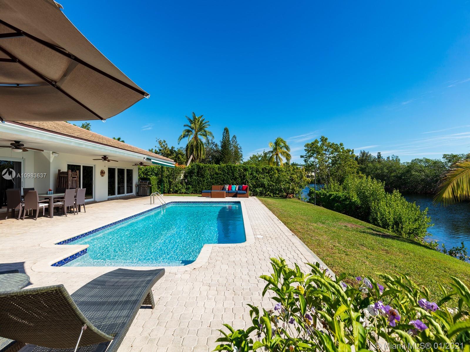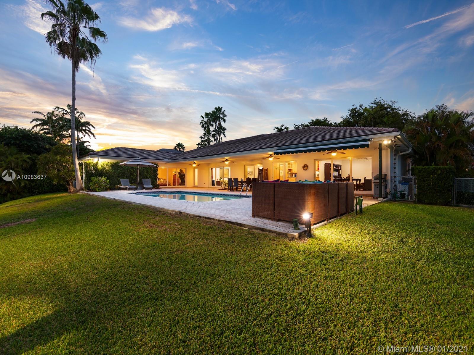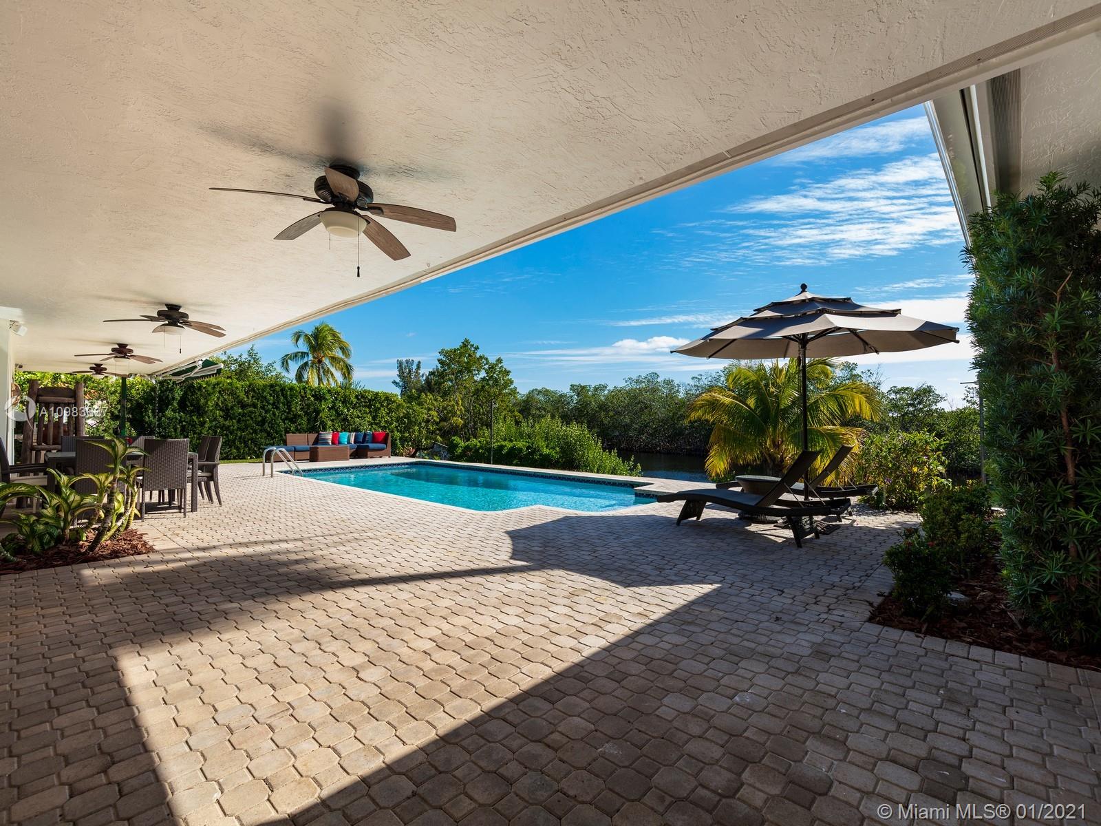 Enchanting one-story canal front home located in the guard gated community of Hammock Oaks. This tranquil 5 bedroom and 4.1-bathroom home has been updated throughout with an expansive open floorplan providing gorgeous outdoor views. Discover a spacious formal living room and dining room, separate family room and gourmet kitchen overlooking pool area and canal. Master suite offers walk-in closet, backyard access and spa bath with jacuzzi tub. Experience ultimate outdoor living with a covered terrace, large pool, breathtaking sunset water views, and a sea of mangroves just beyond. Additional Features: impact windows & doors, 2 car garage, and elite private and public schools.