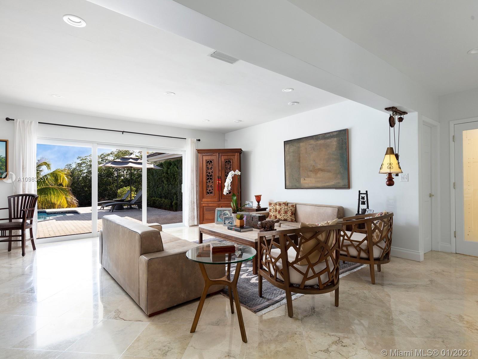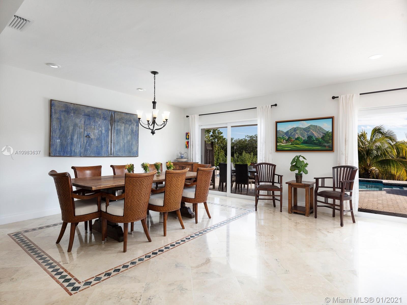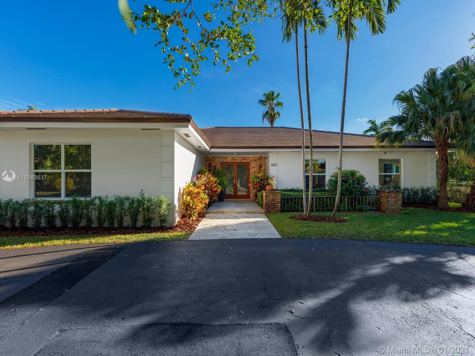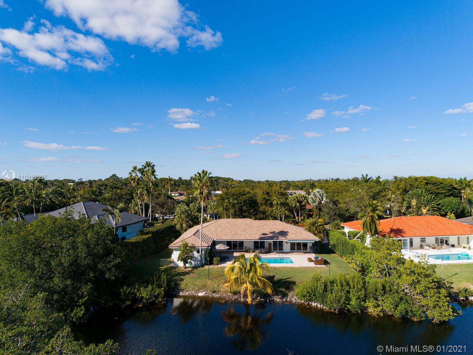 Enchanting one-story canal front home located in the guard gated community of Hammock Oaks. This tranquil 5 bedroom and 4.1-bathroom home has been updated throughout with an expansive open floorplan providing gorgeous outdoor views. Discover a spacious formal living room and dining room, separate family room and gourmet kitchen overlooking pool area and canal. Master suite offers walk-in closet, backyard access and spa bath with jacuzzi tub. Experience ultimate outdoor living with a covered terrace, large pool, breathtaking sunset water views, and a sea of mangroves just beyond. Additional Features: impact windows & doors, 2 car garage, and elite private and public schools.