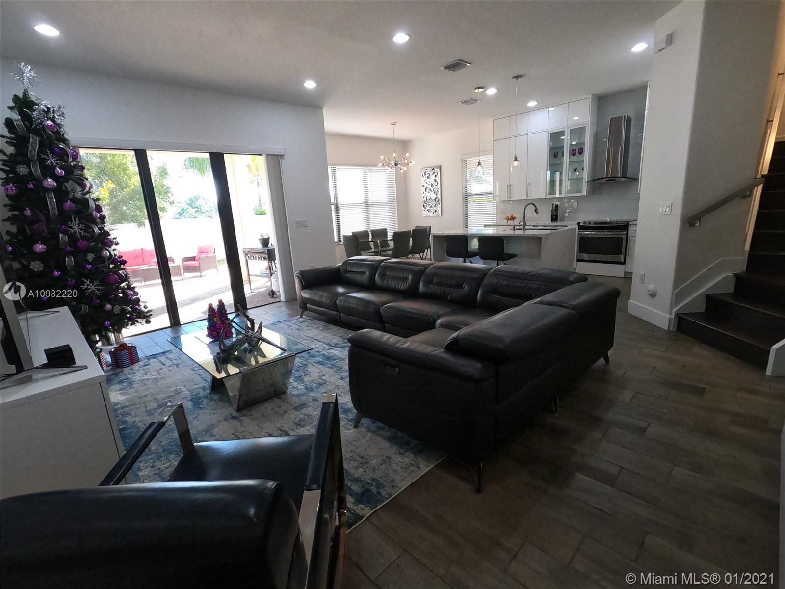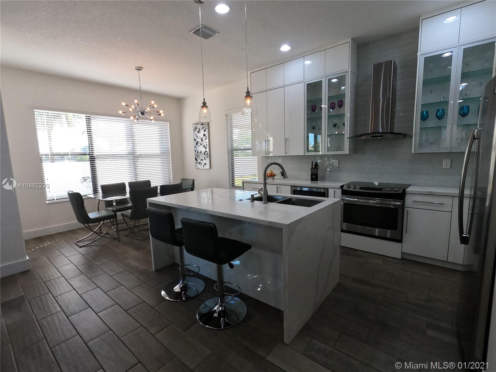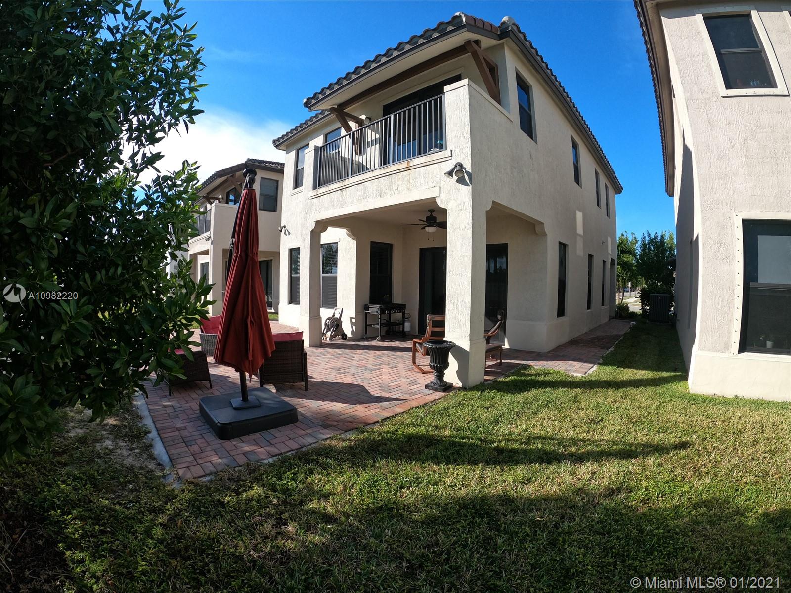 Beautifully updated home in Bonterra gated community. This 3/2.5 is very spacious and has been updated tastefully to appreciate the open feeling as soon as you come in the front door. Great entertainment area in your convened living, dining, kitchen and open brick patio. Half bath on first floor and the garage that can be use as game/movie room with wet bar & cabinets. The stairs metal railing have been updated with a very modern chandelier and wood floorings through the second floor. Large Master bedroom with Balcony, master bath has both shower and tub with his and her sinks. Two walk in closets that have been updated with organizers to maximize the space. This community is strategically located near i75, Palmetto Exp. And Turnpike connections.