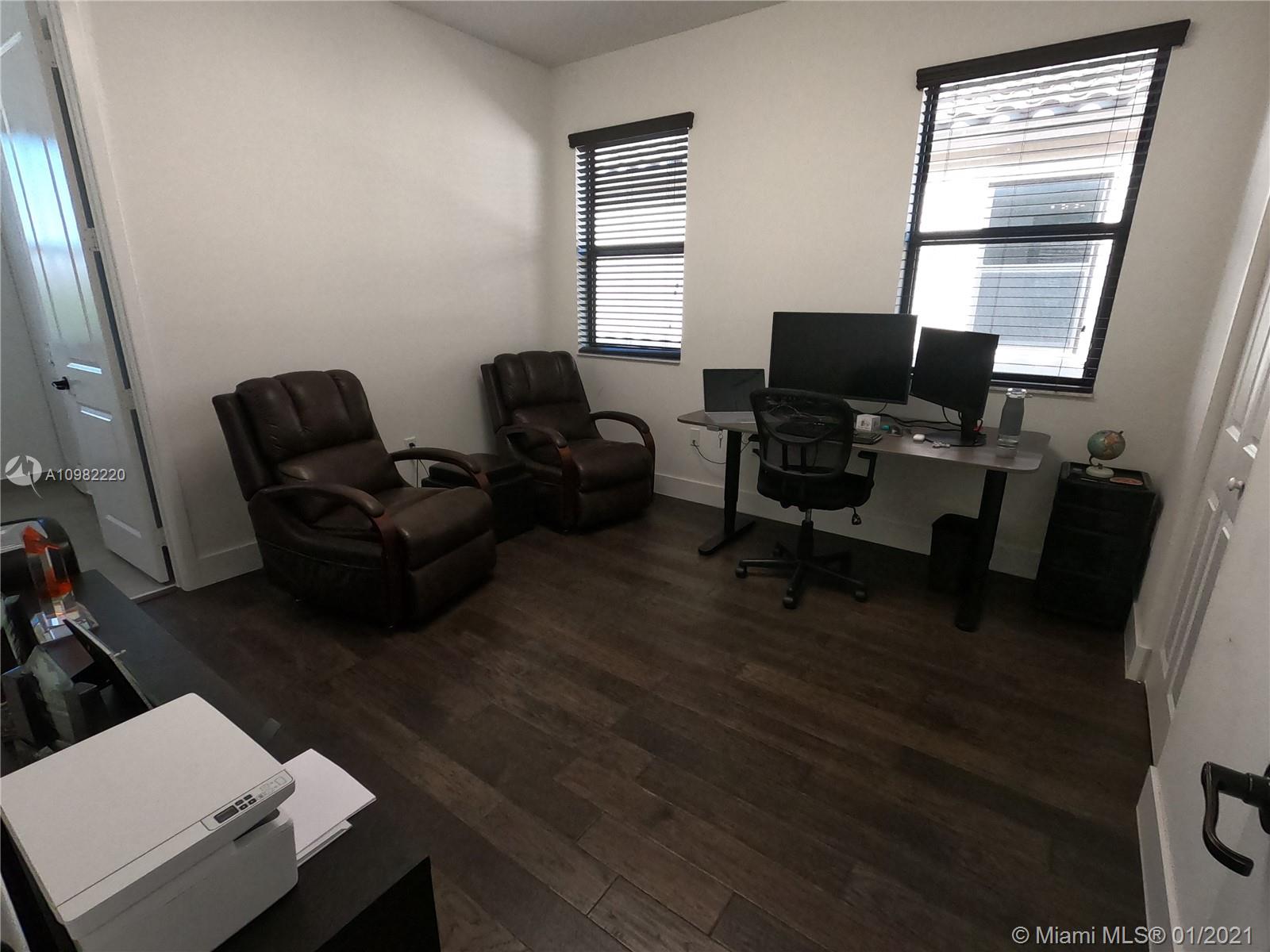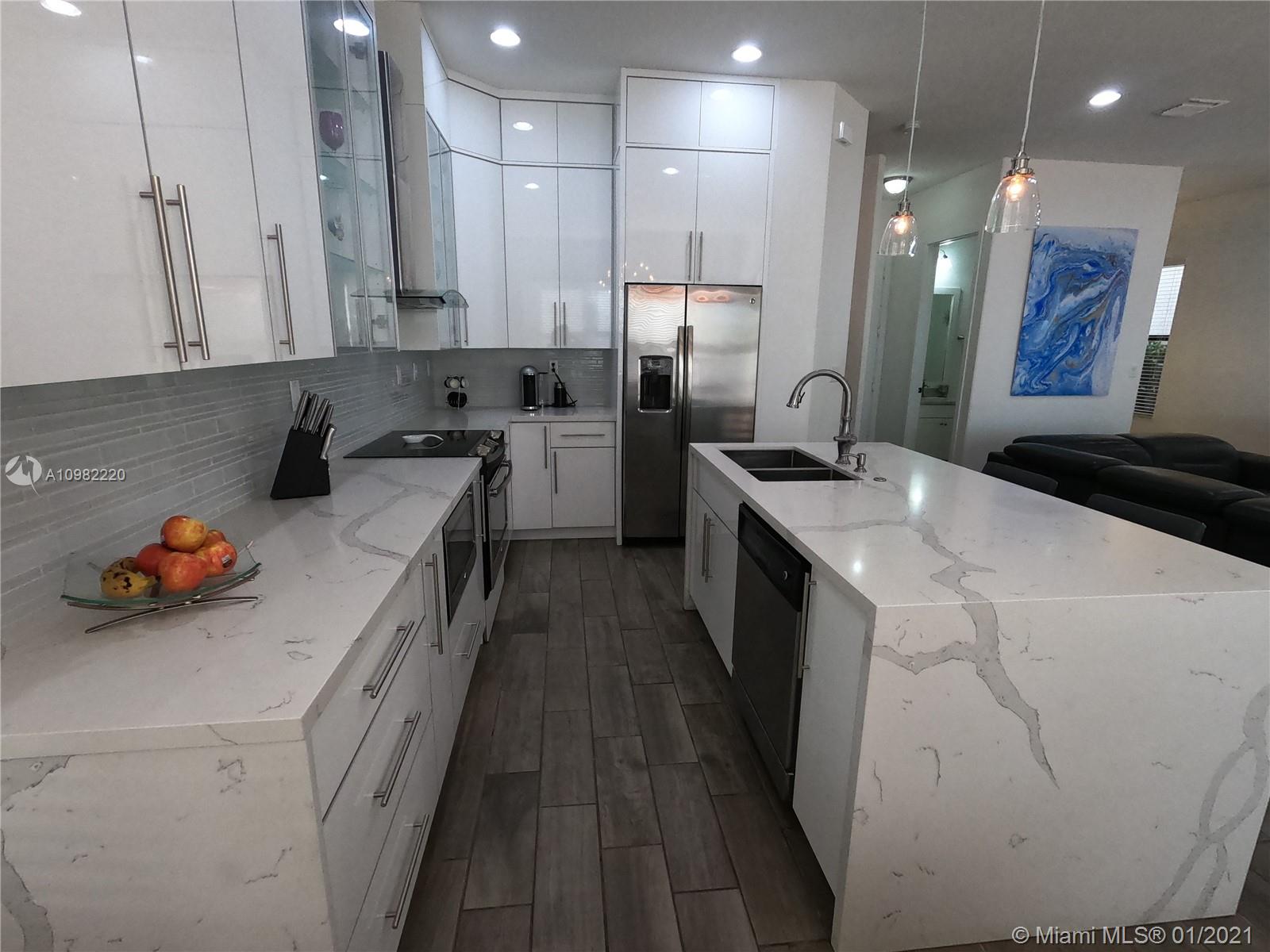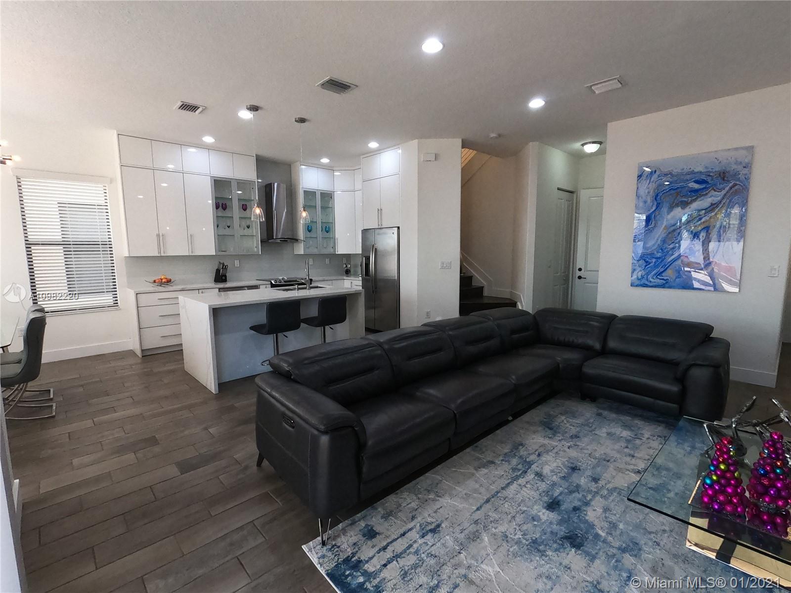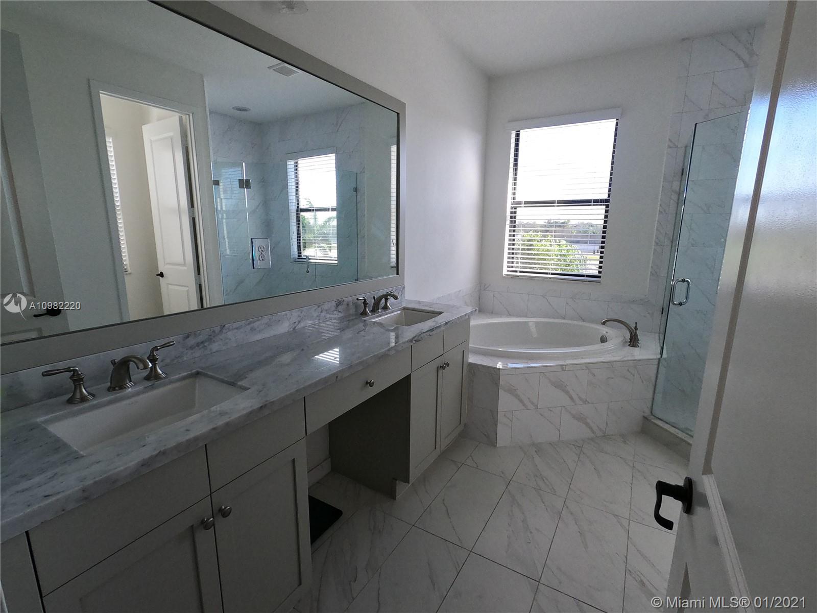 Beautifully updated home in Bonterra gated community. This 3/2.5 is very spacious and has been updated tastefully to appreciate the open feeling as soon as you come in the front door. Great entertainment area in your convened living, dining, kitchen and open brick patio. Half bath on first floor and the garage that can be use as game/movie room with wet bar & cabinets. The stairs metal railing have been updated with a very modern chandelier and wood floorings through the second floor. Large Master bedroom with Balcony, master bath has both shower and tub with his and her sinks. Two walk in closets that have been updated with organizers to maximize the space. This community is strategically located near i75, Palmetto Exp. And Turnpike connections.