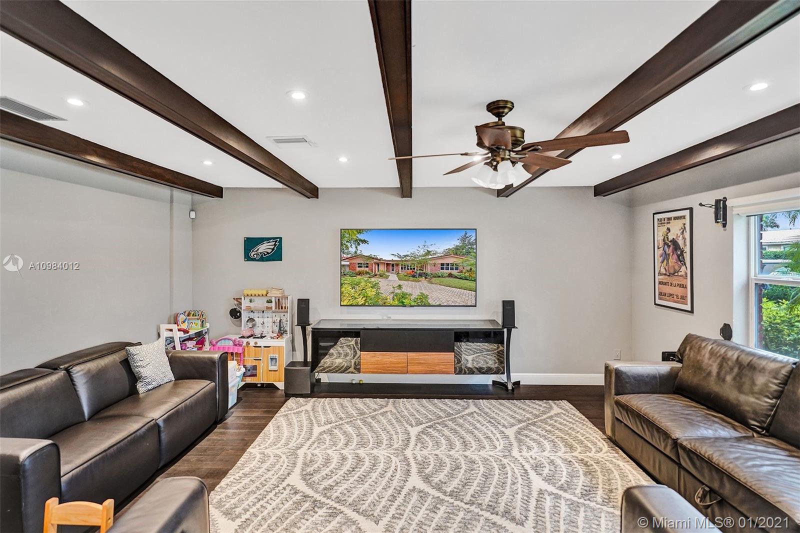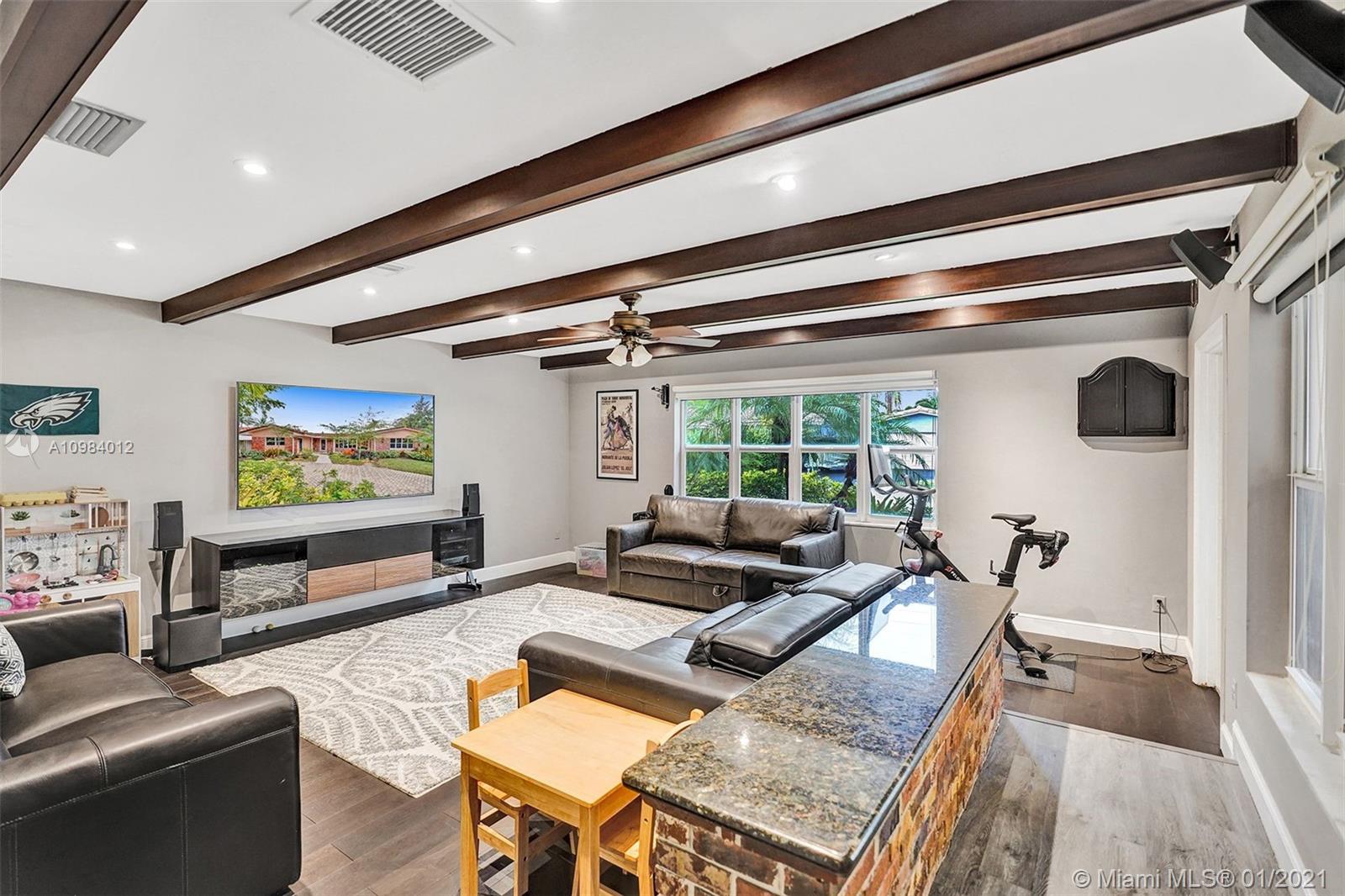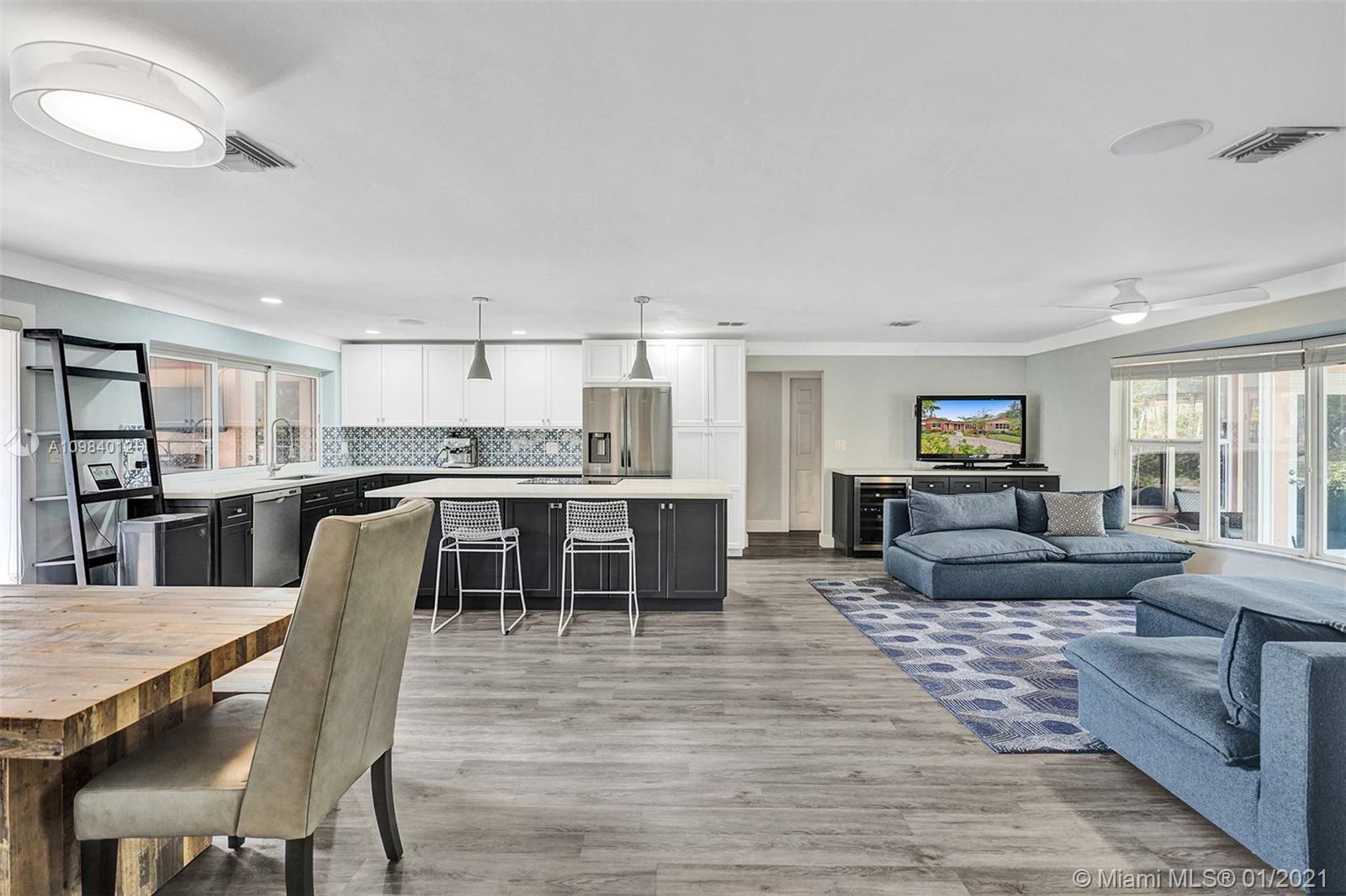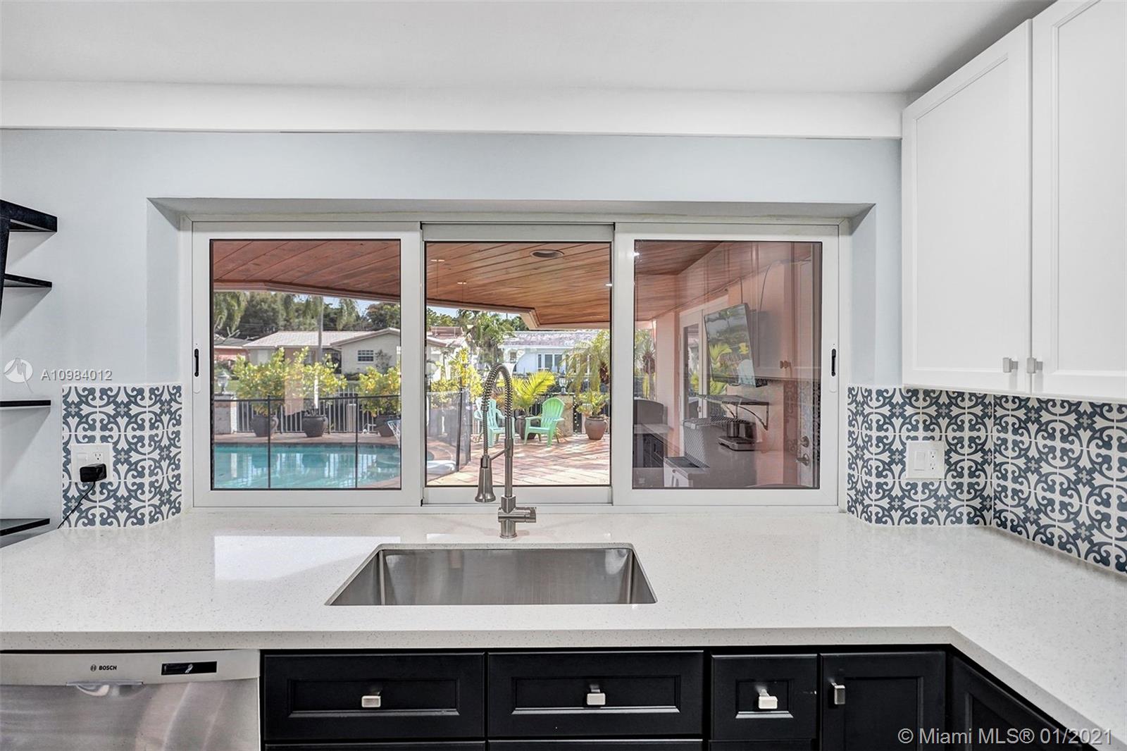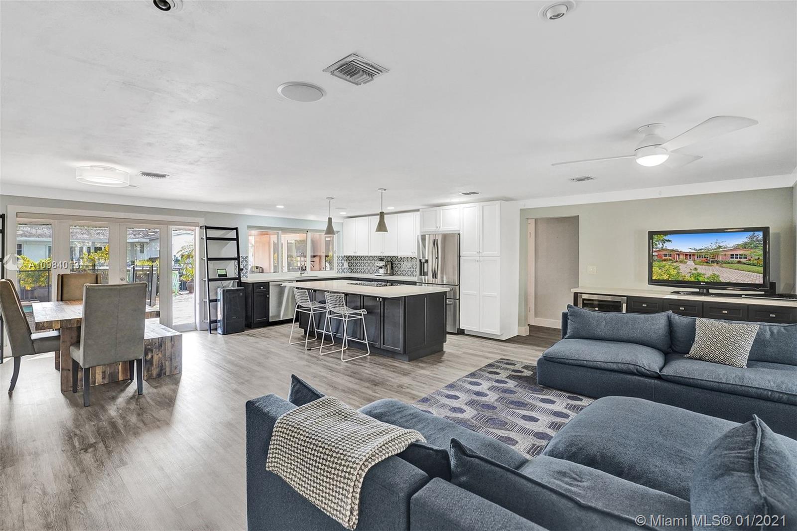 BEAUTIFULLY REMODELED WATERFRONT POOL HOME IN CORAL RIDGE ISLES. SPACIOUS LIVING, OPEN KITCHEN, QUARTZ COUNTER TOPS, TILE BACK SPLASH, STAINLESS STEEL APPLIANCES, WINE COOLER. LARGE LAUNDRY ROOM. HURRICANE IMPACT WINDOWS AND DOORS. THREE BEDROOMS, TWO BATHROOMS WITH LARGE MEDIA ROOM/BEDROOM (GARAGE WAS CONVERTED TO MEDIA ROOM). MASTER BATH OFFERS SOAKING TUB, DUAL VANITY SINK WITH CARRERA MARBLE TOP, MAKE UP VANITY, LARGE SHOWER WITH BENCH. CIRCULAR PAVED DRIVEWAY, FENCED YARD, GENERATOR, BOAT DOCK, CONTROL 4 SMART HOME, NEW DUAL ZONE AC, NEW HVAC DUCT WORK, OUTDOOR TV AND MORE.