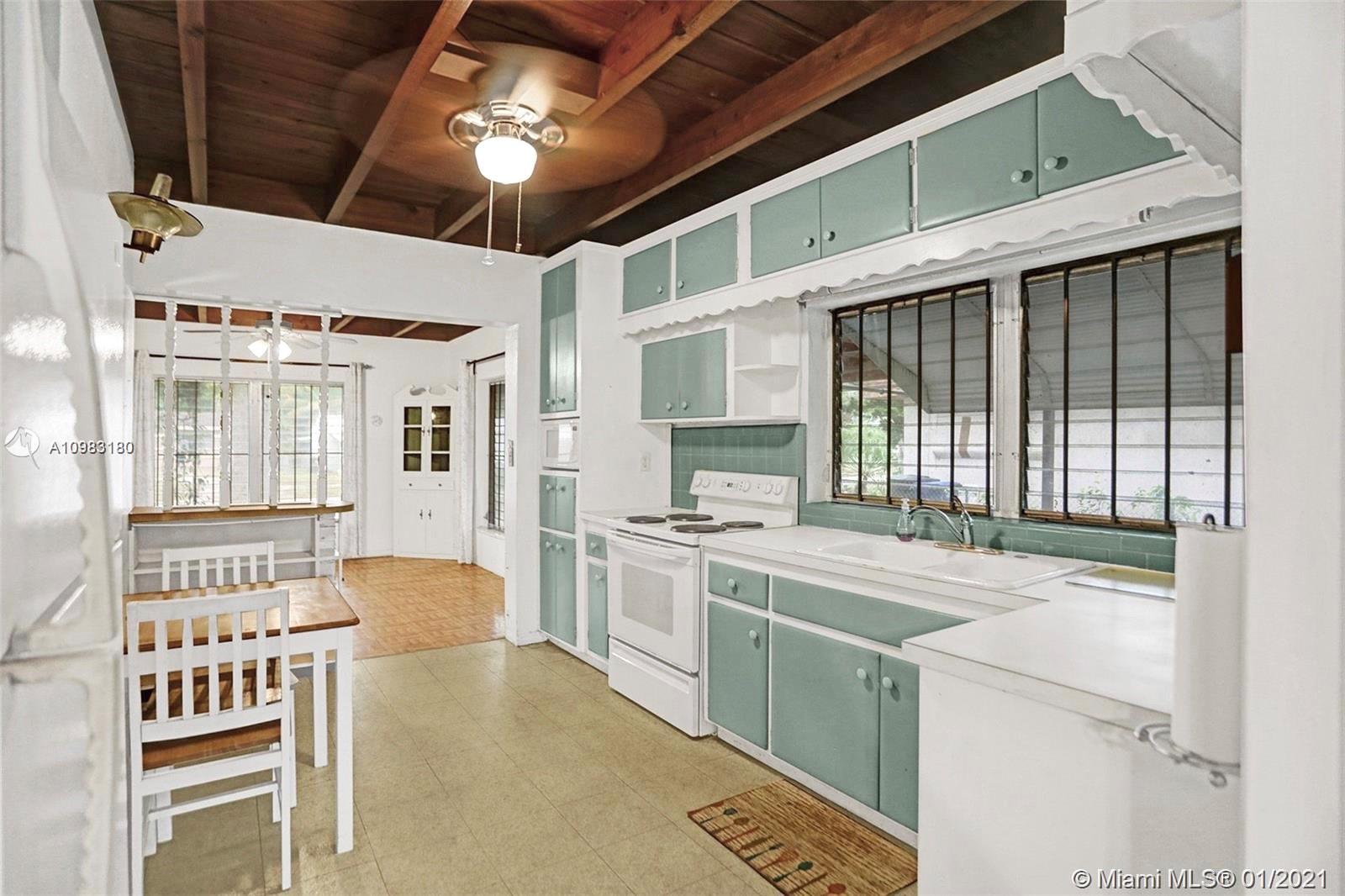 GORGEOUS HOME in a Charming North Miami Beach. This home is in excellent condition, very well maintained and loved over the years. ORIGINAL TERRAZZO FLOORS THROUGHOUT entire home that can be beautifully refinished. Wooden beam ceilings that are lovely. Big, Beautiful home with incredible living spaces, bright natural light, and high ceilings. Great bedrooms, huge master suite. Adorable original kitchen in perfect condition (wow!) with nice pantry. HUGE BACKYARD with wide open view, COMPLETE PRIVACY. Fully fenced, PERFECT FOR PET OWNERS. This ORIGINAL OWNER built the house! Great condition. Additional Notes: Updated Electric, Roof 6 Years, Minor Repairs needed in 1 bath for shower pan + Valves. Room for Pool, entertainment space! Lovely Carport. OWNER PREFERS CASH OFFER.