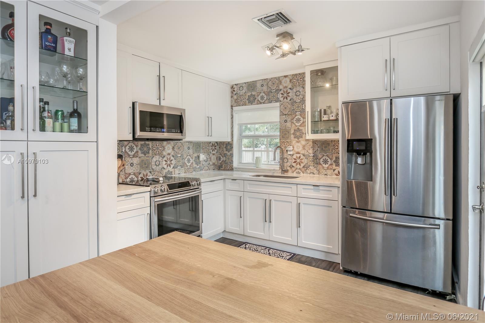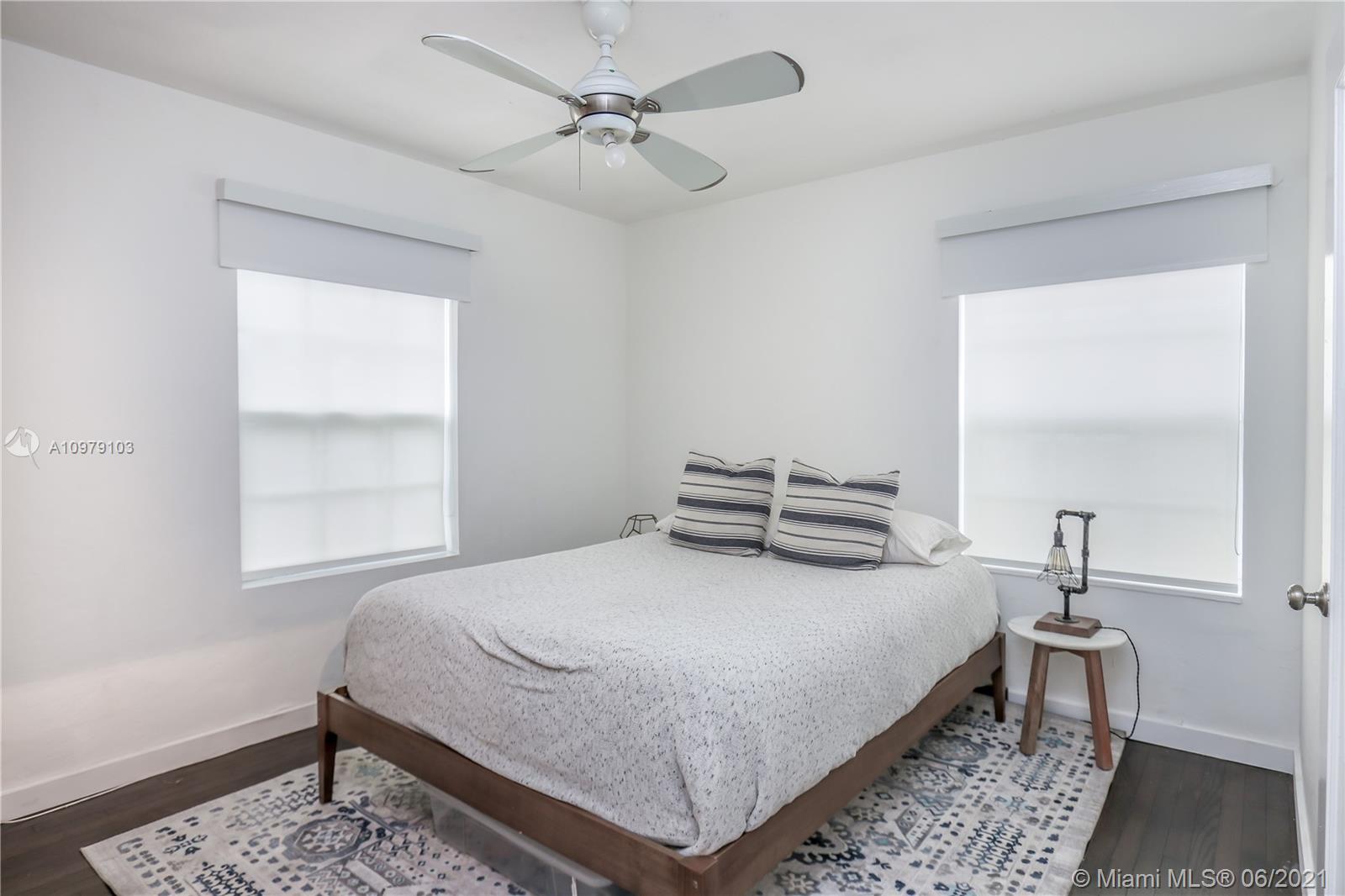 Lovely home in a desirable neighborhood! This is a 2 bedroom 1 bath home with wood floors throughout. Bathroom was updated in 2019 with subway tiles and glass shower doors. Open concept kitchen that was also redone in 2019 with new white cabinets, tile backsplash, and quartz countertop. Stainless steel sink and appliances. Impact windows and doors. Solar shades throughout home with the ones in the living room and master bedroom being remote control operated. Large backyard with storage shed and enough room for a pool and to park an RV or boat. Back gate is new. Located just 1 mile from Downtown Hollywood and 3 miles to Hollywood Beach and Broadwalk. Short distance to Fort Lauderdale Hollywood Airport. Tons of shopping and Dining options at Aventura Mall & Gulfstream Park Racing and Casino!