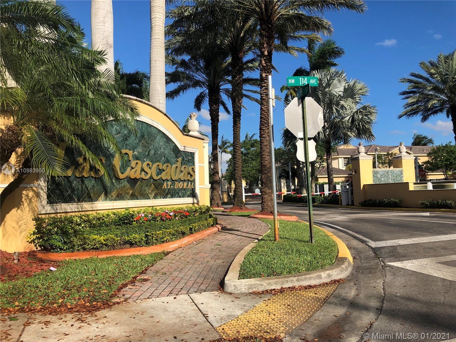 UNIQUE OPPORTUNITY!!! 3 BED 2.5 BATHS PLUS DEN. TOWNHOUSE IN WELL-SOUGHT AFTER GATED COMMUNITY OF LAS CASCADAS IN DORAL. ENTER THRU PEACEFUL FRONT PORCH OF HOME TO HOME. DON'T DELAY! IT FEATURES KITCHEN STAINLESS STEEL APPLIANCES, TILE FLOORS. ABUNDANT NATURAL LIGHT, HIGH CEILINGS., RELAX IN THE AFTERNOON AT YOUR ENCLOSED BACKYARD. ROMAN TUB IN MASTER BATH. CALL ME FOR MORE INFO! MASKS ARE MANDATORY.