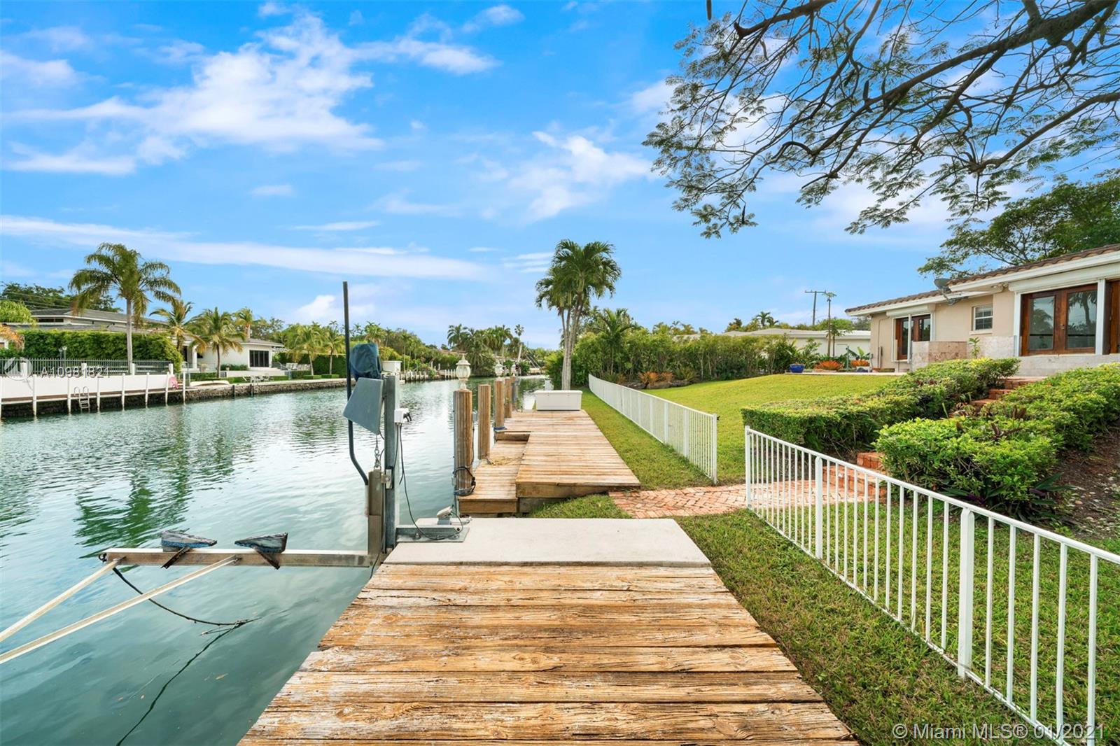 Situated on the highly coveted Coral Gables Waterway, this 2,817 Sq.Ft. home offers absolute privacy and tranquility. Enjoy a chef’s kitchen with granite countertops, exquisitely detailed with custom cabinetry. This warm and inviting home includes a light-filled living and dining area, with French doors leading to a patio area. Surrounded by a manicured garden, palm trees and other mature trees, the property features three bedrooms and 2 and one half bathrooms. The principal bedroom has a spacious walk-in closet, steam shower and French doors that open to the garden, offering beautiful water views. A 2-car garage and private dock complete the property. This one of a kind offering is conveniently located near public and private schools, the University of Miami and public transportation.