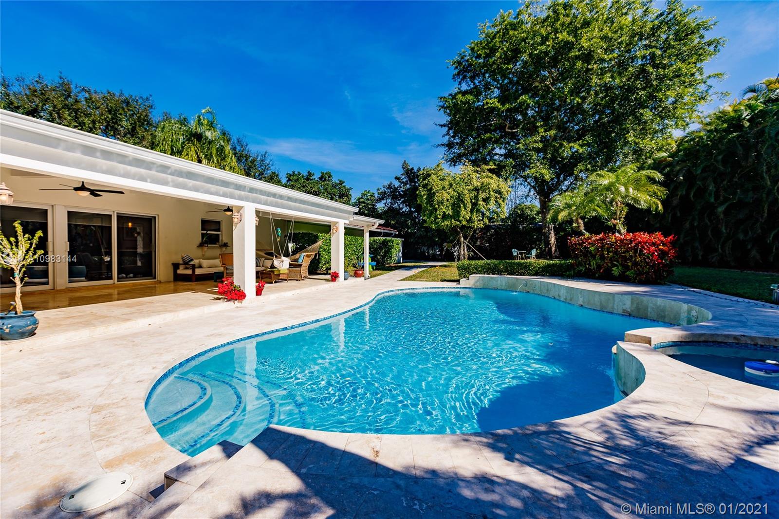The perfect home in the prefect neighborhood!! Beautifully updated pool home on a tropical and private half acre lot with fruit trees in the Devonwood neighborhood of Pinecrest. Brand new kitchen with gas cooktop. Extremely spacious master suite with huge walk-in closet. This home has all impact windows/doors, an incredible backyard with heated pool. There is attached two garage and a large circular driveway with port-cochere. The neighborhood is beautiful, quiet and safe.