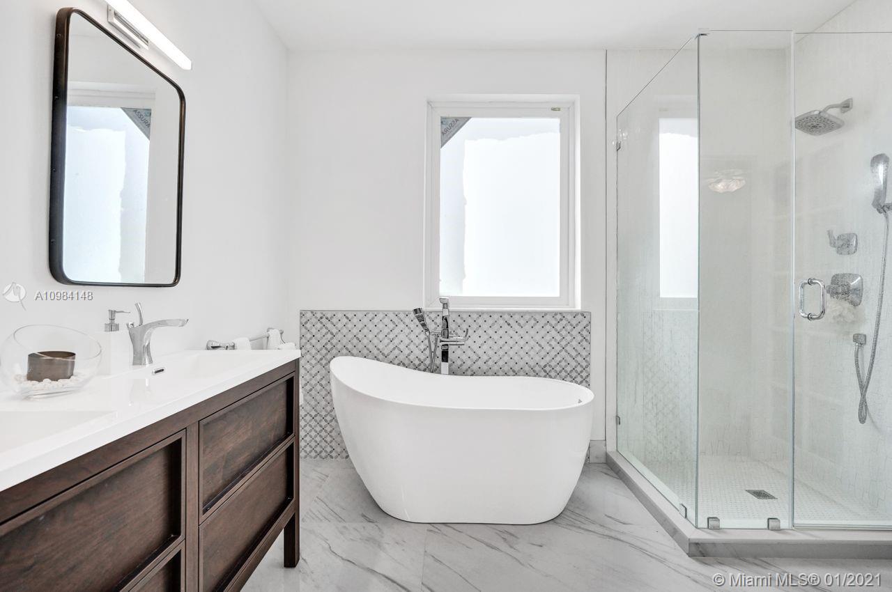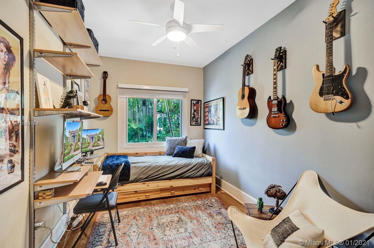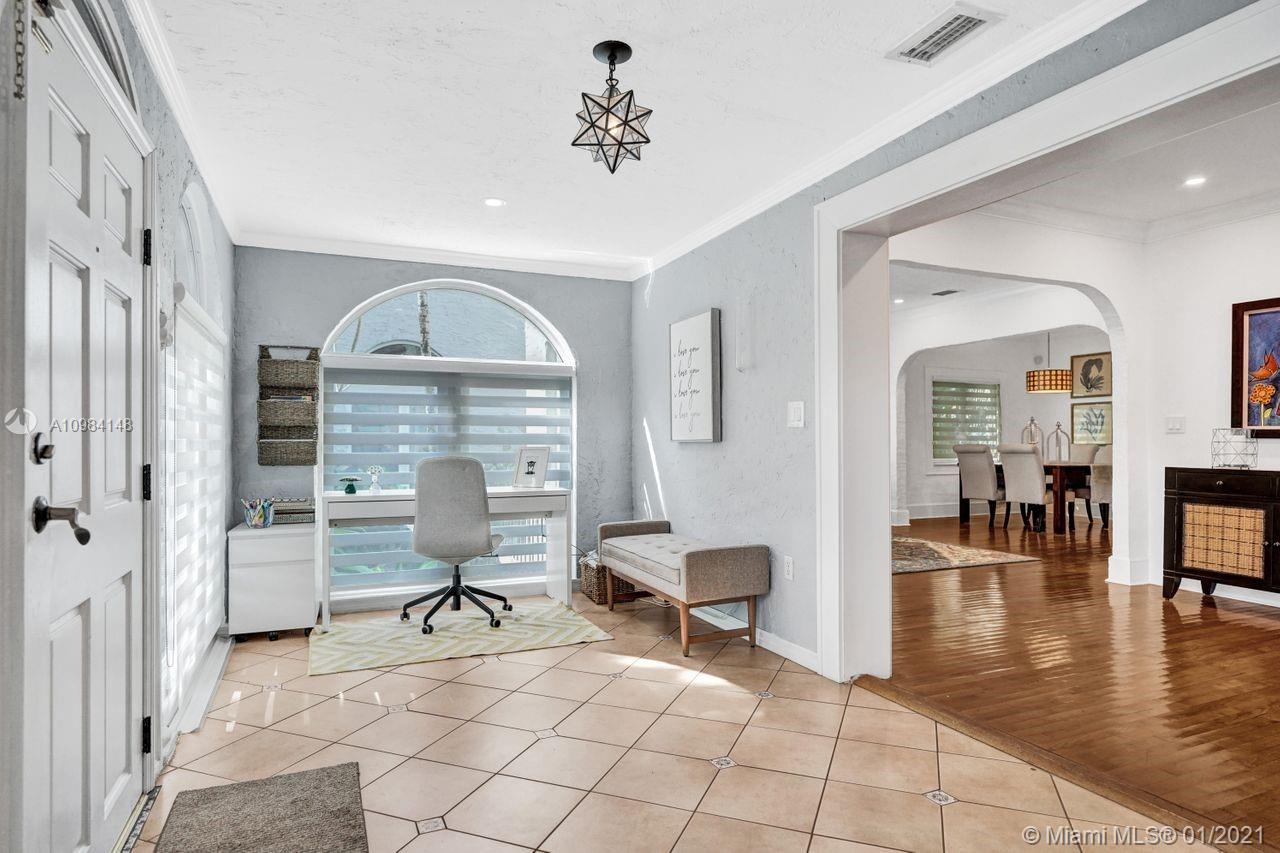 Renovated Old Spanish home with 1,976 sf on quiet N Gables street. Features include 3/2 main house + separate bonus room + carport. Newly updated maintaining architectural elements including original spiral columns, wood floors, decorative mantle & original arches. Foyer entrance with enclosed front porch perfect for home office leads to formal living room, bonus living area & separate dining room. Designer ktchn with white quartz counters, custom cabinetry & walk in pantry renovated 2017. Spacious master bath with double sinks, separate shower & tub renovated 2019 & walk in closet. Converted garage offers flex space for office/den + storage. Roof 3.5 yrs old, impact windows, telescoping door, a/c & water heater installed 2020. Private back and separate side patio perfect for entertaining.