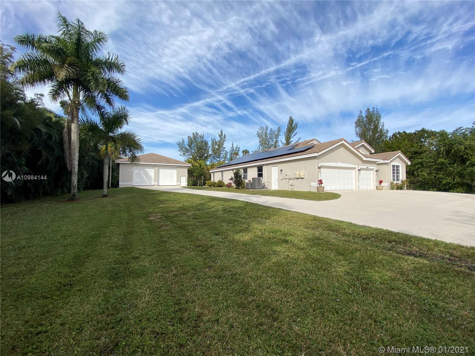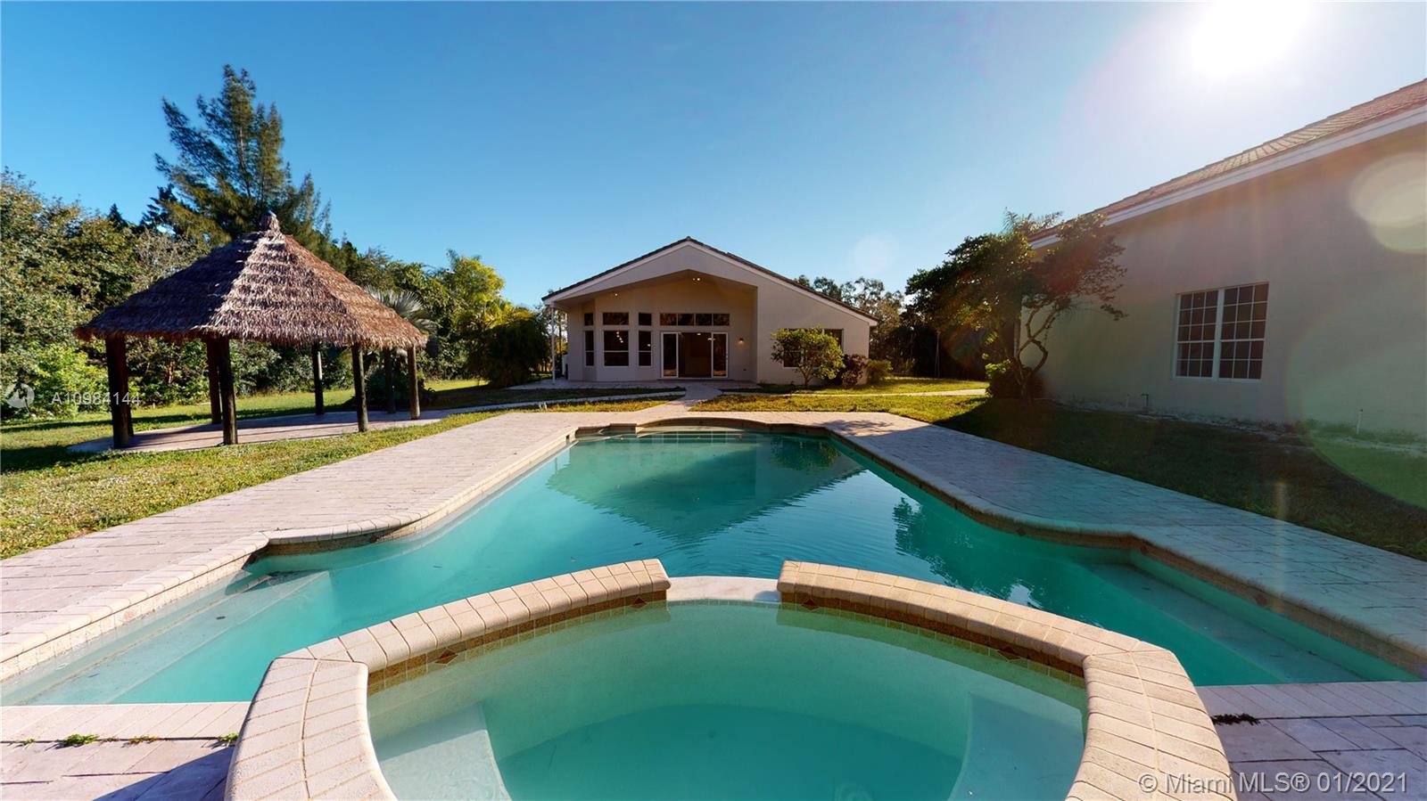 If an amazing 4 bedroom 3 full bath newly remodeled pool home with a detached 2,400 Sq ft airconditioned garage with an office on 1.54 Acres is what you're looking for, then there's no need to look any further than this gorgeous home located in Sunshine Ranches! 5,139 Sq ft under air between both structures! One of the rarely available corner lots and is high and dry. Home and detached garage are on a solar powered system! Relax while sitting under your 20 foot Tiki Hut overlooking your heated pool which is perfect for entertaining and for precious family moments. Driveway areas offer tons of parking! Detached garage can fit an RV or can be converted into a guest house. See this home and fall in love. Fully immersive virtual tour is available just click on the virtual tour link