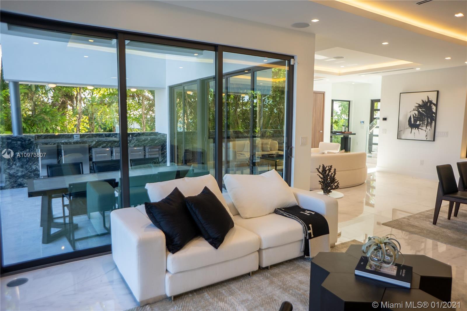 BRAND NEW CONSTRUCTION 2021. 2 STORIES WATERFRONT HOME . MODERN DESIGNED WITH LUXURY MATERIAL , ALL ITALIAN MARBLE THROUGHOUT INCLUDED SMART-HOME;ALRM SYSTEM; OPEN CONCEPT GOURMET CHEF’S KITCHEN WITH NATURAL GAS MIELE APPLIANCES; LARGE 5 BEDROOMS; 5.5 BATHS ; IMPACT WINDOWS; APPROX. 4000 SF UNDER AIR; SUMMER KITCHEN WITH /BBQ NICE ENTERTAINMENT, INCREDIBLE ROOF-TOP TERRACE WITH DRAMATIC 360 WATER VIEWS TO MOST EXPANSIVE INDIAN CREEK AND DOWNTOWN INFINITY POOL FACING ALL MANSIONS AND COUNTRY CLUB ; NEW SEAWALL AND NEW DOCK FOR BOATS AND ROOM FOR JET SKIS WITH SO MUCH MORE ! THIS PROPERTY HAS ALL INTERIOR DESIGNED FROM VESTA . BUY THIS AMAZING PROPERTY AS A TURNKEY !