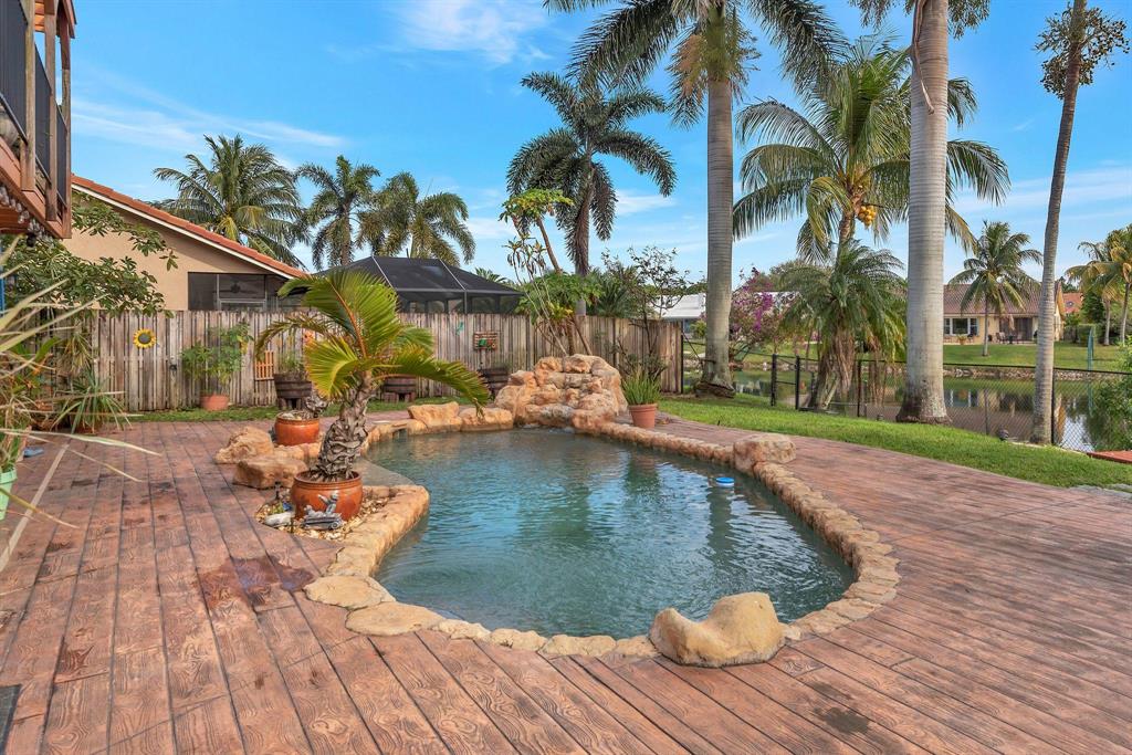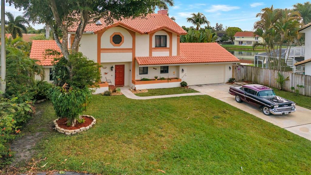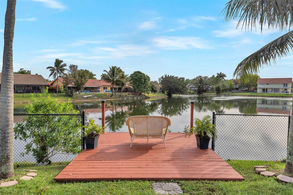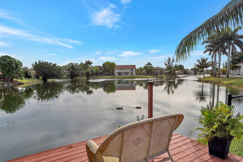 Enjoy lake front living at its finest in this updated MARGEAUX Model at Waterford . From the updated kitchen and master bath to the cul-de-sac lake front lot with grandfathered in private dock. This home is an entertainers dream. The huge rear covered patio overlooking the custom pool with spa. Fully fenced rear yard and it even has a second floor deck off the master bedroom to enjoy sunrises and a cup of coffee looking over the well stocked lake. Updates include impact windows and doors new interior trim and 5/1/4 inch base boards and interior doors. The main AC was replaced a few years back and the roof was replace in 2010. Washer and dryer are a year old and the popcorn ceilings were removed in all rooms but the den. The den could easily be converted into a 1st floor bedroom