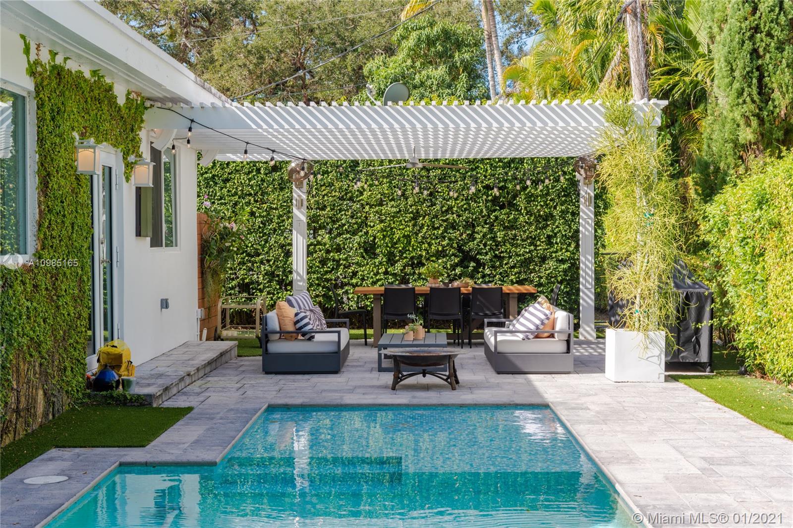 Resort style living on one of Coral Gable’s finest streets! This beautiful house was fully remodeled in 2016 and has a Living area square footage of 2,467 as per appraiser. It is light, bright and inviting and perfect for entertaining thanks to its fabulous back yard. Spaces are open and flow naturally. Gourmet kitchen with quartz countertops and an eat-in area opening on to a fabulous sitting area/family room. All three bedrooms are on one side of the house for privacy of which two have en-suite bathrooms. Wood floors, plenty of built-ins, impact windows and a brand new roof about to be installed next week. Proximity to shops, restaurants, hospitals and great schools. You will love this house!