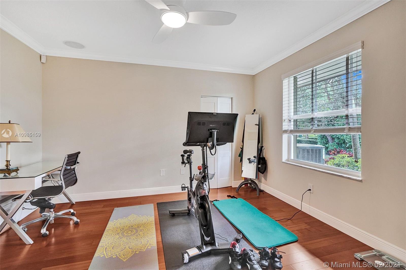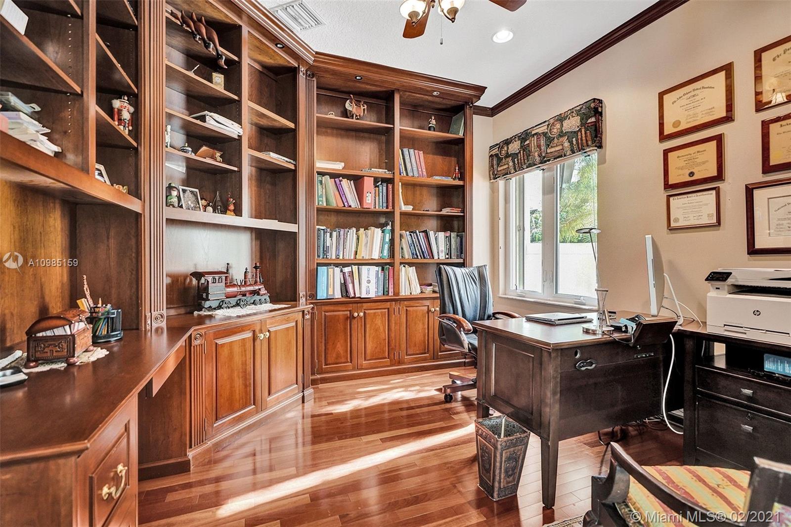 Magnificent home in the highly desired, gated, and private community of The Hamlet with only 35 custom homes. This 4/3.5 home plus his and hers office space features soaring high ceilings throughout with ideal entertaining areas. One of the bedrooms is currently being used as a home theater room. Sweeping windows provide this home with an influx of natural light. Fireplace in family room. The expansive master suite boasts separate his and hers closets. Gorgeous master bath with split his and hers bathroom, two walk-in closets, and separate double shower and jacuzzi. Roof (2006) Two A/C units (5 ton 2020) (3.5 ton 2019). Heated pool resurfaced with pebble tec. New generator transfer switch. Association includes gate, tennis courts, basketball court, and common area maintenance.