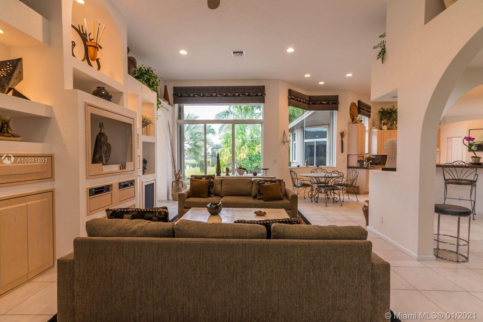 Great opportunity-Weston Hills custom designed & professionally decorated Kingsley II on premium lot w/ no obstruction on Lake & overlooks "Players Course" 15th Fairway. Large formal dining room & large formal living room located near foyer entrance. Spacious family room w/built-in entertainment center. Large kitchen w/ food preparation/storage island, counter bar, & a breakfast nook dining area. Split bedrooms w/Master bedroom, Jack & Jill bedroom & 4th bedroom all separated locations in floor plan. In addition office/library w/custom built-in shelf unit & an entertainment room w/Sunken bar w/built-in wine cooler. Laundry room w/door to 3 car garage. New roof 2019. Beautiful paver patio area w/ amazing views, just perfect for bbq's and entertaining. Seller Financing will be considered.