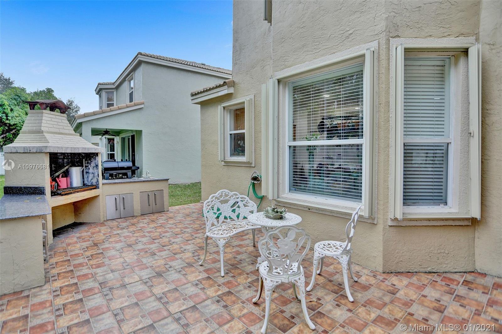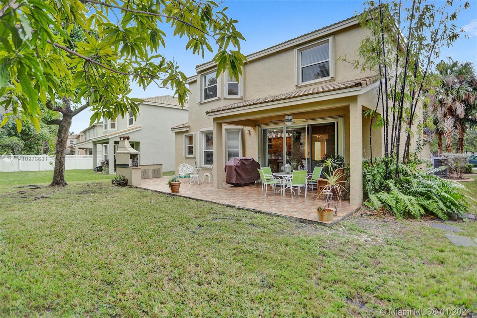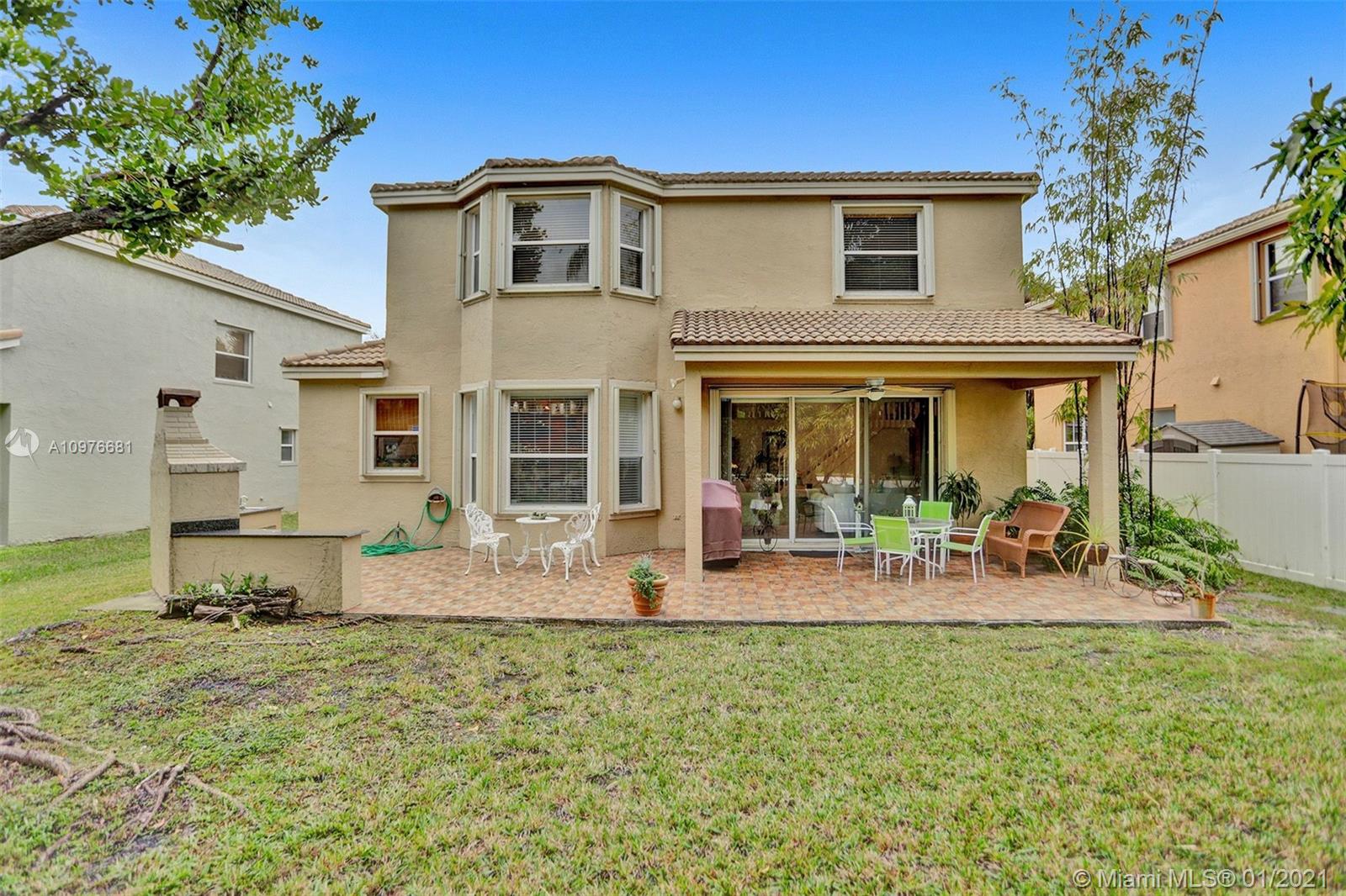Don't miss out on the nicely upgraded and impeccably kept Cordova 4 Grande model in the resort style community of Riviera Isles. This home sits on a berm lot with no rear neighbors. The layout of this home is conducive to entertaining as well as family gatherings with it's large kitchen ,family room, living and dining room. The yard also has a large covered extended patio with a custom Argentinian grill for those ready for those bbq get togethers. Other features are tile throughout the 1st floor and wood on stairs and throughout the bedrooms on the second floor. House also has complete accordion shutter protection. Make this your next home!!