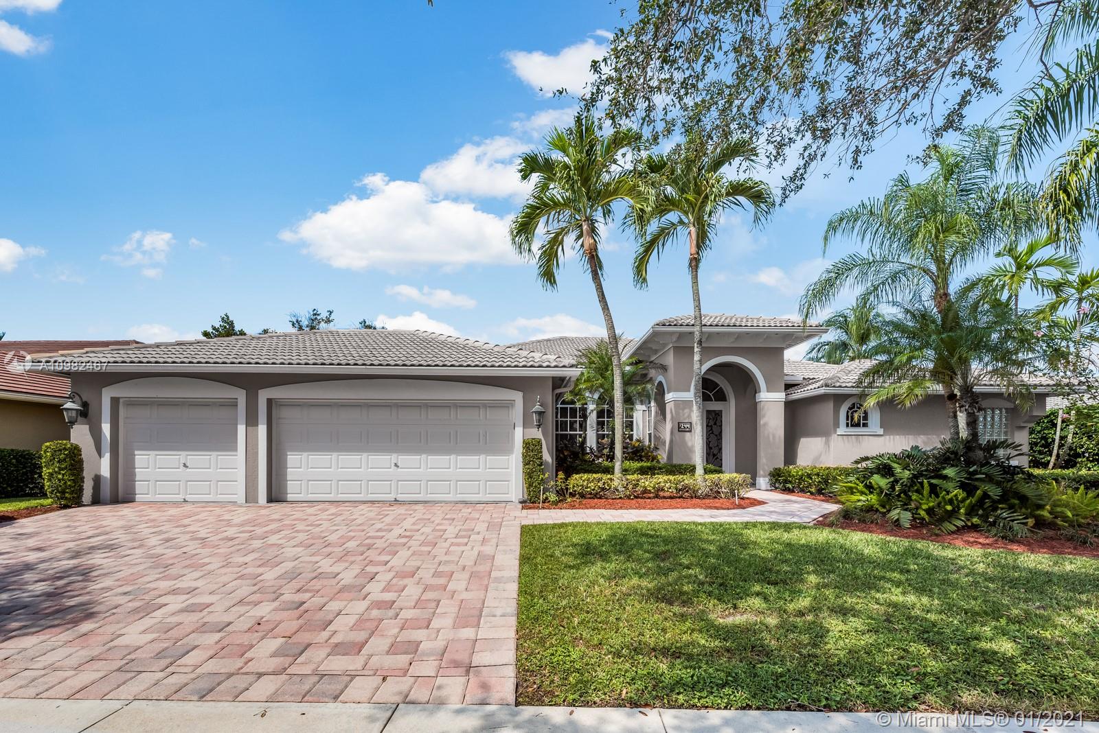 Rarely available, comprehensively remodeled custom Mediterranean home in The Landings, a prestigious gated community in Weston. A large Foyer entrance with volume ceilings opens into the formal living and dining rooms, connecting with open concept entertainment/Dining Room & Kitchen. An inspiring contemporary kitchen awaits for you, with custom cabinets, quartz countertops, and stainless steel appliances. Stylish imported Italian Porcelain large tiles wrap the entire home. The Master bedroom retreat with walk-in closets and large en-suite bathroom sits privately on the right-wing of the home. An additional 2 wings encompass four additional bedrooms. New electric throughout was completed in 2015. A private backyard with a pool and spa tops off your wishlist in this exclusive home.