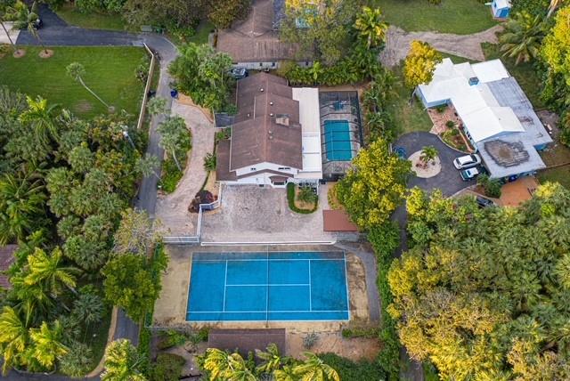 Located in the nature lovers paradise of Riverland, a 15 minute drive to downtown. Property is located on a private lane and boast just over a half acre of land including a tennis court. Complete 2015 top to bottom renovation. Property includes new huge chef’s kitchen, bathrooms and bedrooms with hardwood custom cabinetry, all new flooring, custom garage. Large office could also be 5th bedroom. Upgraded A/C, insulation, impact windows and doors, driveway, fencing, electric gates, deck. Screed pool with large covered outdoor living space. This spacious home provides peace and tranquility while being only minutes aways from everything. This is two lots (2nd lot has the tennis court) which are separately deeded but being sold together.
