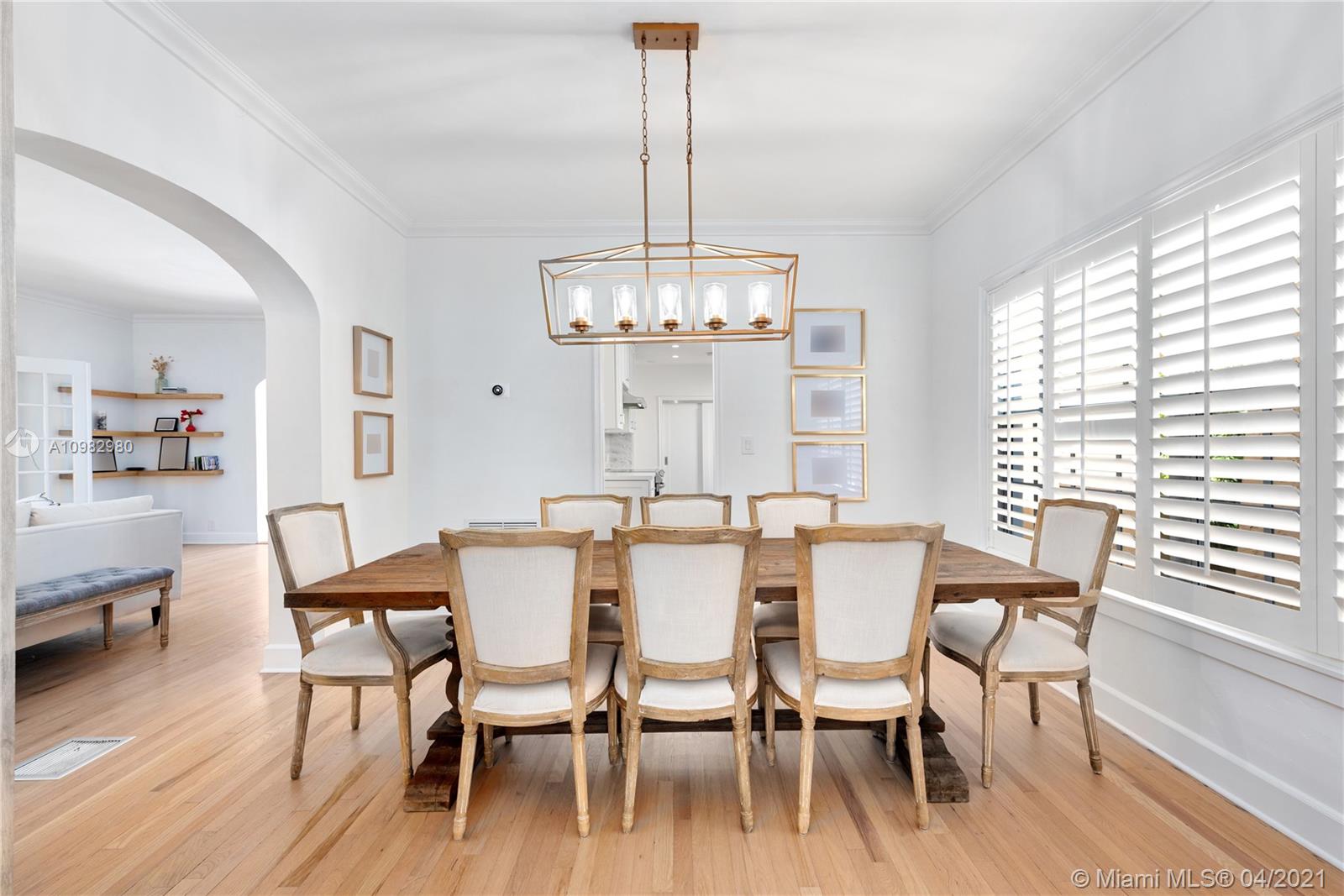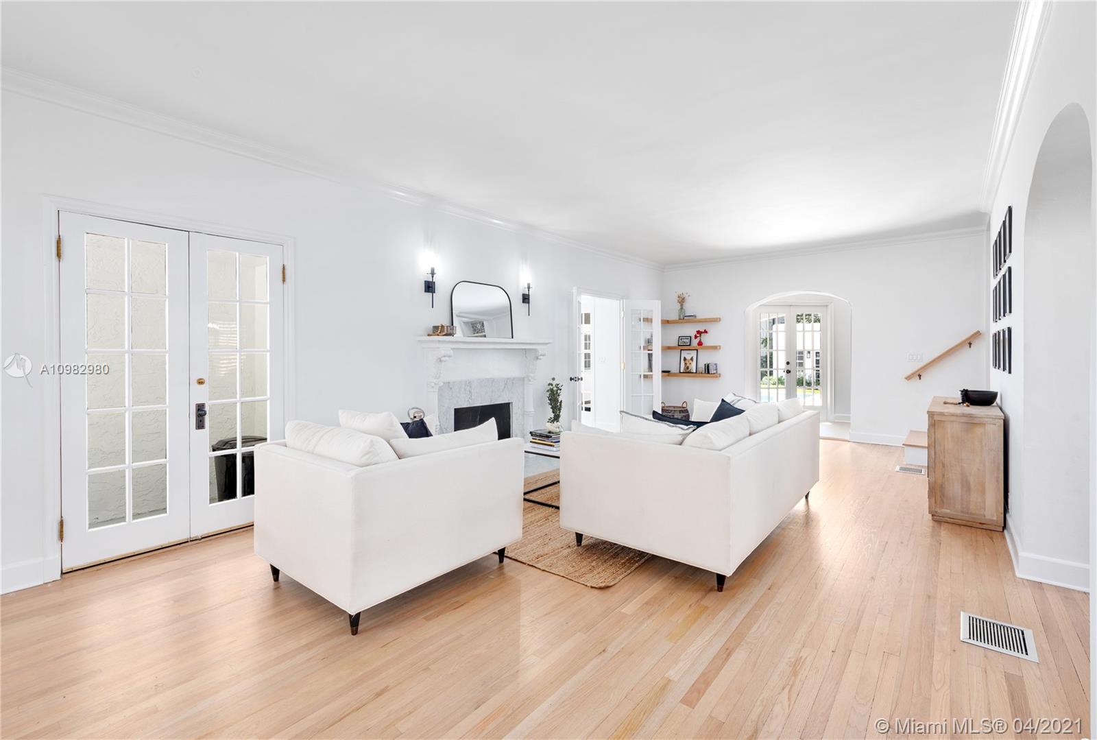 Impeccably updated, this Spanish-style home is a masterclass in luxury. From the stunning pendant lights to the hardwood floors and magazine-worthy interiors, this home is truly breathtaking. The 5,523sqft layout is light-filled and open-plan, perfect for entertaining. A white color palette ensures a modern look and there is an elegant fireplace in the living room for a warm and inviting feel. The kitchen is a gourmet haven with a suite of quality appliances. There are 6 bedrooms and 5.5 baths including a detached 600sqft cottage with 1 bedroom/1 bathroom. In the backyard, a private pool awaits along with lush gardens to ensure a pristine summertime hideaway on this 12,000sqft lot. You will live in a sought-after location close to Liberty Caffe, Granada Golf Course & Downtown Coral Gables.