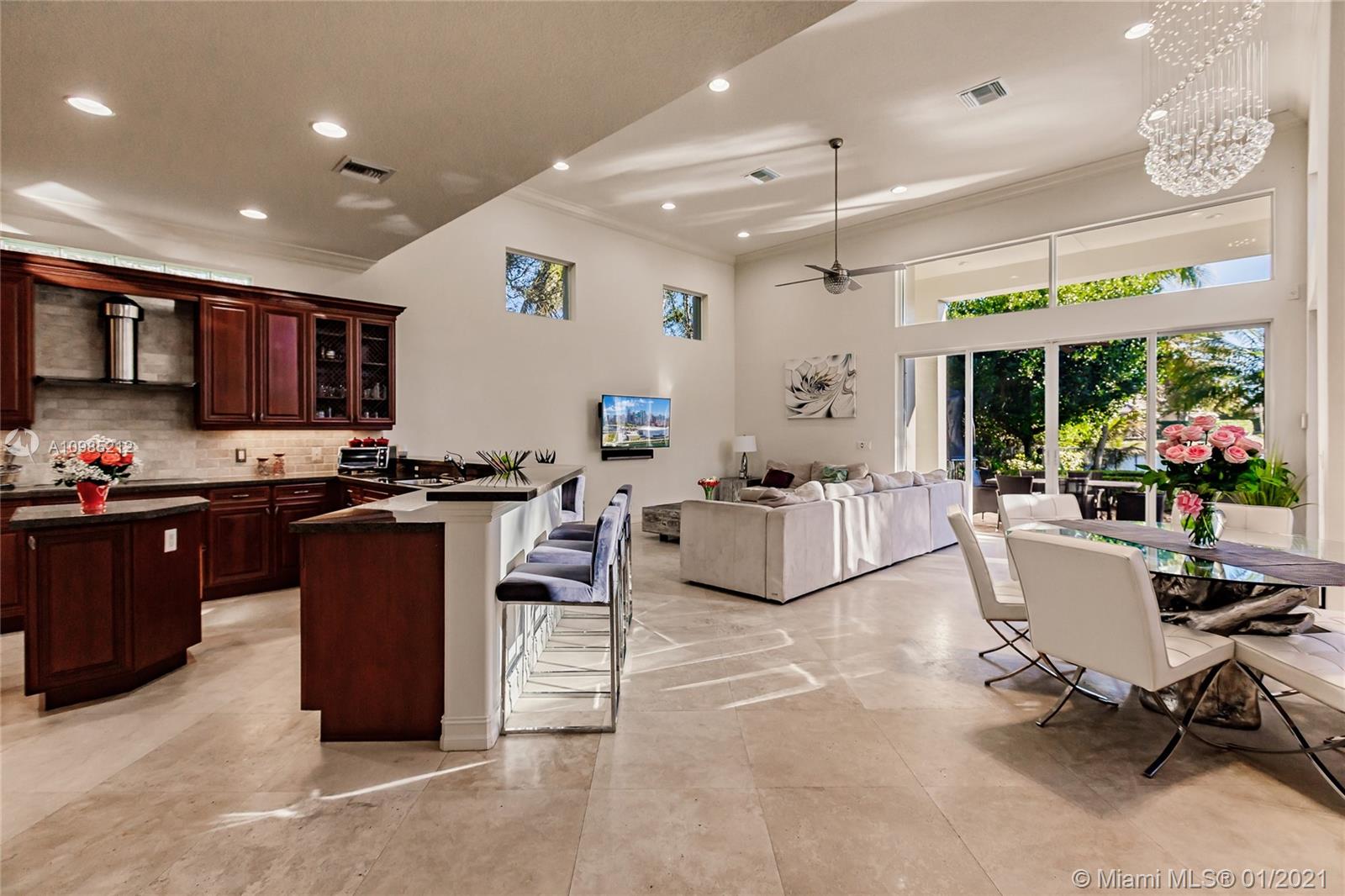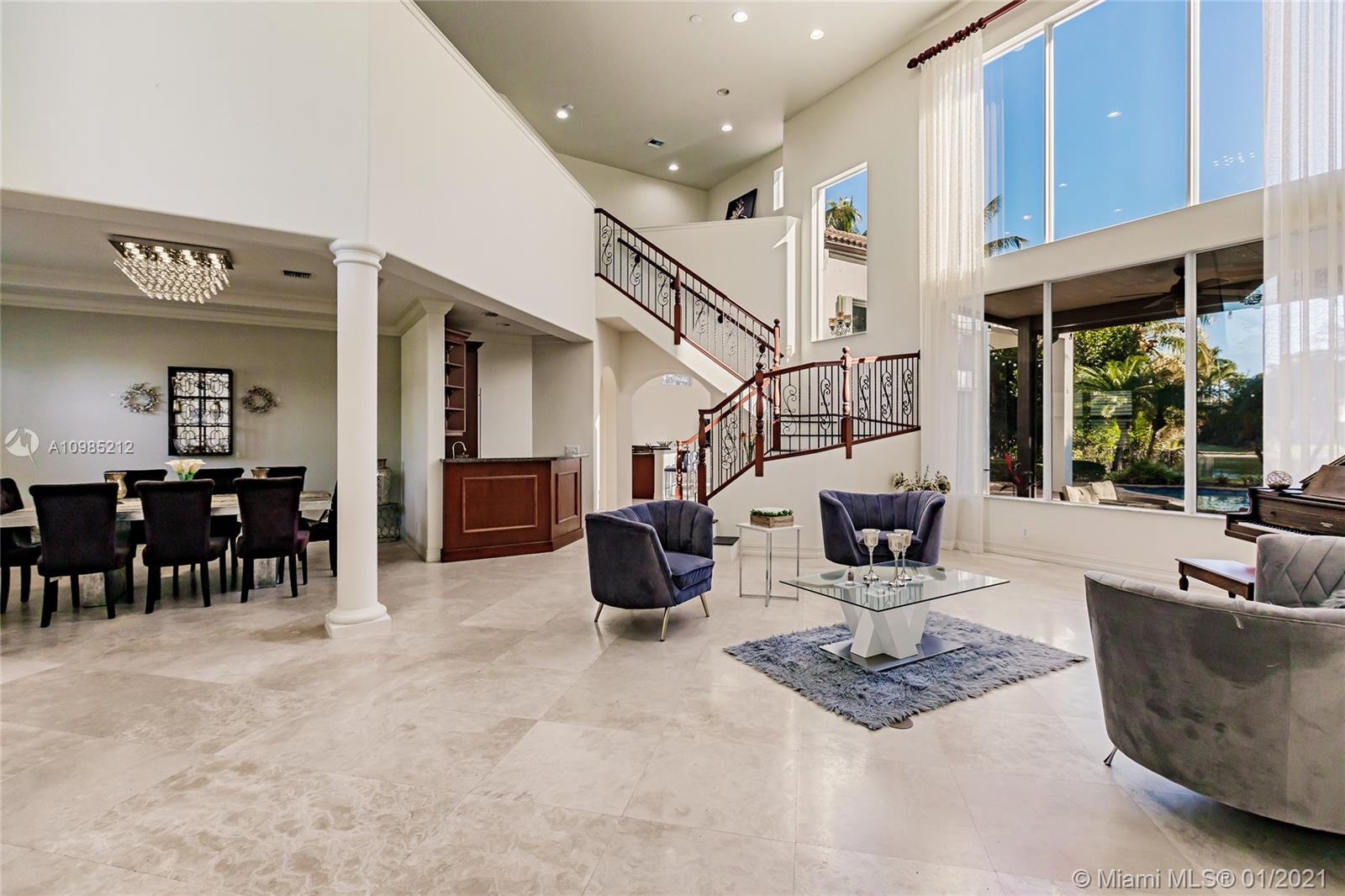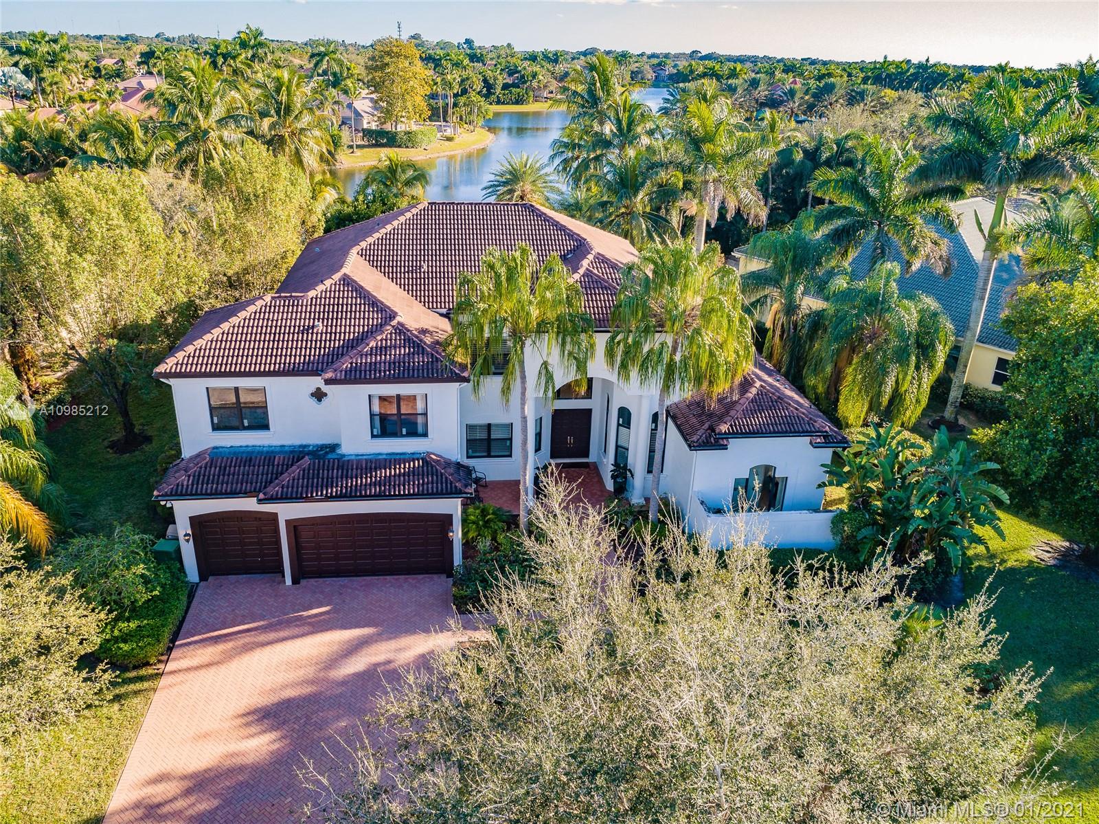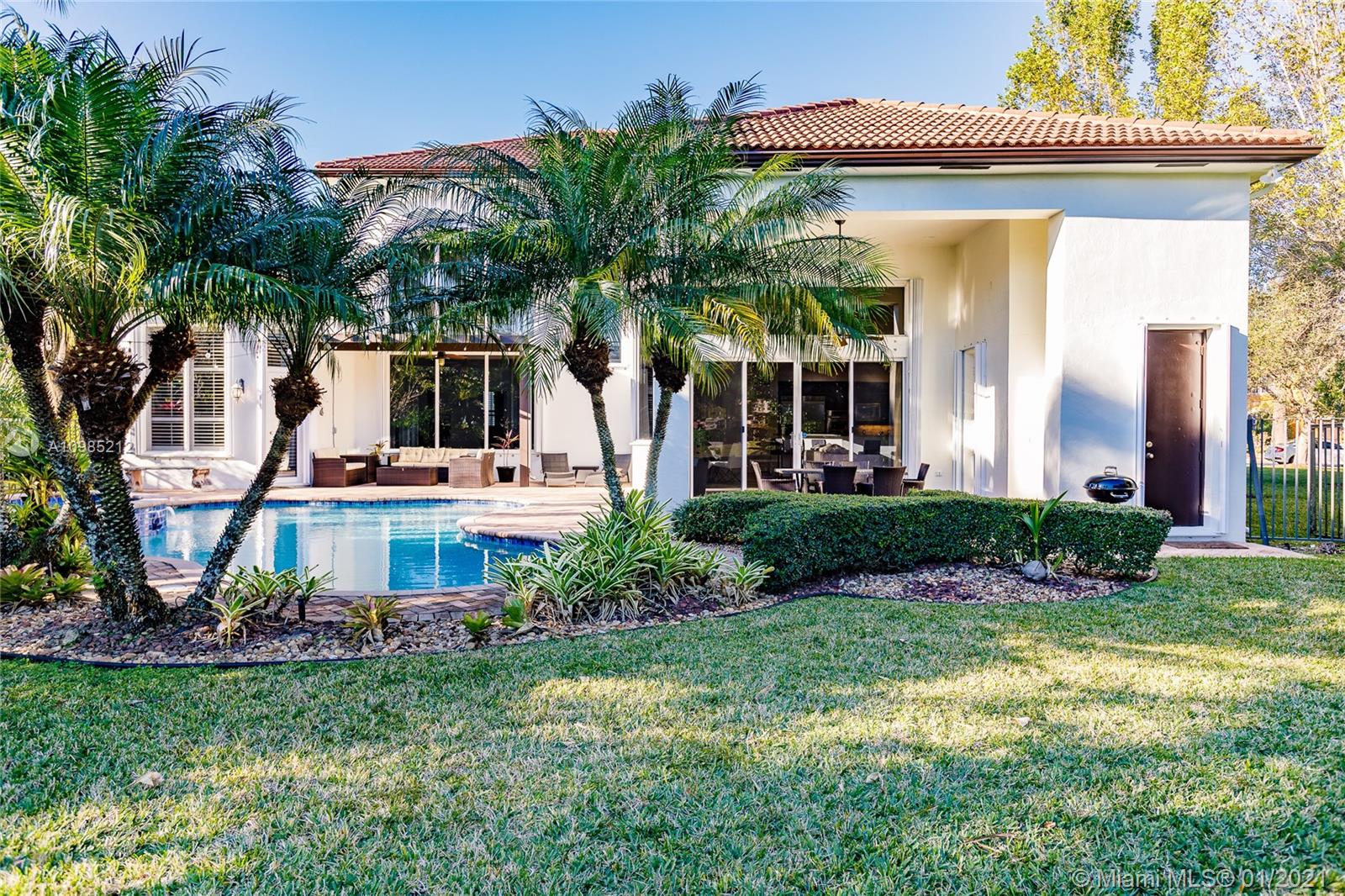 Move in Ready. Open your front doors to direct pool and water views in this private waterfront home situated on a lushly landscaped half acre property. Located in the prestigious gated community of Stonebrook Estates this 2 story home boasts a large open floor plan with expansive windows, vaulted ceilings, grand staircase, beautiful marble flooring in living areas and gorgeous wood flooring in bedrooms. A true 6 bedrooms with an office and 5 1/2 bathrooms. First floor grand master bedroom with wet bar. Gourmet kitchen complete with Stainless steel Kitchen Aid appliances, Double ovens and center island. Over $100k in recent upgrades includes 2 new HVAC systems, pool heater, hurricane impact windows and shutters, flooring, and more.