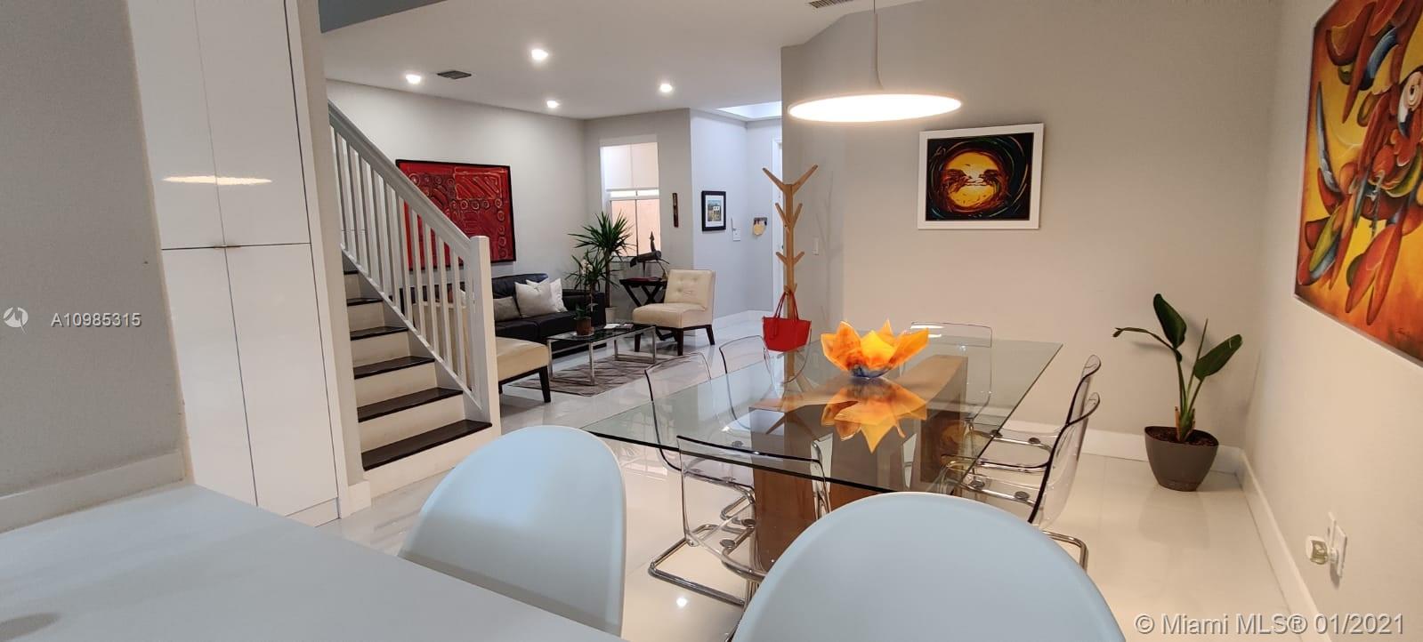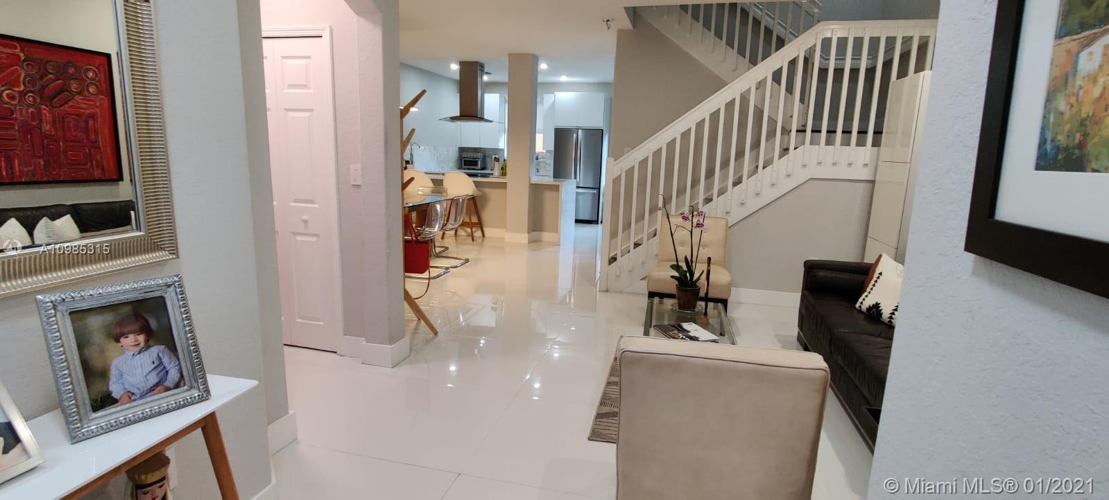 Very modern two story townhome completely remodeled in the very desired location of Antilles at Islands at Doral! Open concept kitchen with waterfall white quartz countertops, white glossy cabinets, island mount range hood, stainless steel appliances, huge pantry and marble backsplash. White porcelain floors on first story and dark wood floors on second story. New fence and travertine pavers installed in the patio recently. Built in closet in master bedroom and new A/C unit installed. Access to the Islands at Doral Clubhouse featuring swimming pool, tennis courts, kids playground, cabanas, tiki huts and more! Very close to great schools, shops, restaurants, grocery stores and much more! This unt is unique and beautifully remodeled! A MUST see!