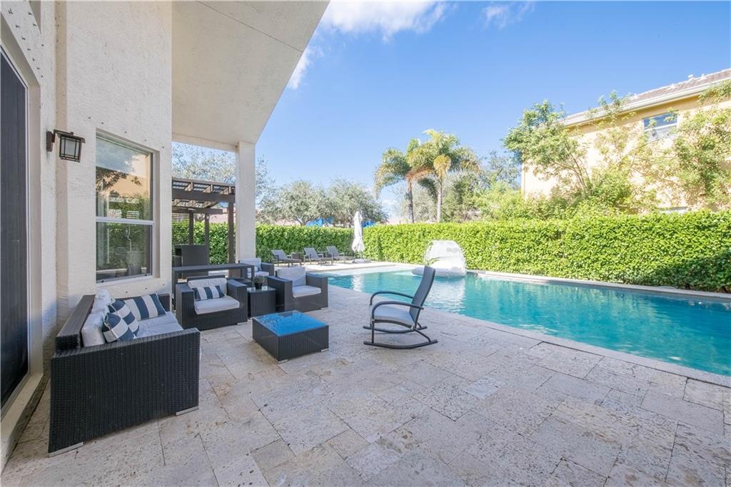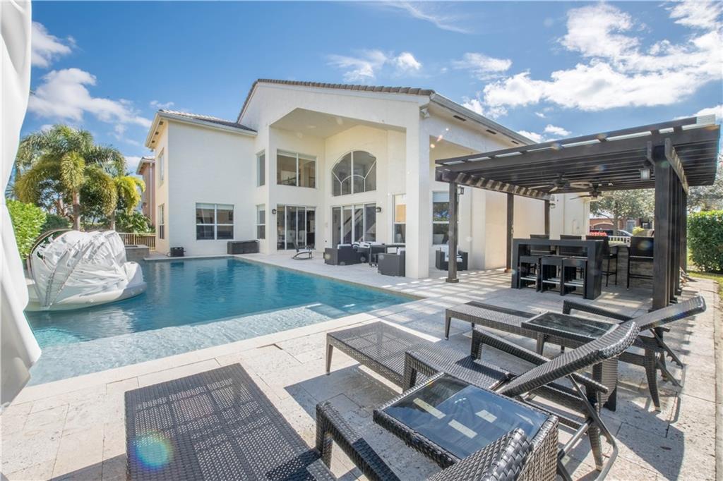 This unique and spacious property offers great areas for entertaining and family gatherings. Home features 5 bed/5baths plus a big loft with a lot of natural light. Master bedroom is on the first floor and another mini suite with its own private bathroom. Gourmet kitchen with granite countertops, wood cabinetry, center island . Enjoy the spectacular oversized pool/Jacuzzi 50X20, pergola with summer kitchen and extended travertine pavers throughout the entire patio.