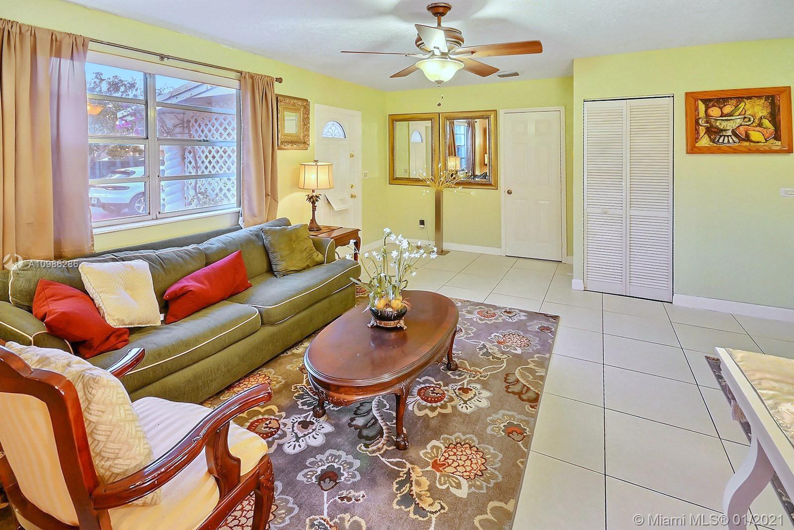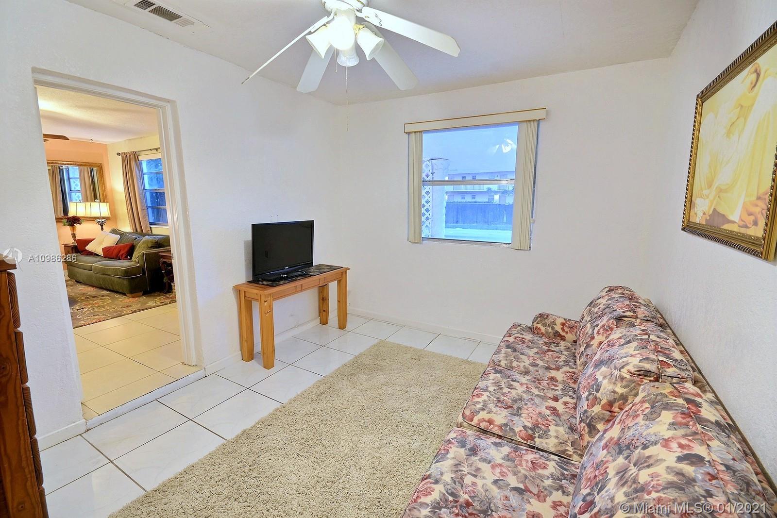 SITUATED ON AN OVERSIZED LOT, THIS LOVELY 2 BEDROOM SINGLE FAMILY HOME HAS A CHARMING COVERED PORCH ENTRY AND OFFERS PLENTY OF ROOM TO GROW. HOME HAS TILE THROUGHOUT, KITCHEN OPENS TO THE DINING AREA AND OVERLOOKS THE BACK YARD. SPACIOUS PRIMARY SUITE HAS A LARGE WALK-IN CLOSET AND UPDATED BATHROOM HAS SEPARATE TUB AND SHOWER. THE PERFECT STARTER HOME WITH AN OPPORTUNITY TO BUILD AN ADDITION TO SUIT. PRIVATE FULLY FENCED BACKYARD PROVIDES CONVENIENT ACCESS FOR A BOAT OR AN RV. NO HOA. IDEAL CENTRAL HOLLYWOOD LOCATION IS MINUTES TO THE TURNPIKE, TO THE HARD ROCK, AND JUST A SHORT 20 MINUTE COMMUTE TO THE BEACH.