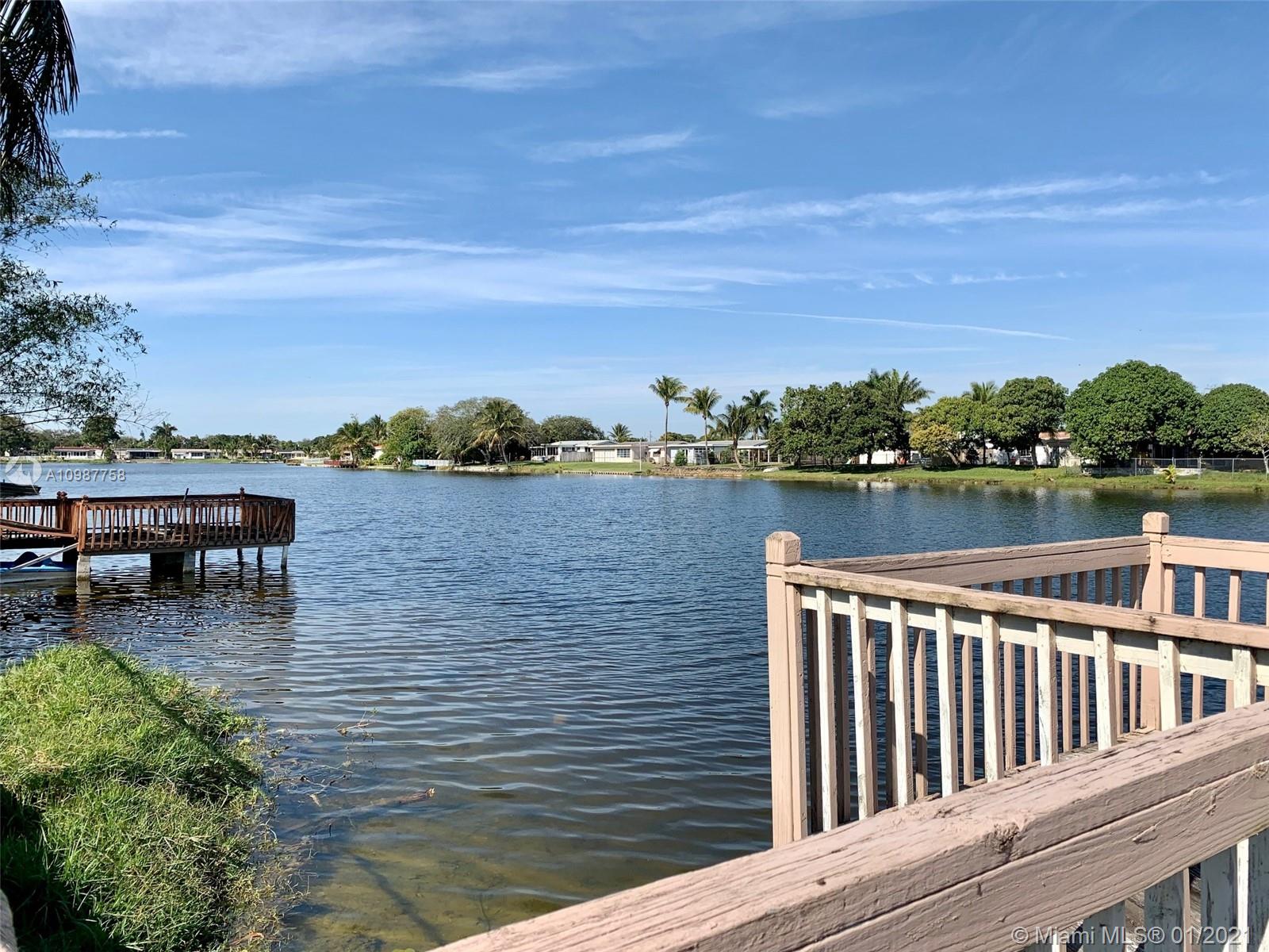 Spacious and great floor-plan 2 bedrooms, 2 full bathrooms, 1 car garage, POOL, LAKE home with private dock! Large circular driveway plus 1 car garage. ROOF 2013 STILL UNDER WARRANTY! Fully fenced patio with great pool area, beautiful lake views and extra space for entertaining and family gatherings. Hurricane shutters, needs some updating to make it your perfect home. A must see!