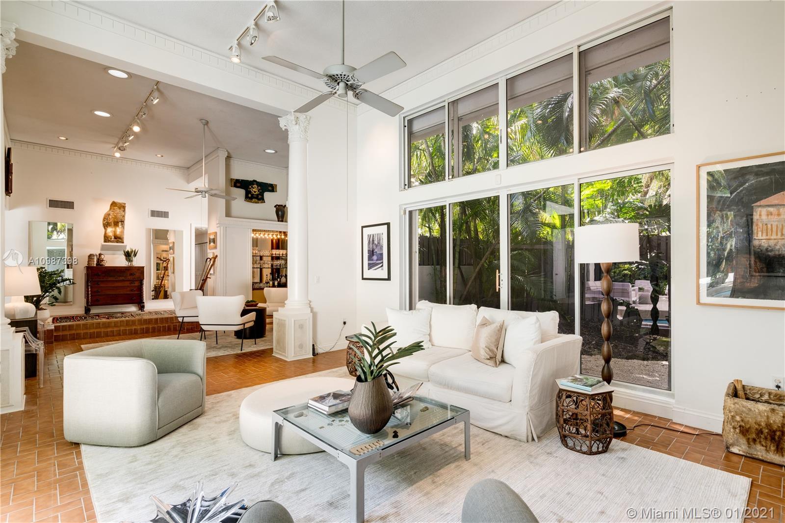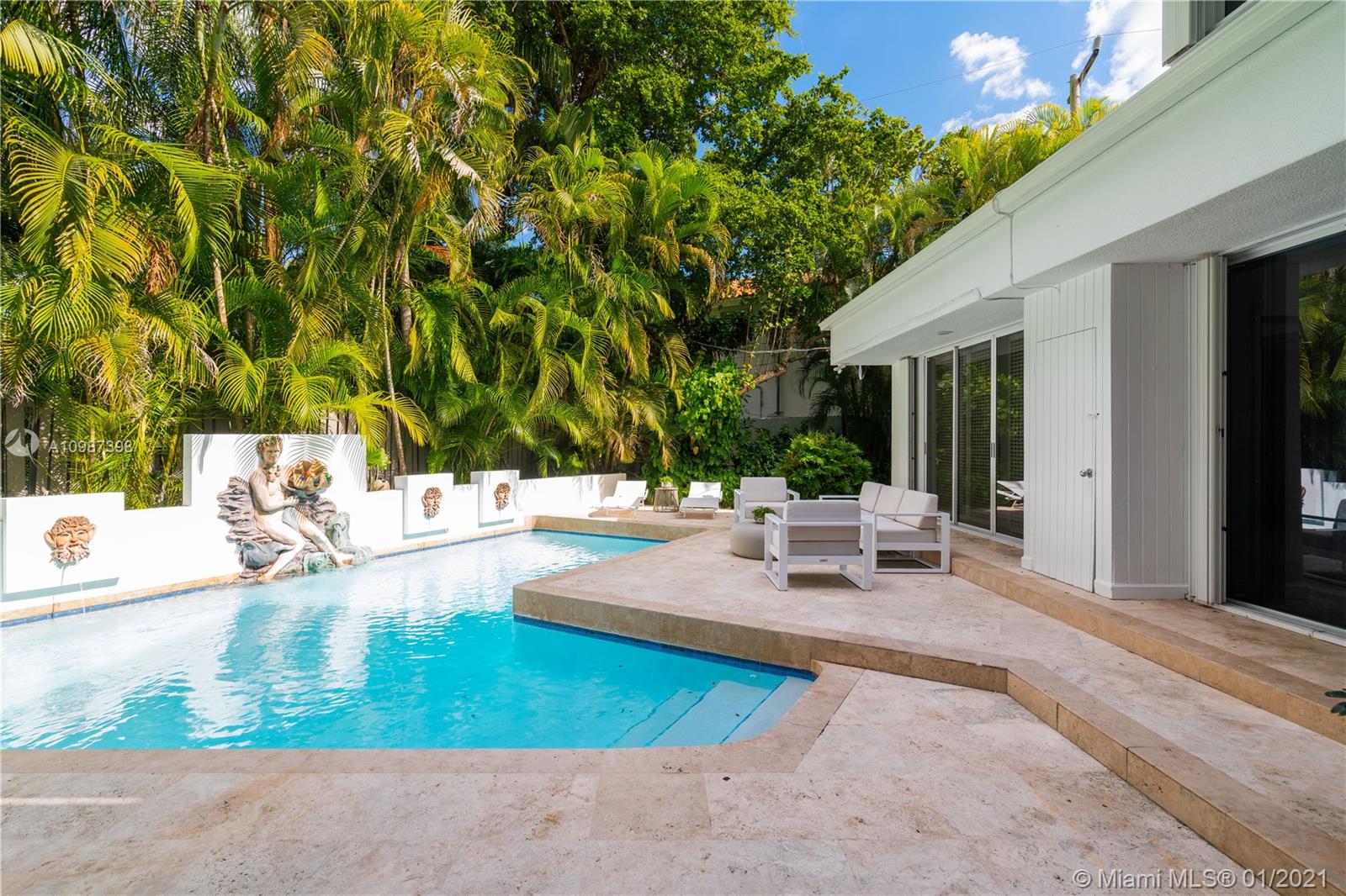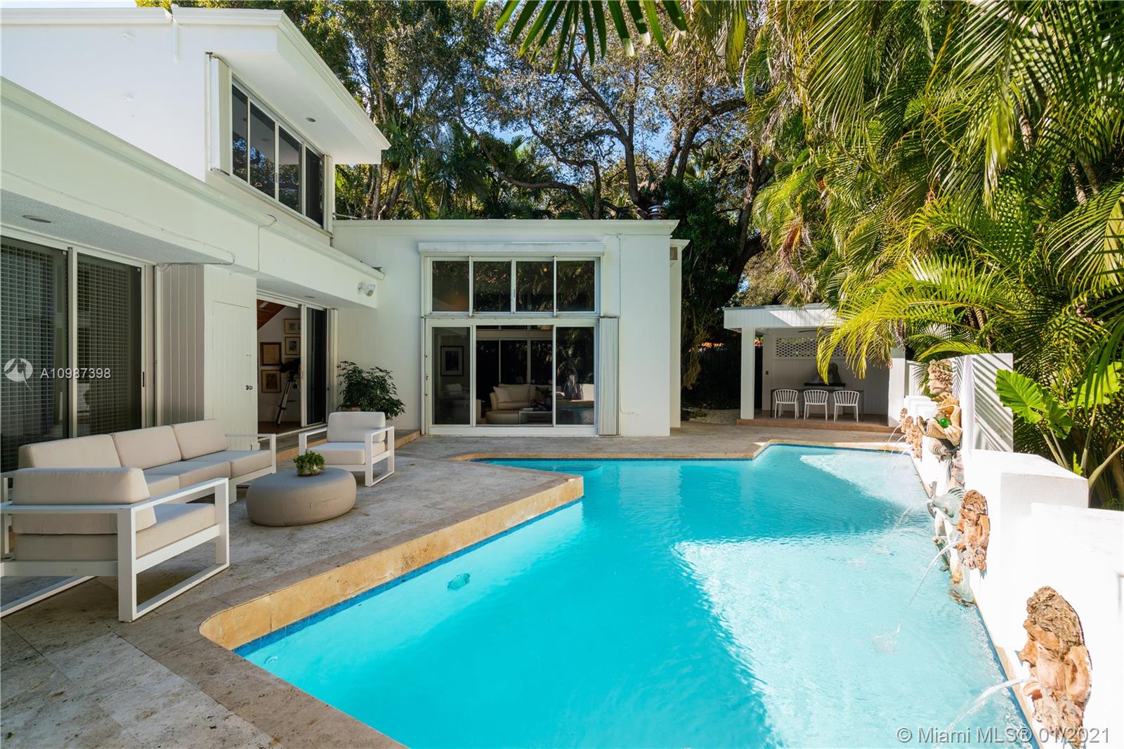 This beautiful contemporary is in a prime South Coconut Grove location. Dramatic and vibrant, this home is nestled within a lushly landscaped garden, offering daily reminders of the tropical paradise that defines the Grove. The living room overlooks the newly resurfaced (and very fun) swimming pool as well as a pavilion for alfresco dining. The master bedroom, with his and hers walk in closets and updated master bath, is a Zen retreat. A second-floor loft which can serve as a library, office, gym, or media room has a wet bar with a wine cooler. The efficient kitchen with its gas cooktop and Viking appliances overlooks a charming dining room which will be the setting for long, lingering dinners and great conversation. One car garage & covered carport. A Very Special Home.