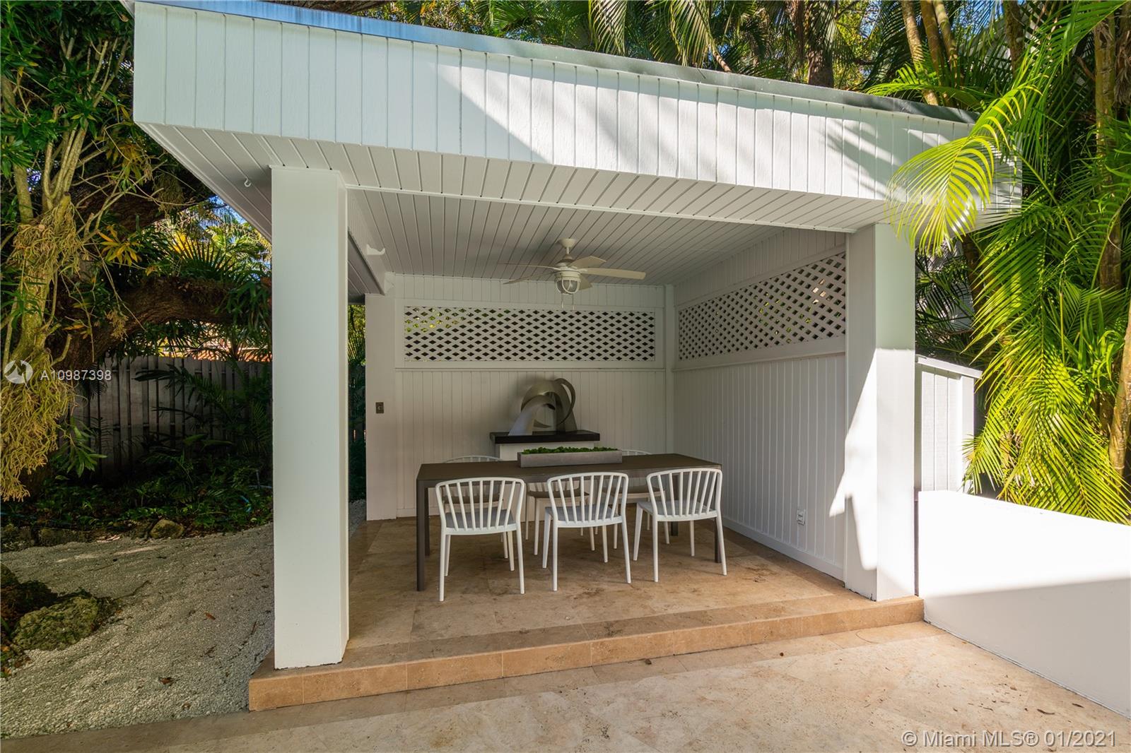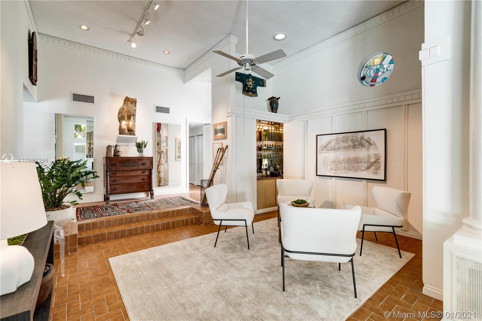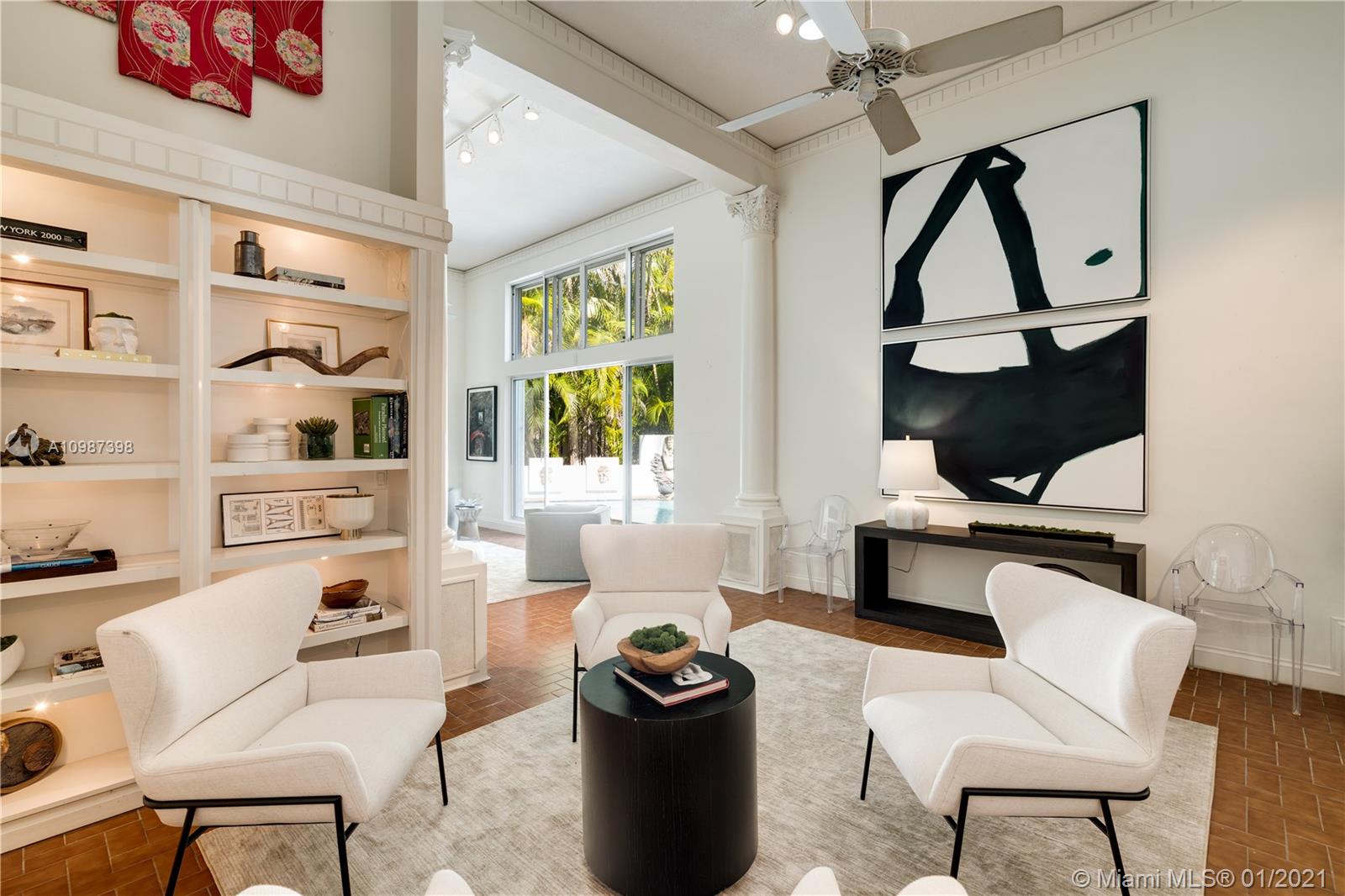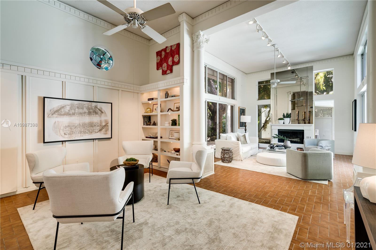This beautiful contemporary is in a prime South Coconut Grove location. Dramatic and vibrant, this home is nestled within a lushly landscaped garden, offering daily reminders of the tropical paradise that defines the Grove. The living room overlooks the newly resurfaced (and very fun) swimming pool as well as a pavilion for alfresco dining. The master bedroom, with his and hers walk in closets and updated master bath, is a Zen retreat. A second-floor loft which can serve as a library, office, gym, or media room has a wet bar with a wine cooler. The efficient kitchen with its gas cooktop and Viking appliances overlooks a charming dining room which will be the setting for long, lingering dinners and great conversation. One car garage & covered carport. A Very Special Home.