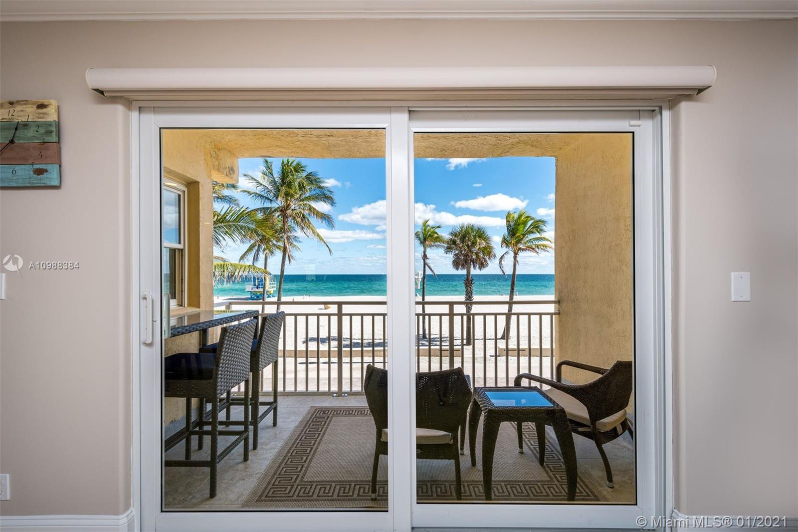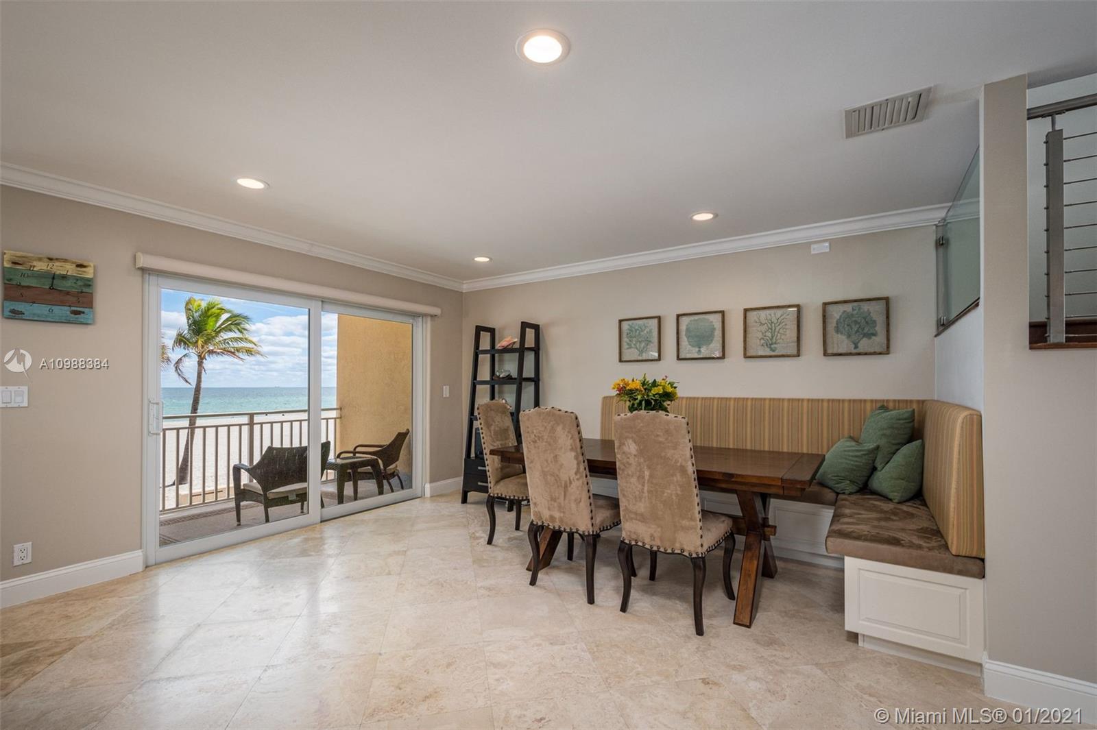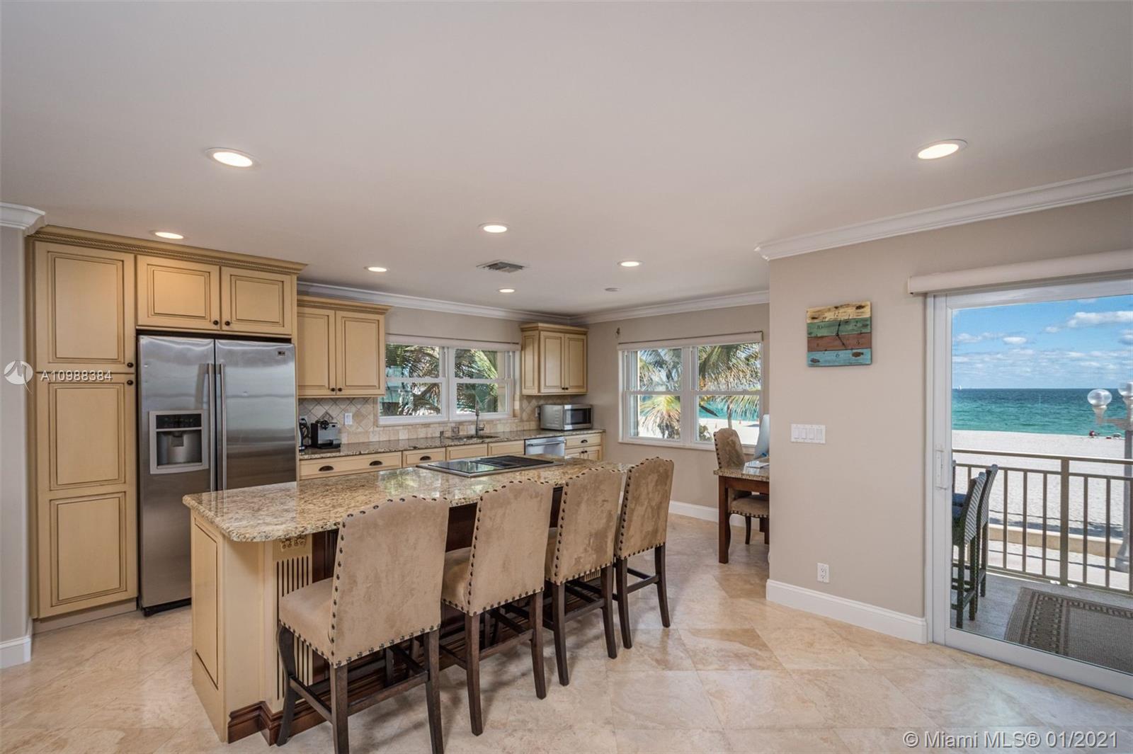 One-of-a-kind oceanfront 3 bed/3.5 bath townhome along the Hollywood Beach Broadwalk. Situated directly on the sand, this rarely available furnished 3-story townhome corner unit has been completely renovated with over $200,000 in upgrades. Marble floors. Custom built staircase. Open kitchen with cooking island, granite countertops and stainless steel appliances. New Roof. New A/C's. LED Lighting. Impact windows. Motorized shades. Nest Thermostat. Custom built-ins. New washer/dryer. Spacious patio with plenty of room to entertain. Sold furnished.