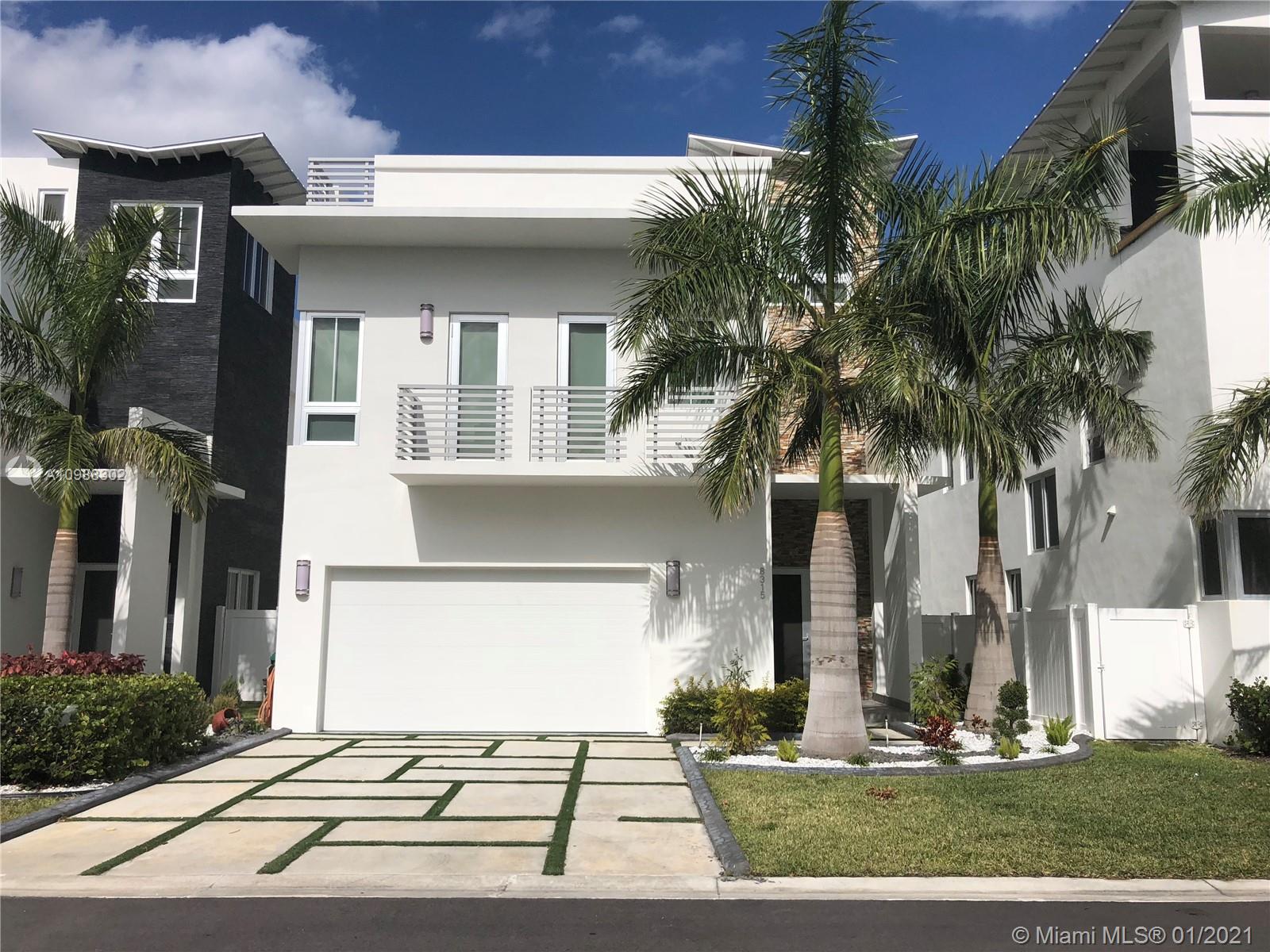 STUNNING LOWER PRICE! For a QUICK SALE. 4 Bedrooms 5 Baths in the most exclusive development in the area THE HOUSE NEXT DOOR 8329 NW IS ALSO FOR SALE SO YOU HAVE THAT RELATIVA OR FRIEND ALWAYS CLOSE TO YOU!!) Patio with a back door to access to the mall. More than $200,000 in upgrade, marble floor in social area and wood floor in bedrooms, electric blinds in most of the window and Leviton switches in all home ready for smart home automation system, wine room, modern stain steel stair railing, top of the line appliances, impact windows, including modern cabinetry and closets and much more! MOVE-IN READY! (The owner is willing to negotiate approx. $150K in italian furniture if the buyer is interested). Terrace with a built-in grill, full bath, pergola, and jacuzzi. A buying opportunity!