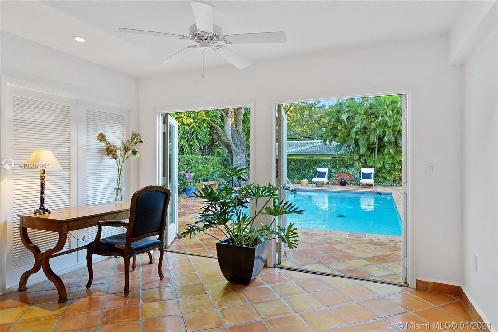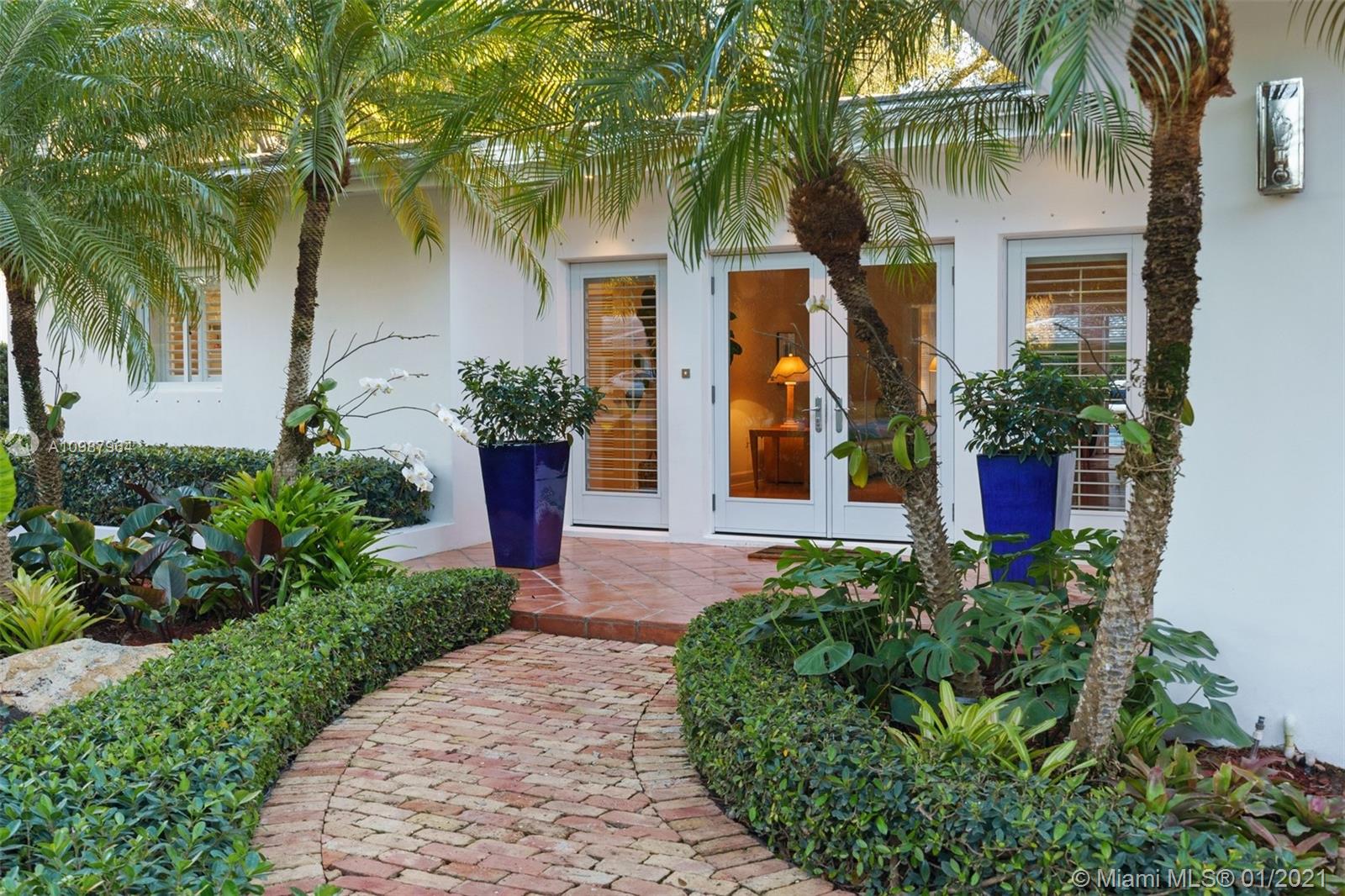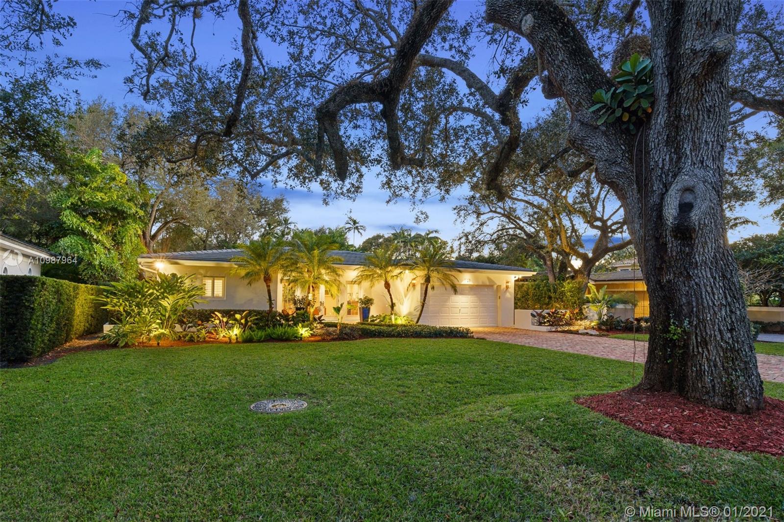 Immaculate one story pool home centrally located in one of the most desirable streets in Coral Gables. Spacious 3 bedrooms, 2 baths plus office/den, sitting on a 10,430 sq. ft. lot. Open floor plan with abundant natural light. French doors opening to the pool overlooking a lush yard with mature oaks. Great home, designed for relaxing & entertaining. Authentic Old Chicago brick driveway that can accommodate up to 8 cars plus a large 2 car garage. Other features include: split floor plan, separate laundry area, 2015 roof. Walking distance to Jaycee Park, retail and dining. Very special home. Simple yet elegant. Must see!