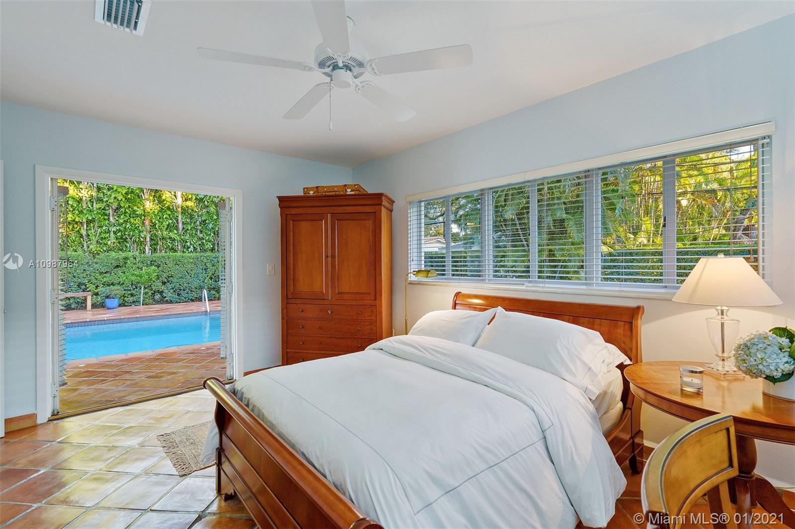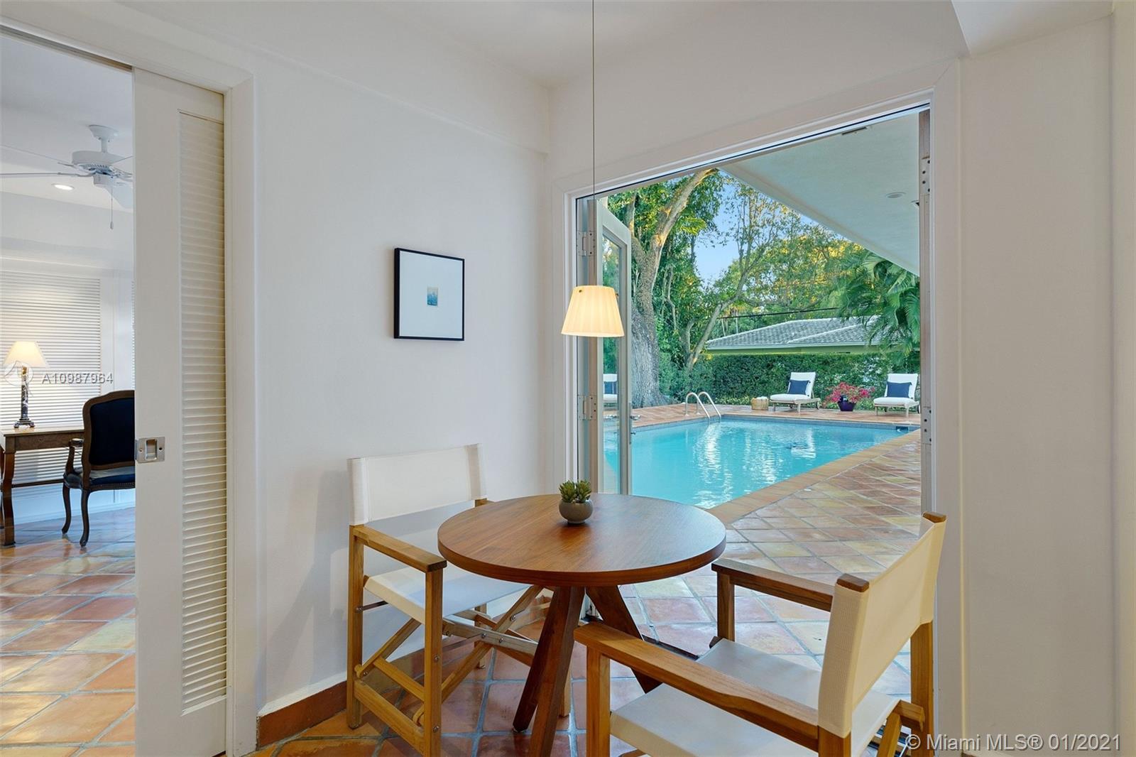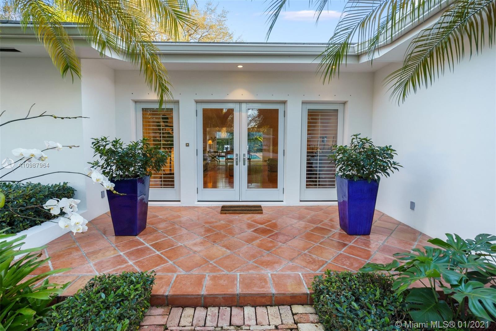 Immaculate one story pool home centrally located in one of the most desirable streets in Coral Gables. Spacious 3 bedrooms, 2 baths plus office/den, sitting on a 10,430 sq. ft. lot. Open floor plan with abundant natural light. French doors opening to the pool overlooking a lush yard with mature oaks. Great home, designed for relaxing & entertaining. Authentic Old Chicago brick driveway that can accommodate up to 8 cars plus a large 2 car garage. Other features include: split floor plan, separate laundry area, 2015 roof. Walking distance to Jaycee Park, retail and dining. Very special home. Simple yet elegant. Must see!