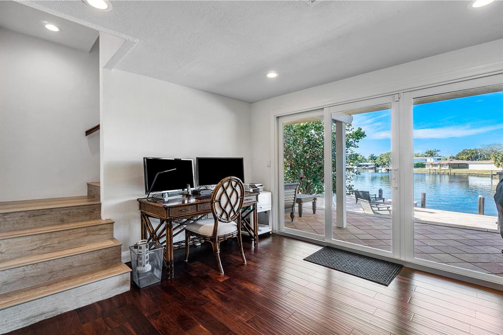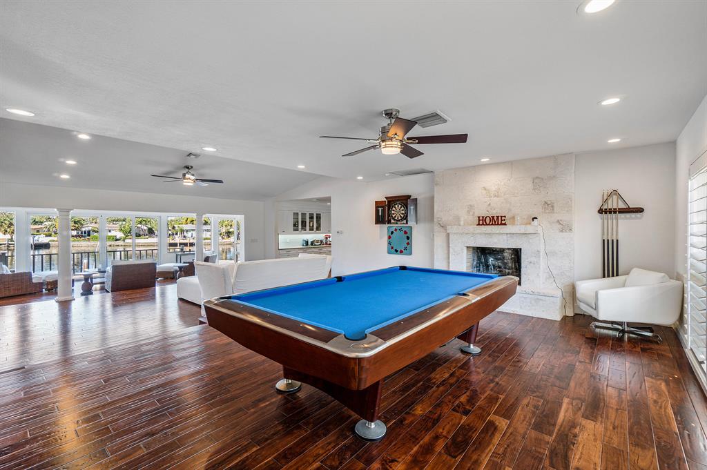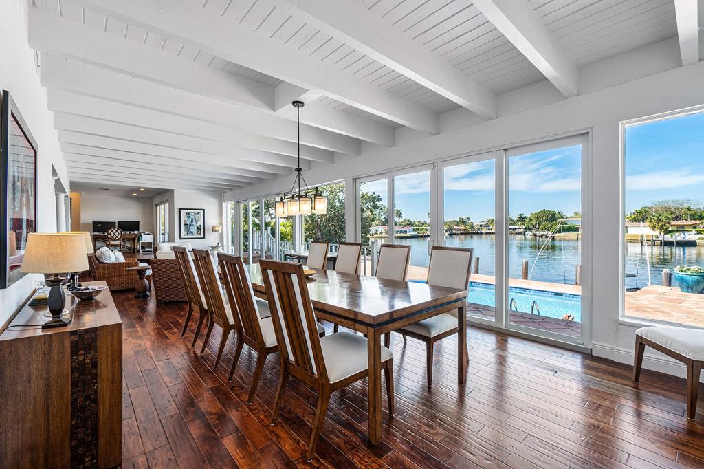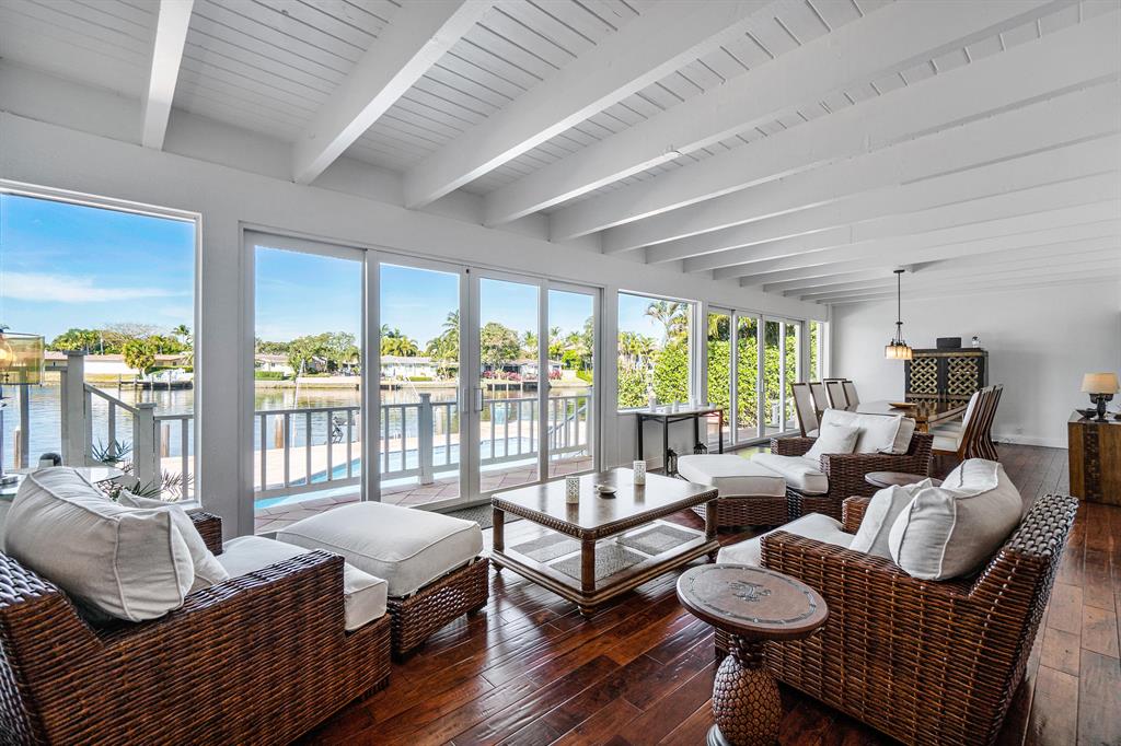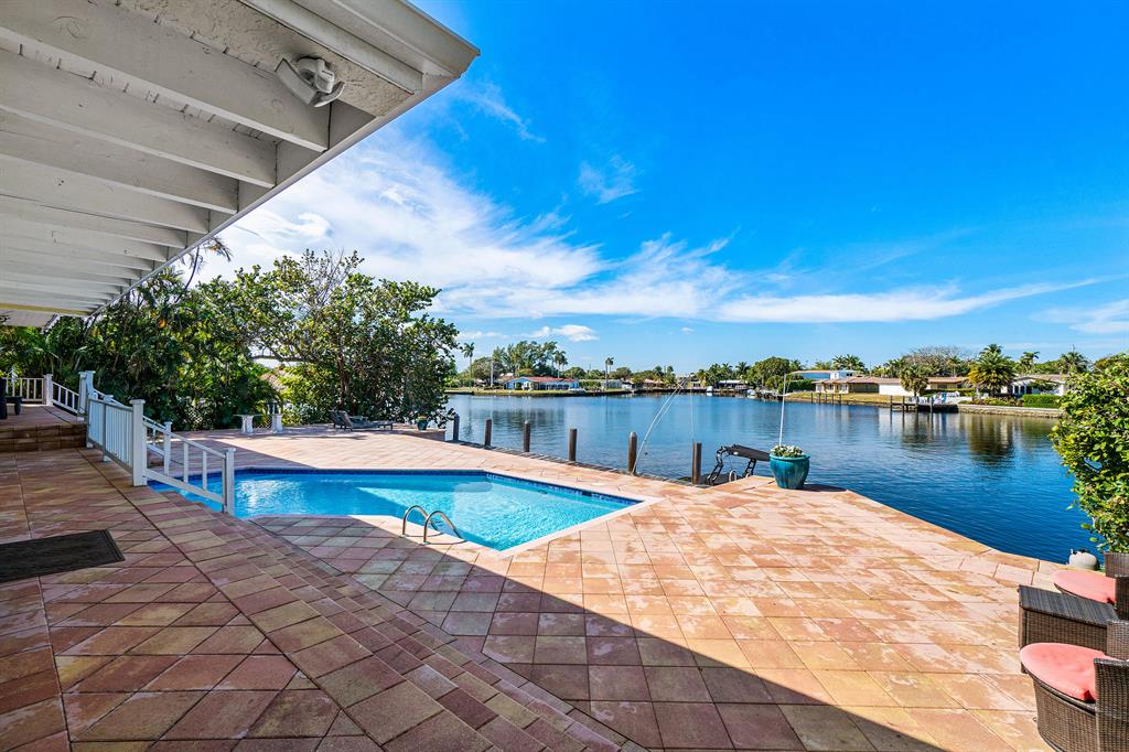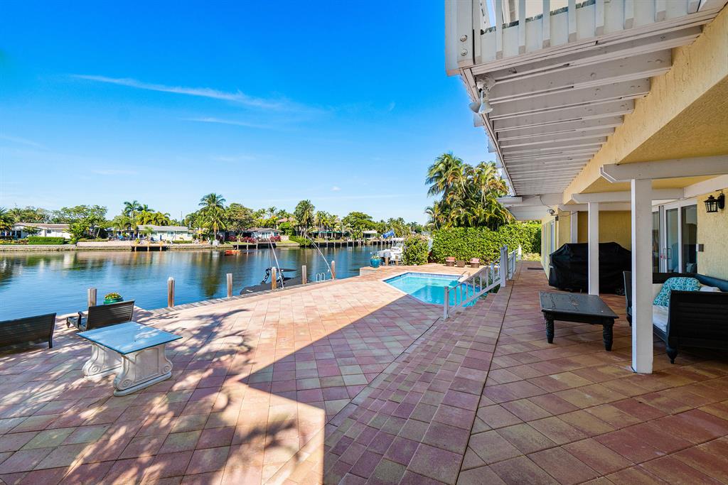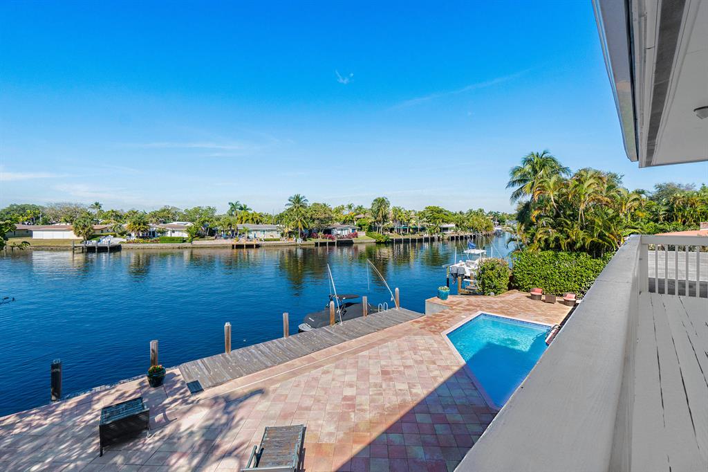 Enjoy wide water views from almost every room in this 4 bedroom, 3.5 bath pool home with 2-car garage on one of the widest portions of the Intracoastal's Middle River in Fort Lauderdale. Expansive & bright, open living areas and wood burning fireplace. Large kitchen featuring Dacar gas range/oven, built-in KitchenAid refrigerator and quartzite countertops. Downstairs master bedroom with sitting area and double walk in closets. On-trend renovated bathrooms. 120ft of waterfront just past the sprawling pool deck with dock perfect for your boat. Home is fully protected from hurricanes with impact windows and doors. Chicago brick circular driveway leads to the 2-Car garage with plenty of storage space, epoxy coated floor and attic above. Inside laundry, tankless water-heater and LED