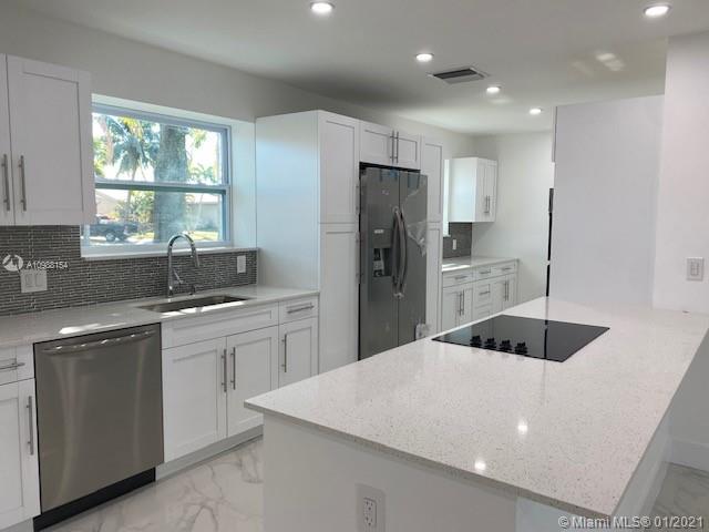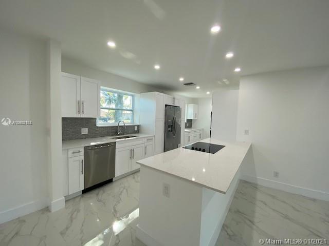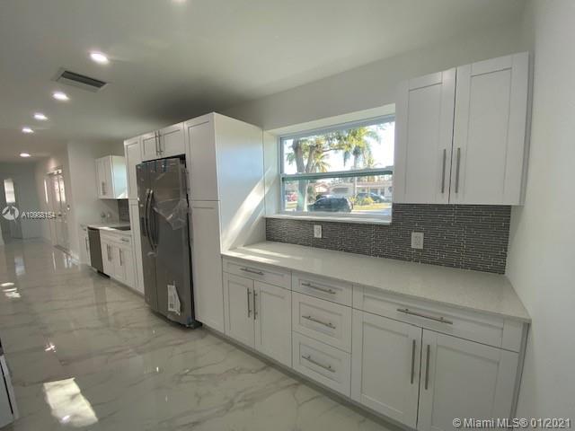 Fully remodeled 3 Bedrooms 2 Bathrooms Hollywood Hills Single Family Home sits on a Large Lot with room for pool and Boat/RV. Porcelain flooring, Stainless Steel appliances, brand new bathrooms, brand new Cabinets with open concept Kitchen and Quartz countertops, recessed lighting with plenty of natural light. Beautiful Home located in a family friendly neighborhood close to Schools, shopping, dining, downtown, and stores. Situated North of Hollywood Blvd and East of 441. Minutes from the beach, easy access to 95 and Florida's Turnpike. Large circular driveway. New Air conditioning in 2018, large backyard, brand new electrical box, 8 years old roof, and screened in patio. Orange, Peach and Coffee trees