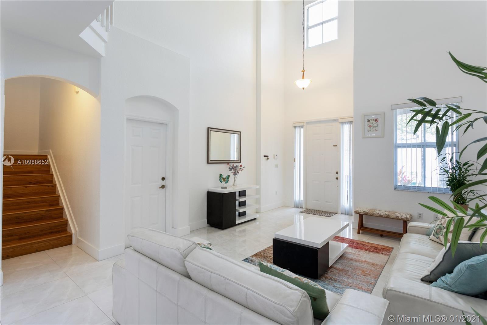 Come see this beautiful, spacious, townhome in the prestigious gated community "Netherlands" at The Islands at Doral. Exquisite four bedrooms, 3 full bathrooms, with the convenience of a bedroom and full bathroom on the first floor. Bright, modern, and spacious kitchen/dining area. Remodeled kitchen, stainless steel appliances, oversized kitchen island with ample storage and breakfast area. Enjoy the high ceiling in the living room and additional space in the family room. Three bedrooms plus a den on the second floor. Fenced patio for entertaining. One car garage with 2 additional spaces on the driveway. Enjoy the resort-style clubhouse, community pools, tennis courts, fitness center room, rental venues, and more.
