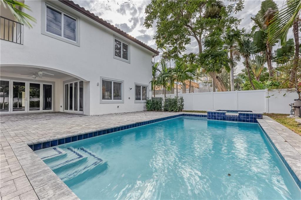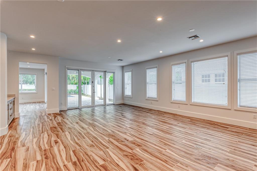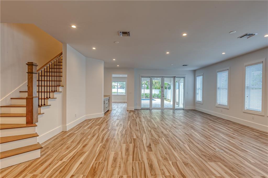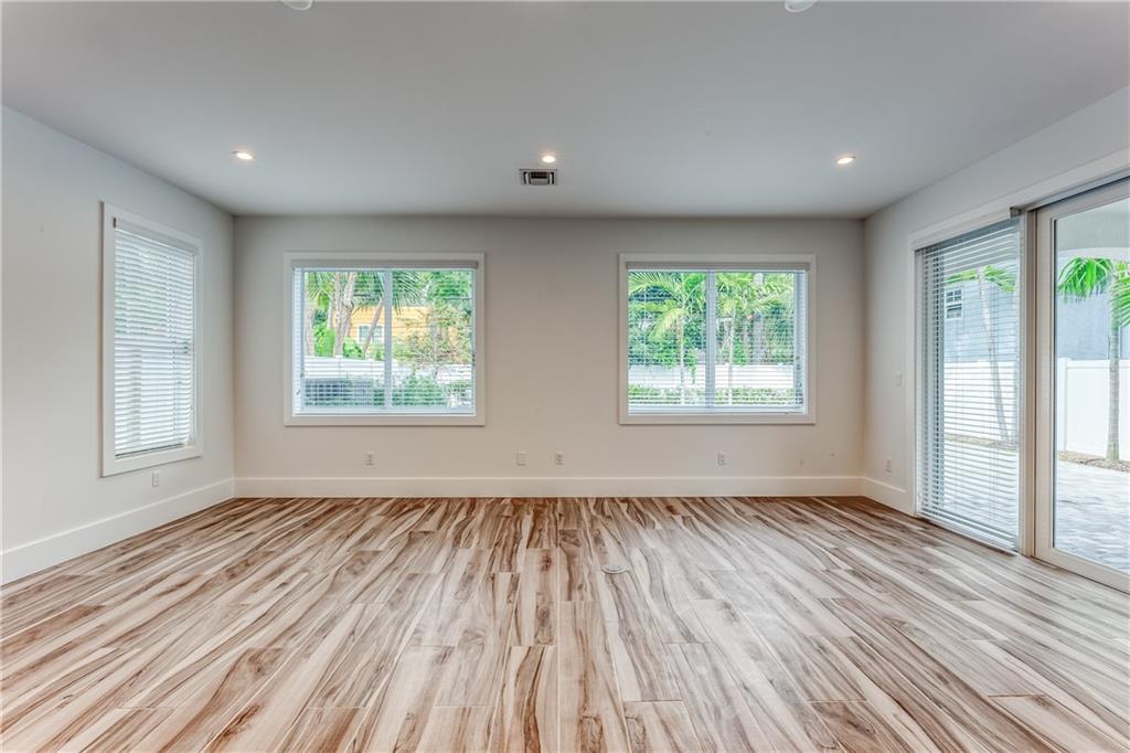 This remarkable newly built home is located in the Rio Vista neighborhood next to downtown Fort Lauderdale. Full of century-old oak trees and peaceful streets, the community offers South Florida living at its finest. This 5-bedroom, 5.5-bath home provides a beautiful, modern aesthetic — featuring porcelain tile, wide plank wood flooring, and clean, contemporary finishes. Its floor plan is perfect for families, including a spacious master upstairs as well as three other bedrooms and bathrooms. The main floor features a spacious, sweeping layout with expansive windows, a living room plus large family room, porch, guest suite and two-car garage. Completing the home is the spectacular all-white kitchen, which includes gorgeous quartz countertops, Viking appliances and custom shaker cabinets.