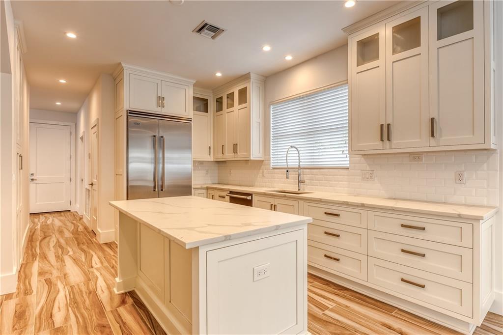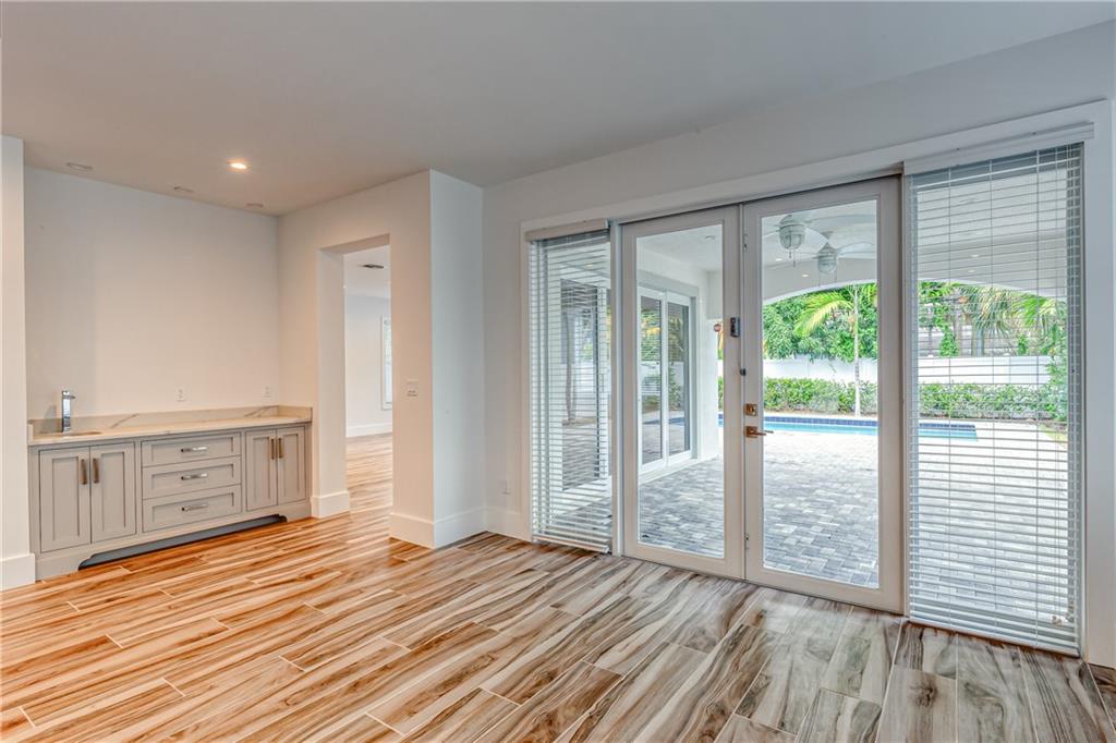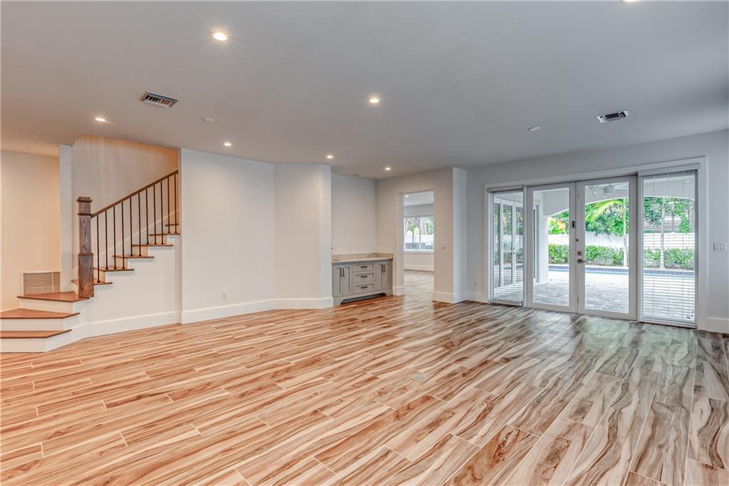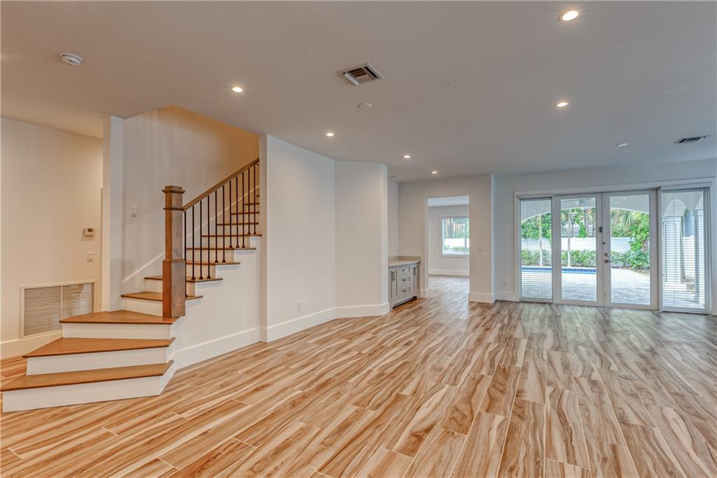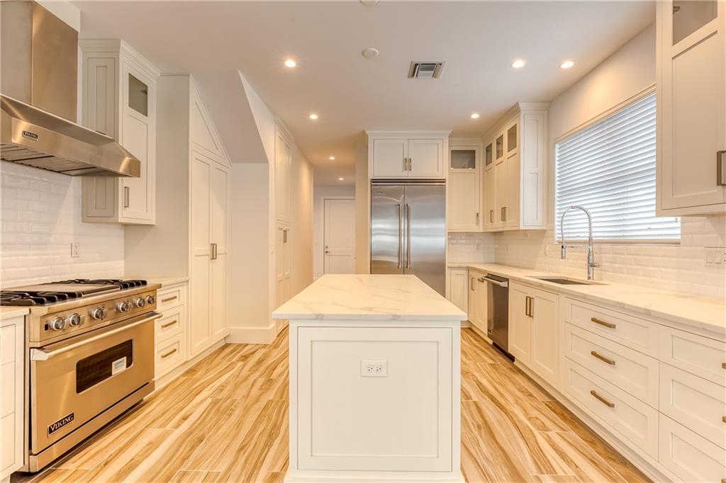 This remarkable newly built home is located in the Rio Vista neighborhood next to downtown Fort Lauderdale. Full of century-old oak trees and peaceful streets, the community offers South Florida living at its finest. This 5-bedroom, 5.5-bath home provides a beautiful, modern aesthetic — featuring porcelain tile, wide plank wood flooring, and clean, contemporary finishes. Its floor plan is perfect for families, including a spacious master upstairs as well as three other bedrooms and bathrooms. The main floor features a spacious, sweeping layout with expansive windows, a living room plus large family room, porch, guest suite and two-car garage. Completing the home is the spectacular all-white kitchen, which includes gorgeous quartz countertops, Viking appliances and custom shaker cabinets.