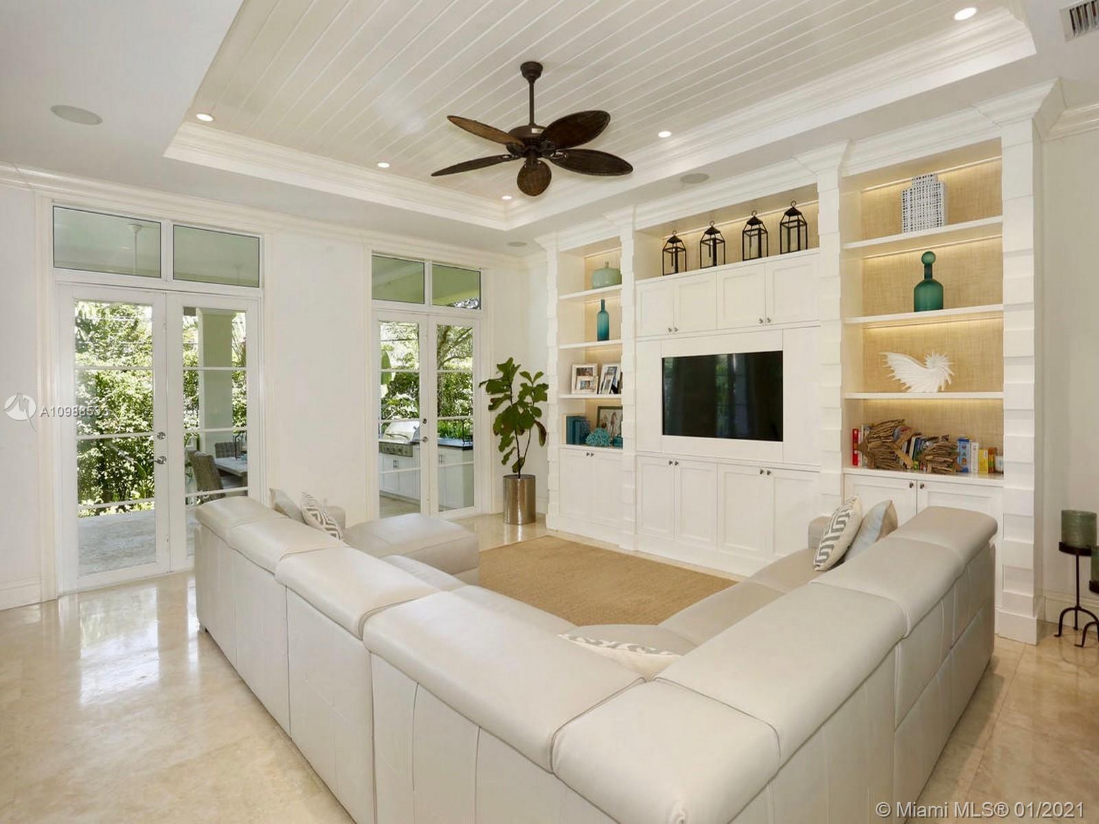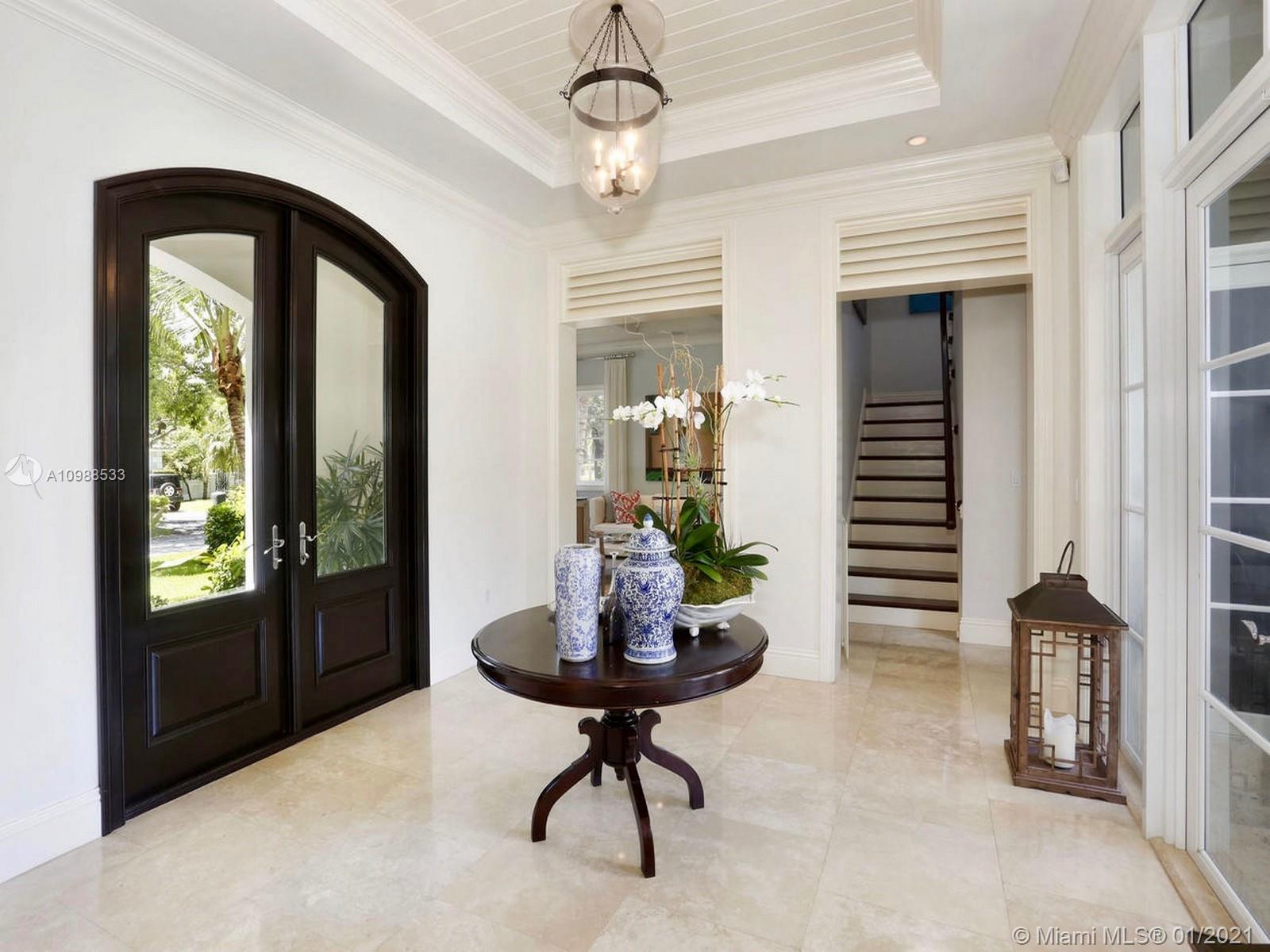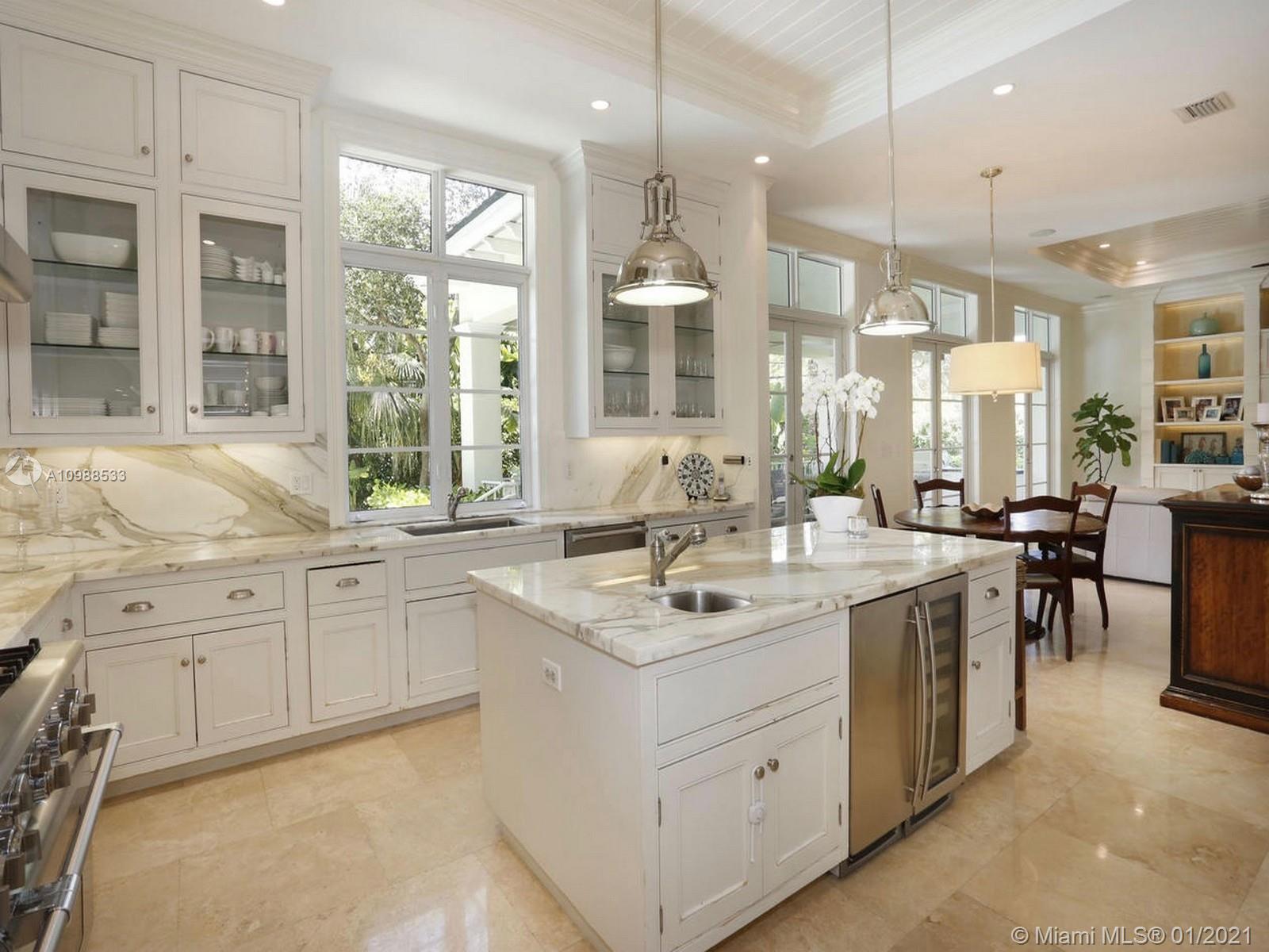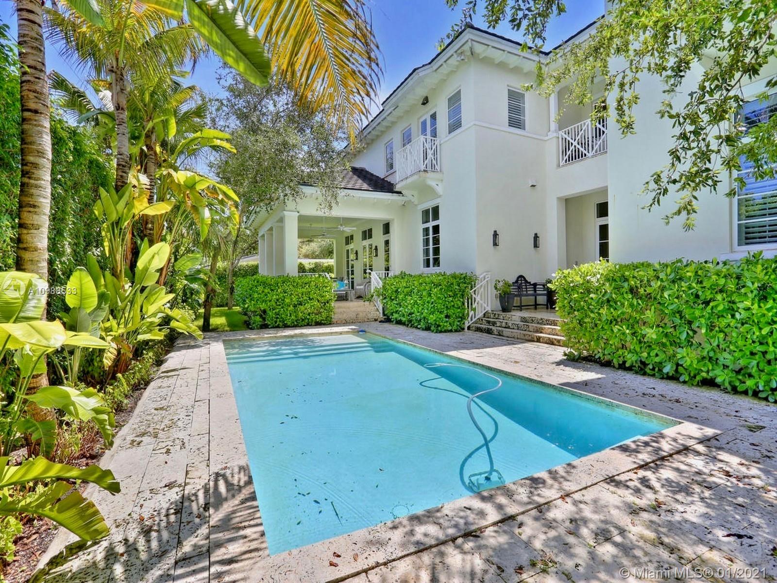 This stunning 5000+ sf island style estate is Gables by the Sea living at its finest. Custom built in 2008, the 5-bed, 5.5-bath, 2-story home features stone floors downstairs, hardwood floors upstairs, high coffered ceilings, crown moldings, and exquisite detailing throughout. 1st floor is an entertainer’s dream with foyer entry, formal living room, and an enormous chef’s kitchen with Thermador appliances, large prep and serving island, eat-in breakfast nook, seamless connection to family room, and French doors to the covered outdoor BBQ, living area, and bright, sunny pool. 2nd floor bedrooms are all en-suite and the huge master boasts spa-like bath, oversized WIC, and terrace overlooking pool. Located on quiet street with cul-de-sac, only 3 houses from Coral Bay Park.