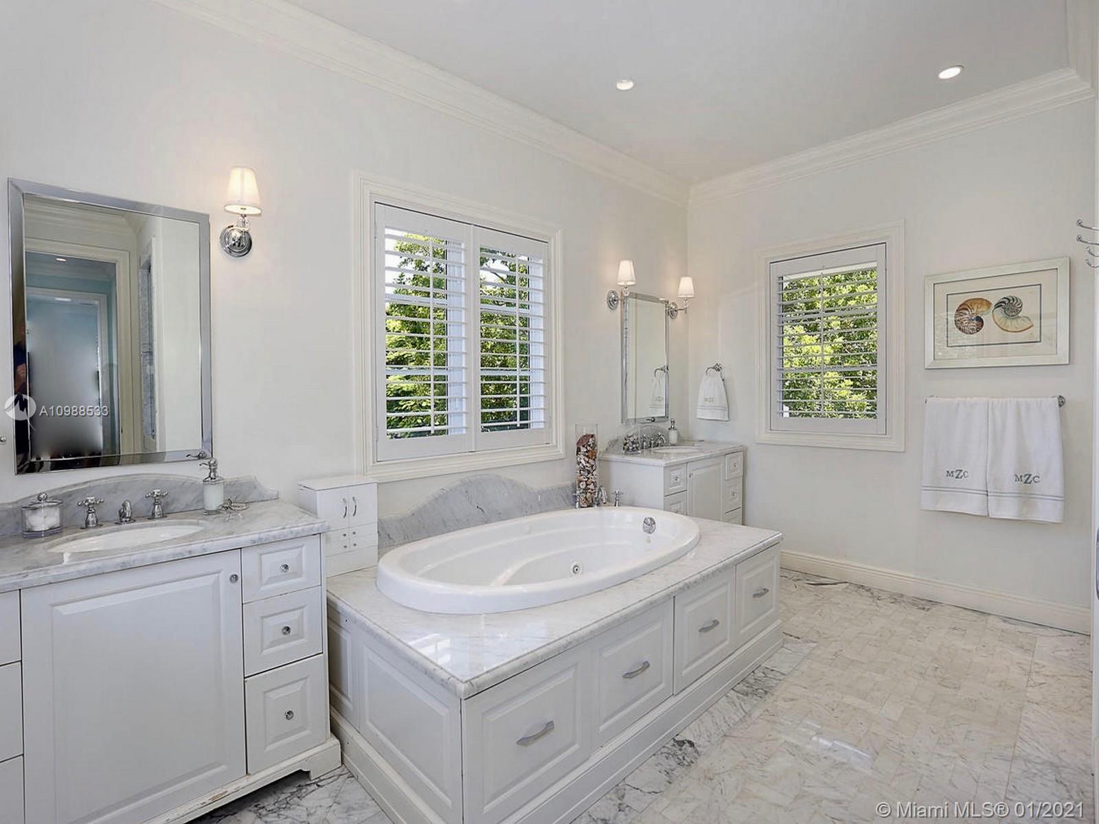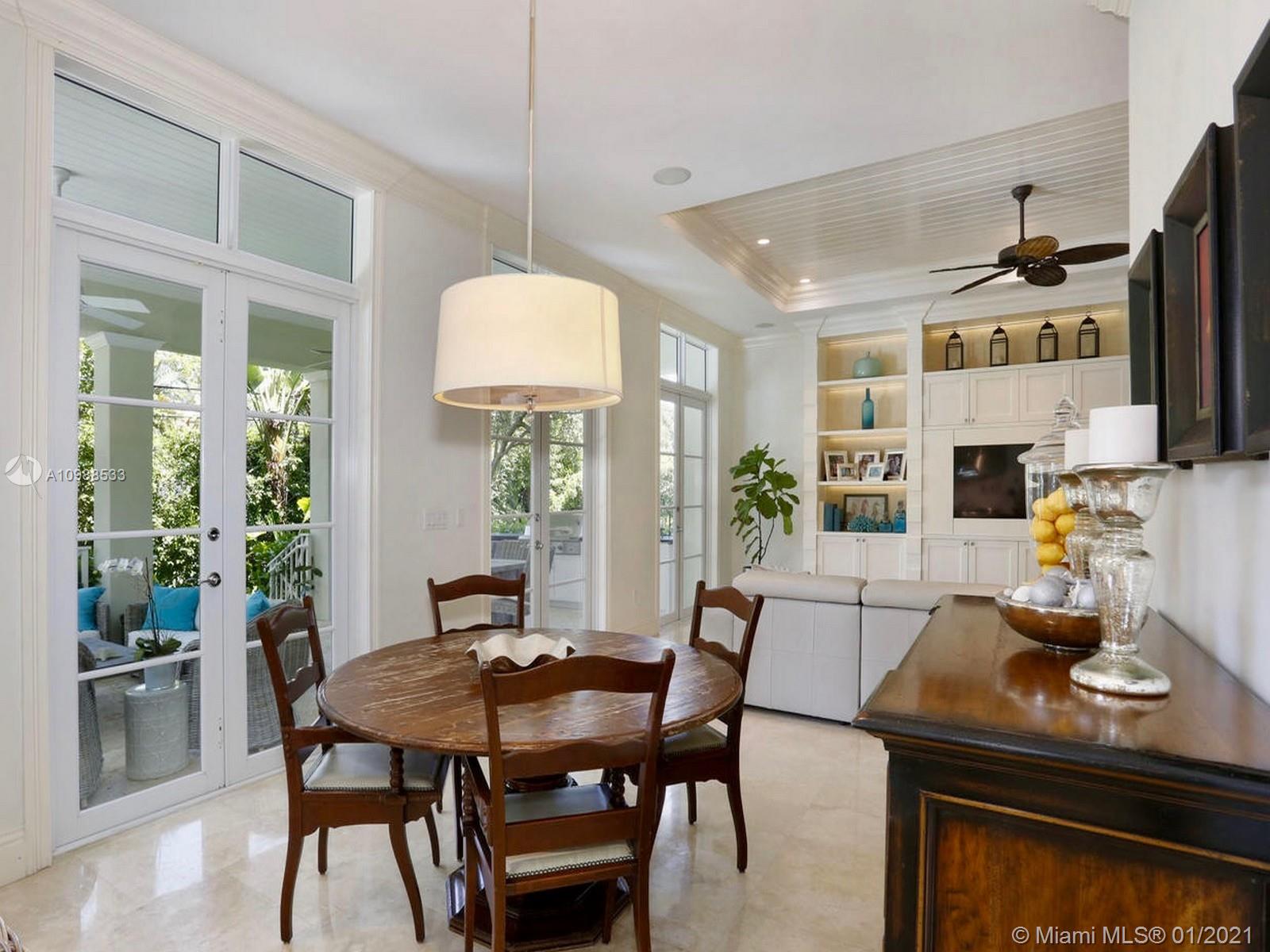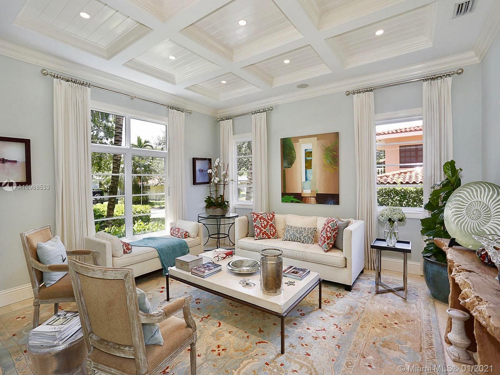 This stunning 5000+ sf island style estate is Gables by the Sea living at its finest. Custom built in 2008, the 5-bed, 5.5-bath, 2-story home features stone floors downstairs, hardwood floors upstairs, high coffered ceilings, crown moldings, and exquisite detailing throughout. 1st floor is an entertainer’s dream with foyer entry, formal living room, and an enormous chef’s kitchen with Thermador appliances, large prep and serving island, eat-in breakfast nook, seamless connection to family room, and French doors to the covered outdoor BBQ, living area, and bright, sunny pool. 2nd floor bedrooms are all en-suite and the huge master boasts spa-like bath, oversized WIC, and terrace overlooking pool. Located on quiet street with cul-de-sac, only 3 houses from Coral Bay Park.