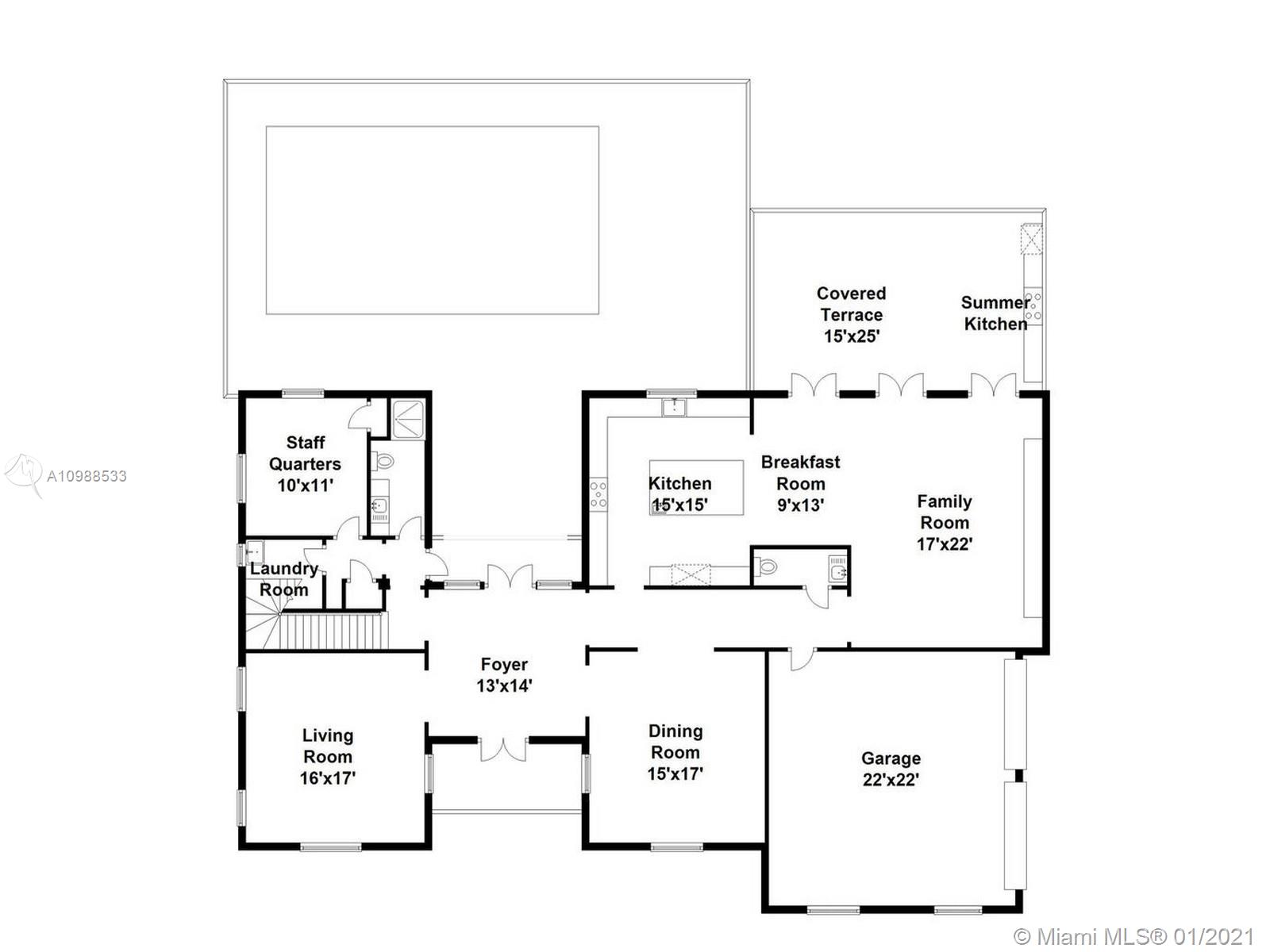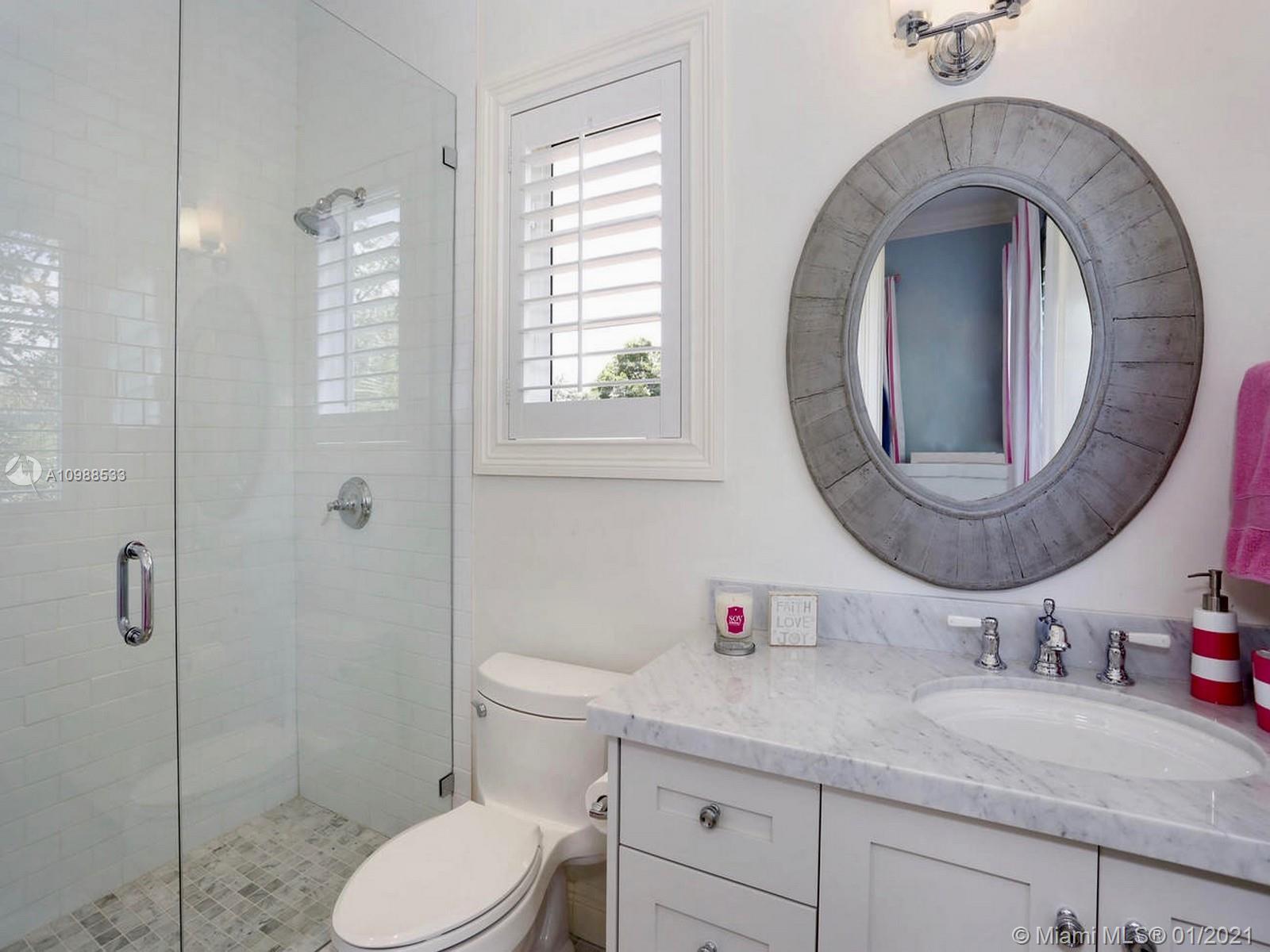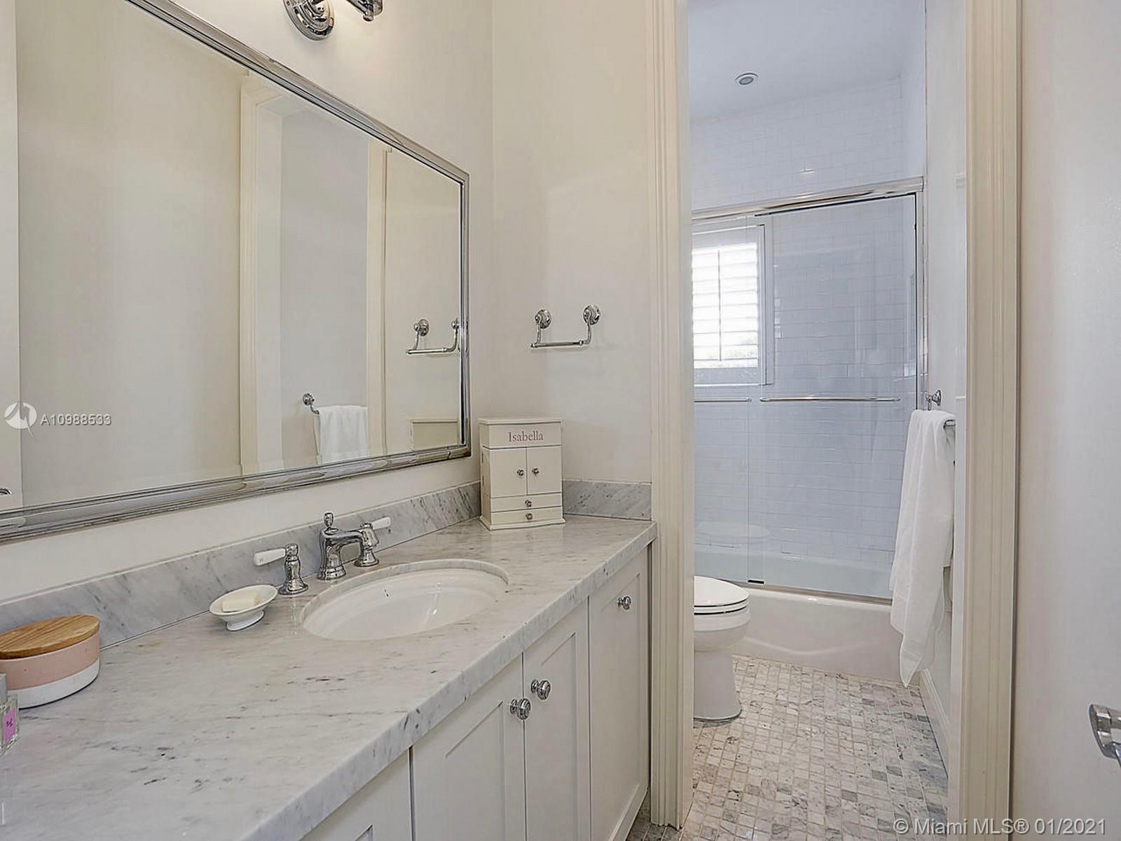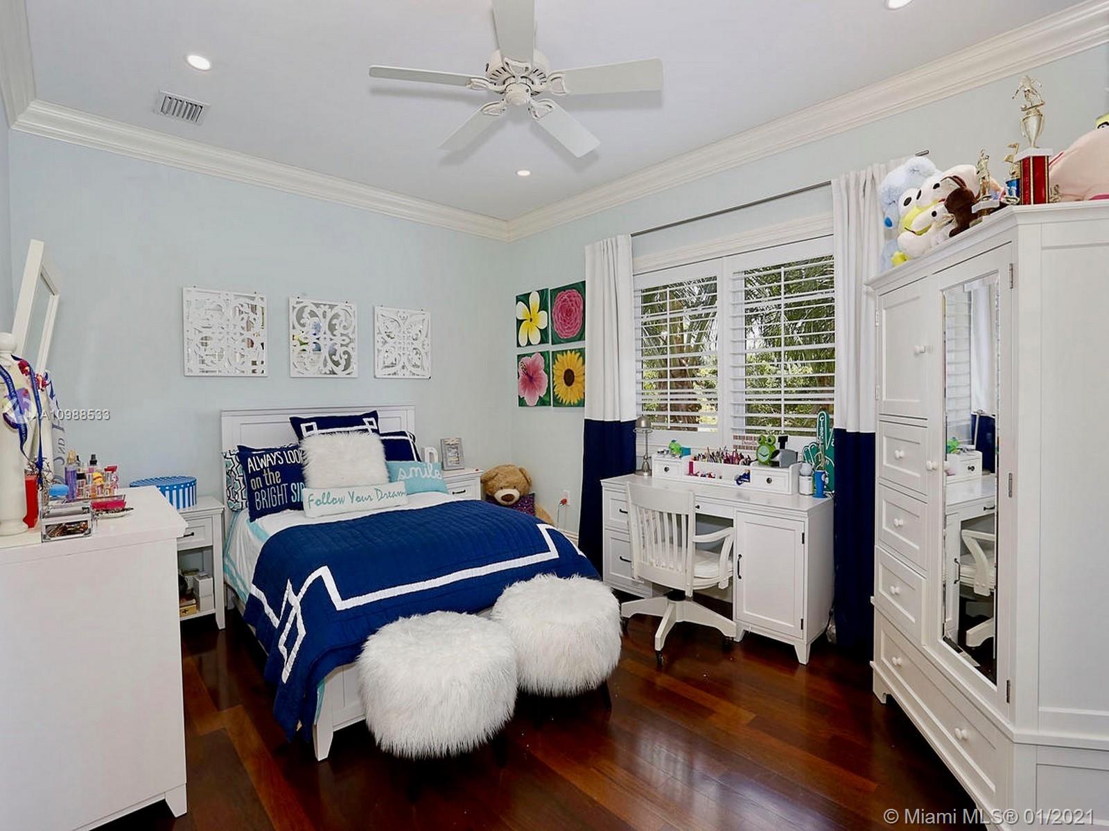 This stunning 5000+ sf island style estate is Gables by the Sea living at its finest. Custom built in 2008, the 5-bed, 5.5-bath, 2-story home features stone floors downstairs, hardwood floors upstairs, high coffered ceilings, crown moldings, and exquisite detailing throughout. 1st floor is an entertainer’s dream with foyer entry, formal living room, and an enormous chef’s kitchen with Thermador appliances, large prep and serving island, eat-in breakfast nook, seamless connection to family room, and French doors to the covered outdoor BBQ, living area, and bright, sunny pool. 2nd floor bedrooms are all en-suite and the huge master boasts spa-like bath, oversized WIC, and terrace overlooking pool. Located on quiet street with cul-de-sac, only 3 houses from Coral Bay Park.