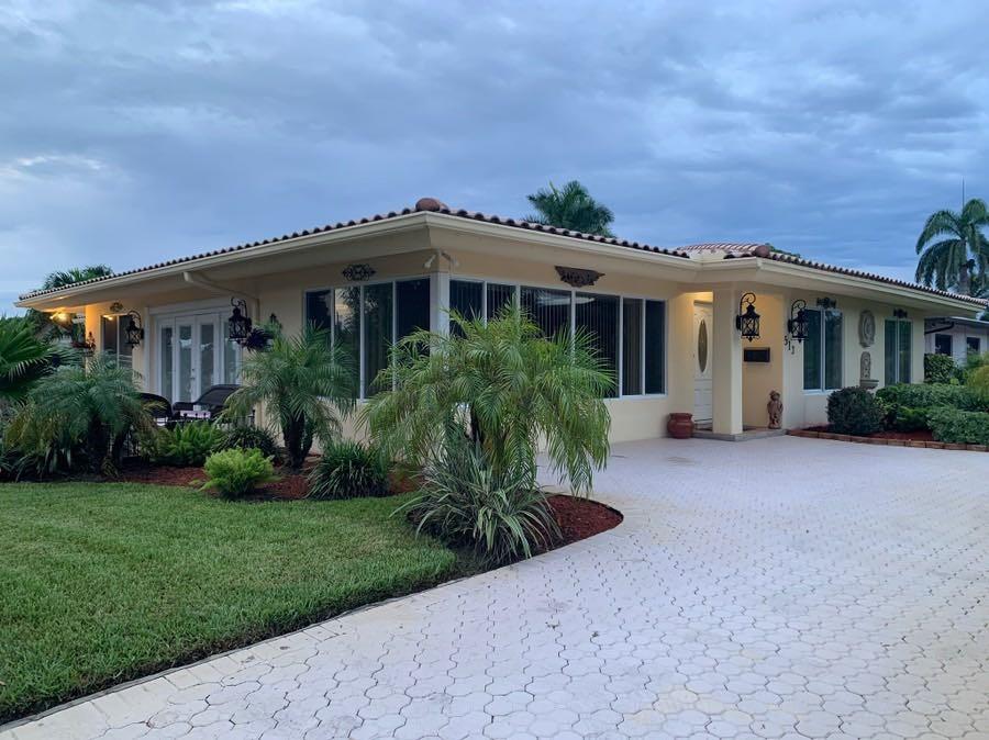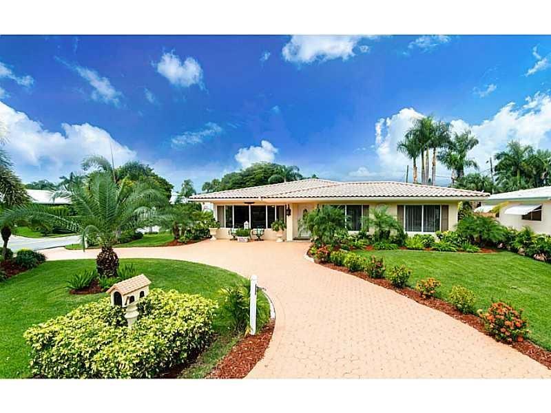 This spacious CORNER LOT home is located across from the Intracoastal & multi-million dollar homes! This magnificent home boasts high quality with Saltillo tile flooring, high impact windows, custom gourmet kitchen with granite counter tops, stainless steel appliances, breakfast bar & dining area, 2nd family/theater room has backyard access. Oversized master bed-room has sitting area, with french doors leading outside to a private garden entrance. Master bath includes a Jacuzzi tub and glass walk-in shower. Custom paved circular driveway on the front of house, and has second driveway w/2 Car garage with porcelain tile floors, Cedar lined workshop, laundry room with 1/2 bath. (2nd Driveway also large enough to park an R/V or Boat) 5 min WALK to the BEACH and Pompano's new beachfront!