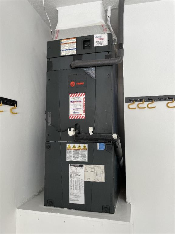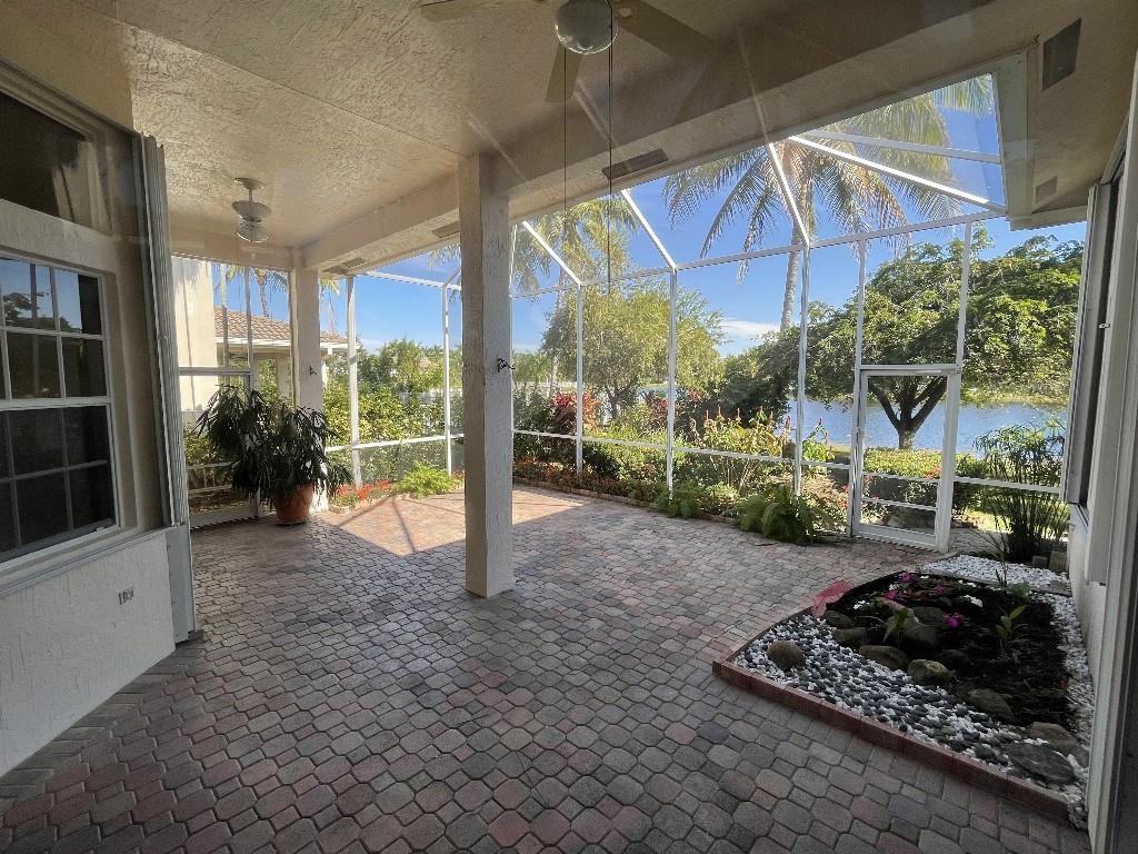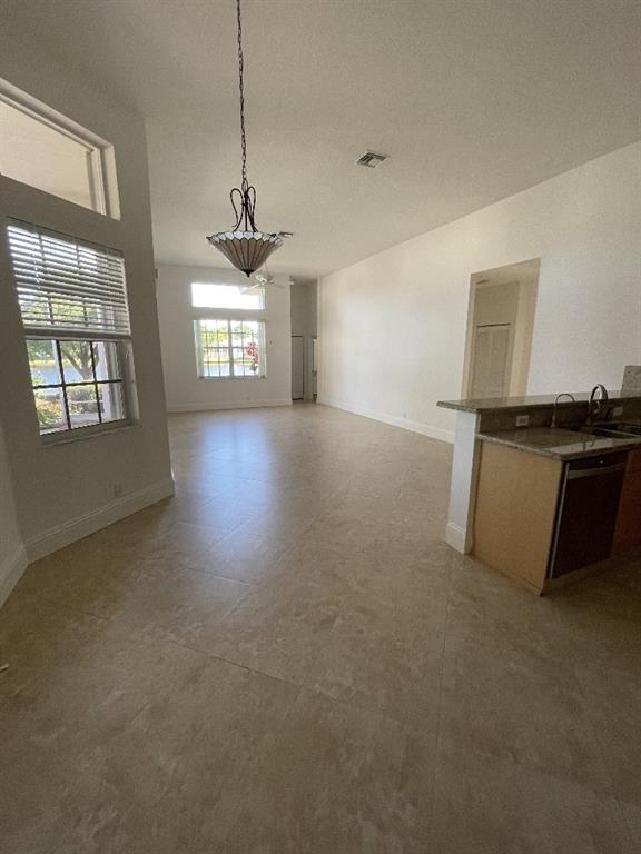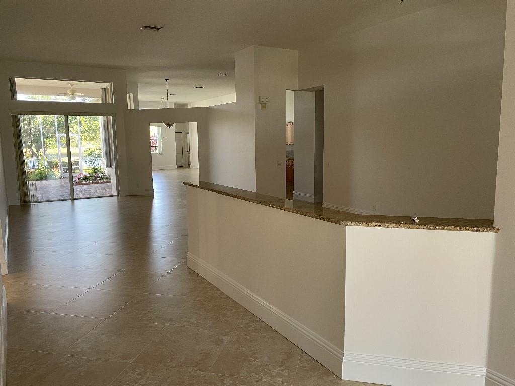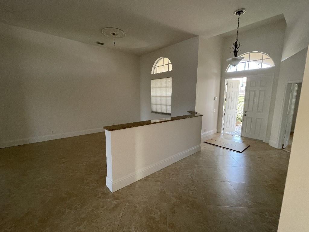 12 foot ceilings. New garage door, toilets, A/C, and water heater. Tiled garage with cabinets and granite counter loading space.