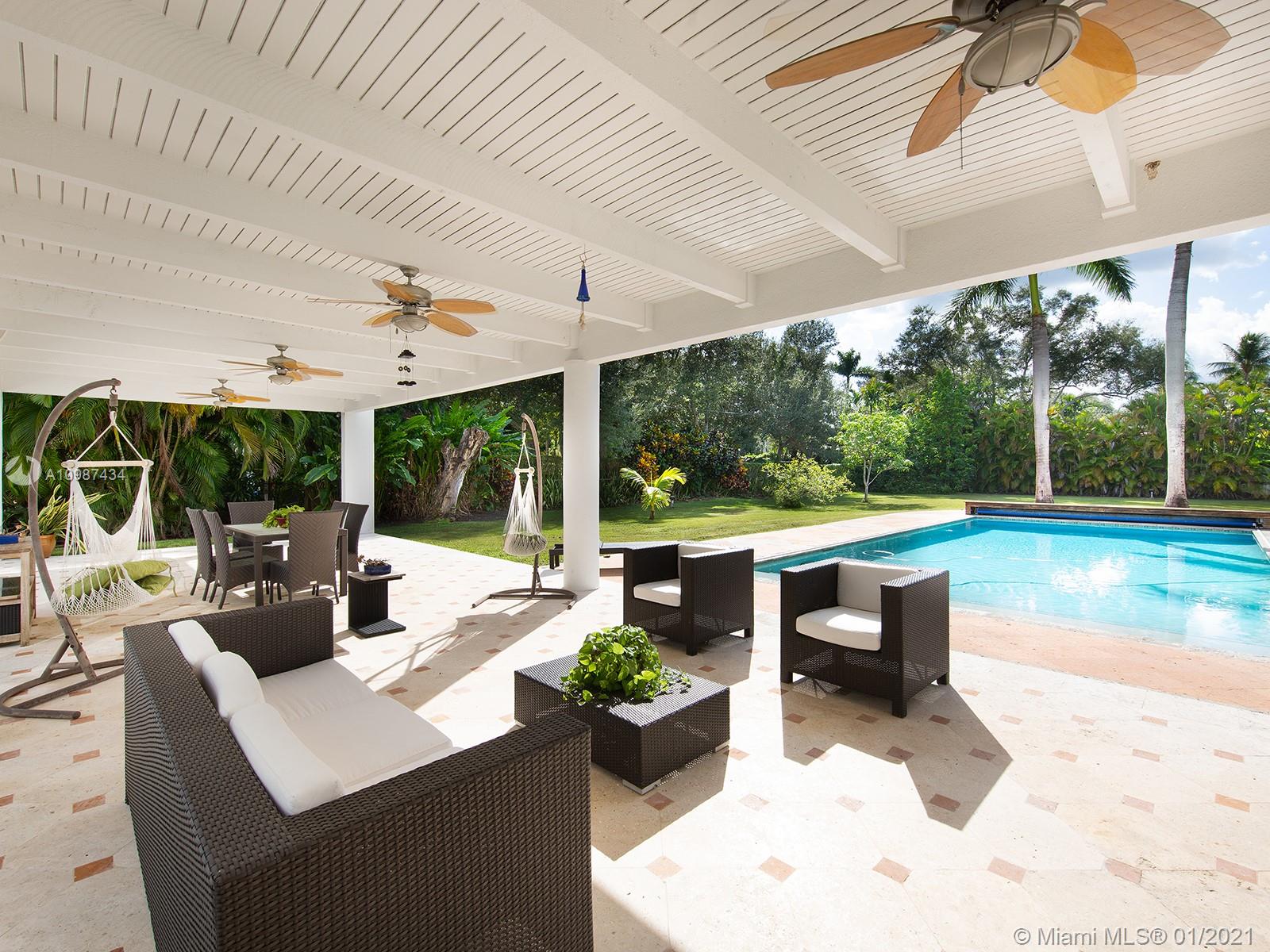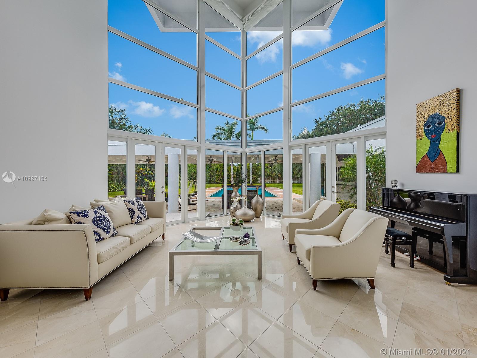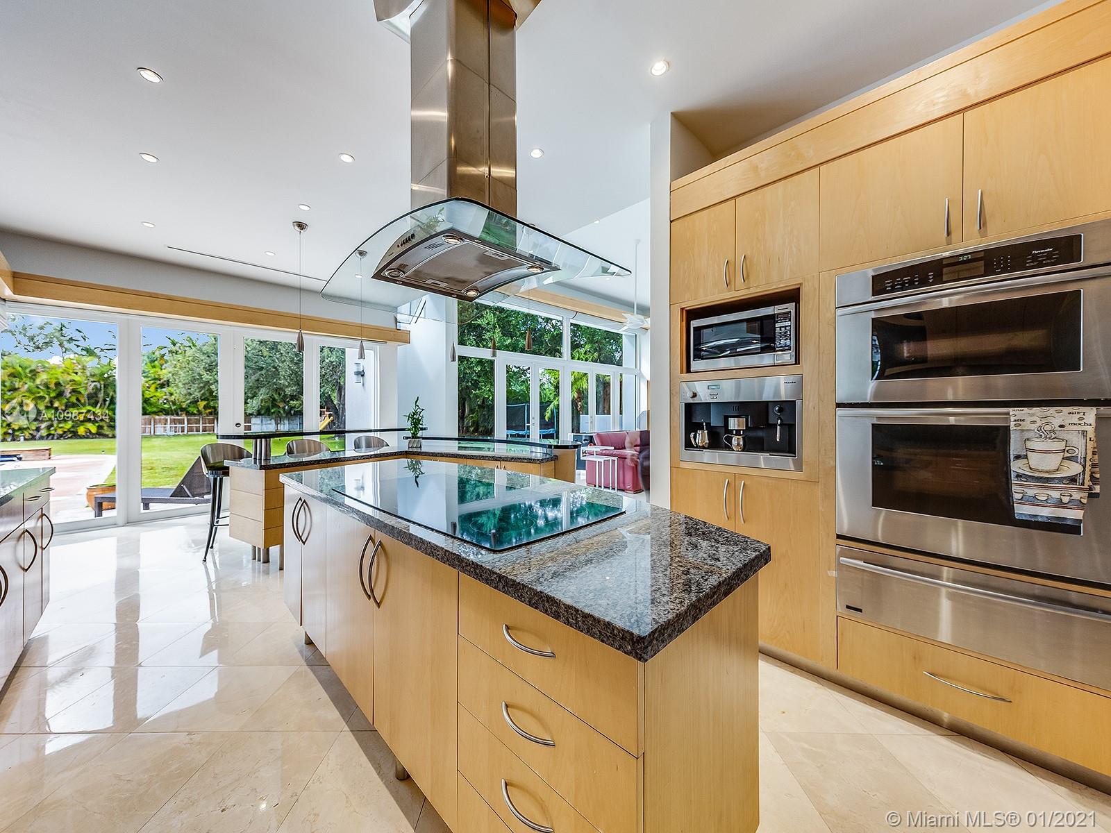 Stunning & dramatic Contemporary! Gated acre compound! Completely renovated & polished to perfection! This light & bright deep acre estate features hi-volume ceilings, marble flooring, gorgeous formal living & dining rooms! Gourmet granite kitchen & bar open to the fabulous family room, all overlooking beautiful grounds & inviting oversized open pool. Great split floor plan with additional second-floor loft with full bath. Separate Lavish master suite with luxurious bath, designer custom-built walk-in closets, also with an adjoining office! 3 spacious bedrooms-ensuite children's quarter. Private maid/guest suite. Large and sleek roofed patio. Gated with sophisticated cameras system and more! Perfect for entertaining! Excellent location on the most sought after N. Pinecrest pretty Street.