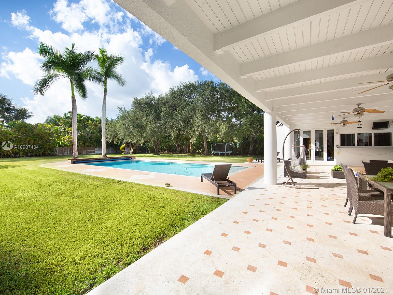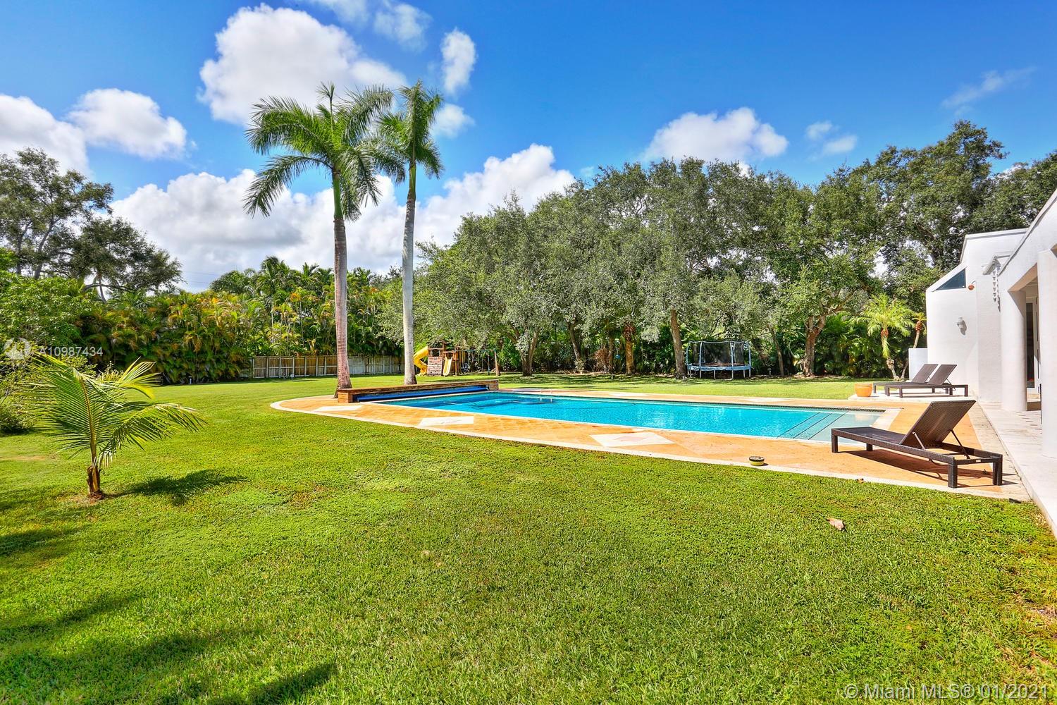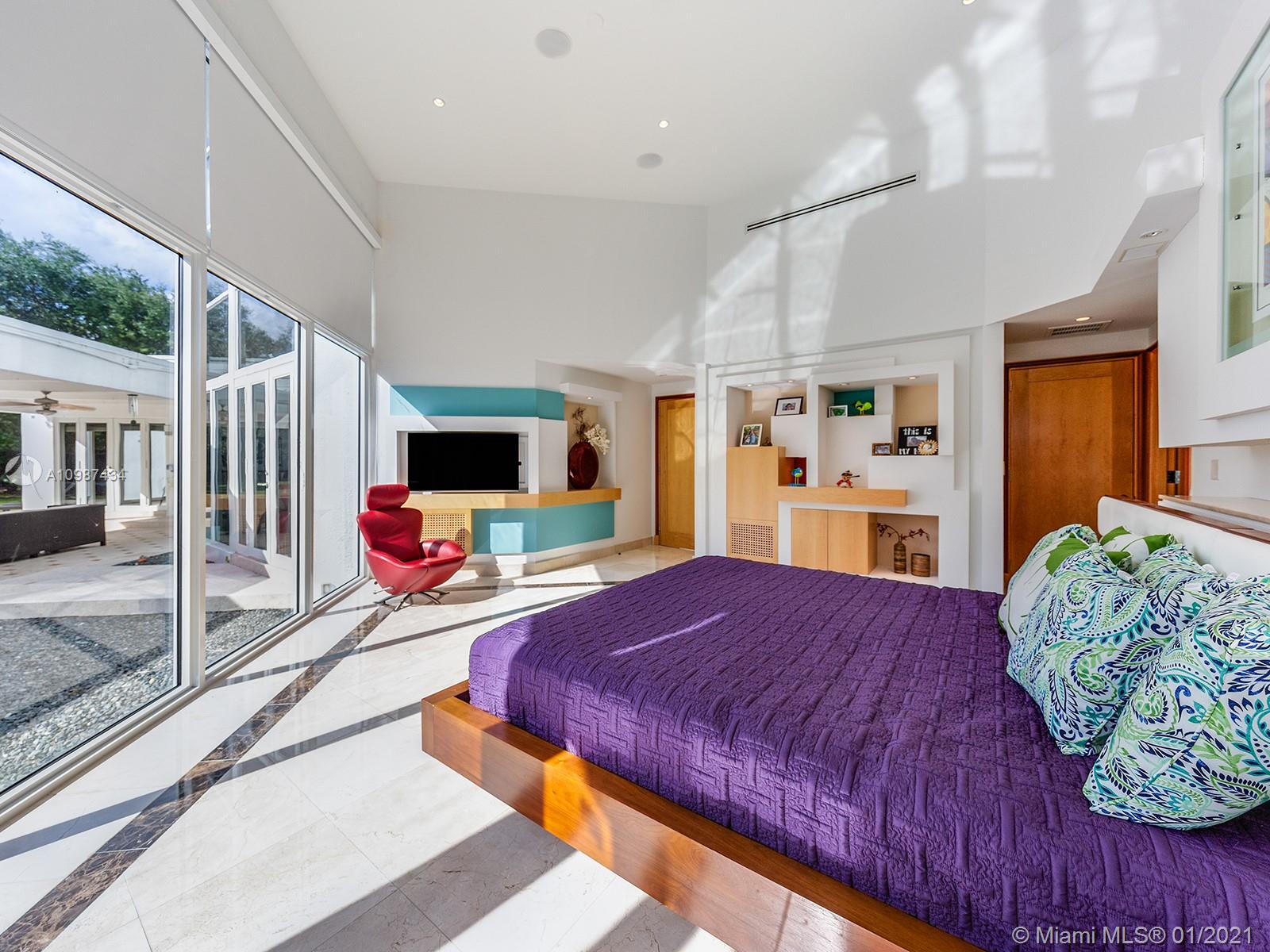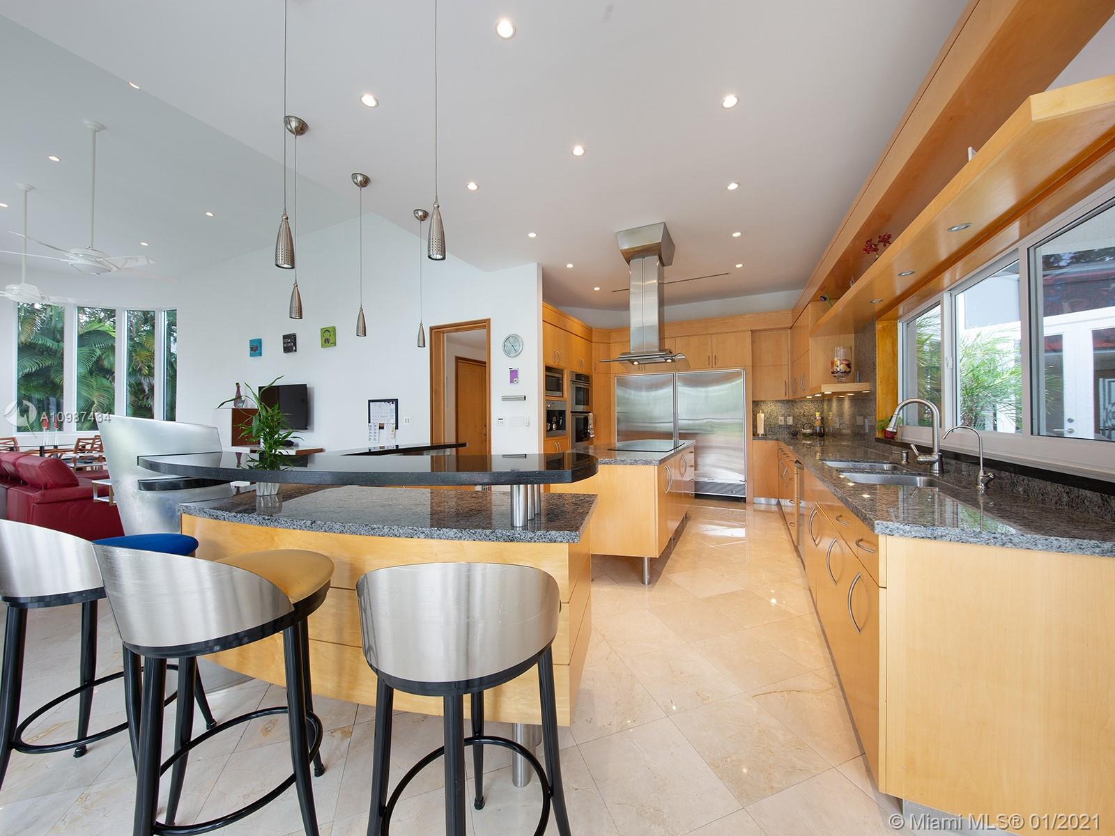 Stunning & dramatic Contemporary! Gated acre compound! Completely renovated & polished to perfection! This light & bright deep acre estate features hi-volume ceilings, marble flooring, gorgeous formal living & dining rooms! Gourmet granite kitchen & bar open to the fabulous family room, all overlooking beautiful grounds & inviting oversized open pool. Great split floor plan with additional second-floor loft with full bath. Separate Lavish master suite with luxurious bath, designer custom-built walk-in closets, also with an adjoining office! 3 spacious bedrooms-ensuite children's quarter. Private maid/guest suite. Large and sleek roofed patio. Gated with sophisticated cameras system and more! Perfect for entertaining! Excellent location on the most sought after N. Pinecrest pretty Street.