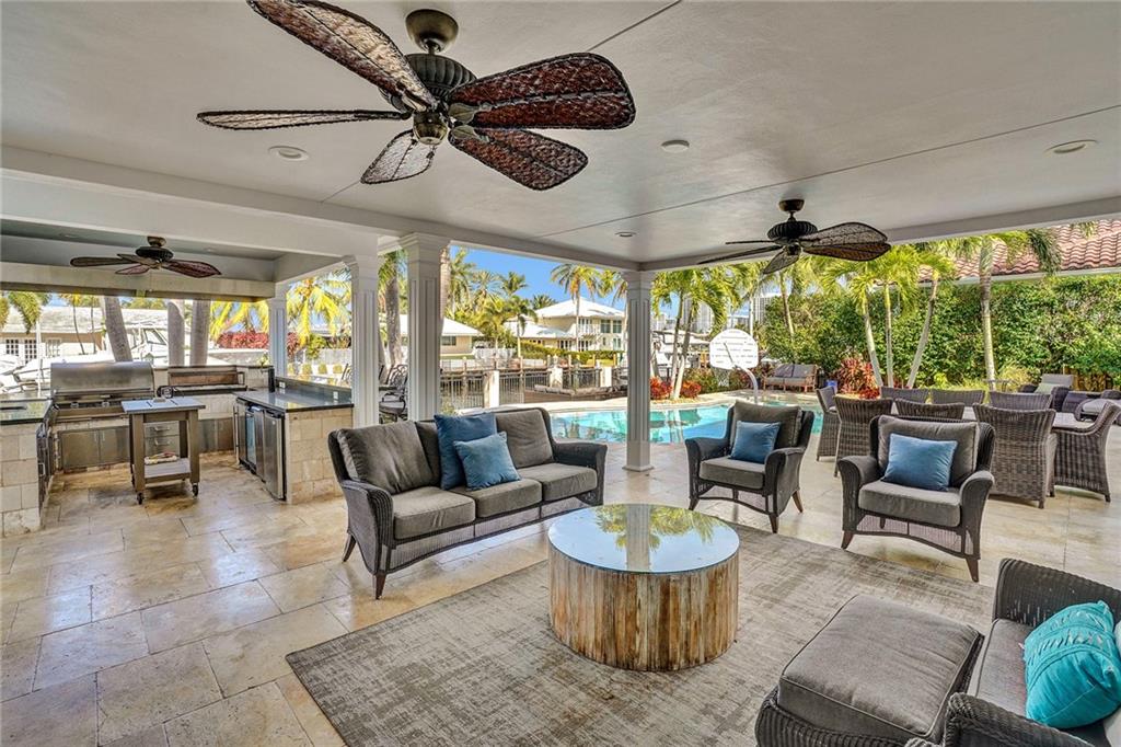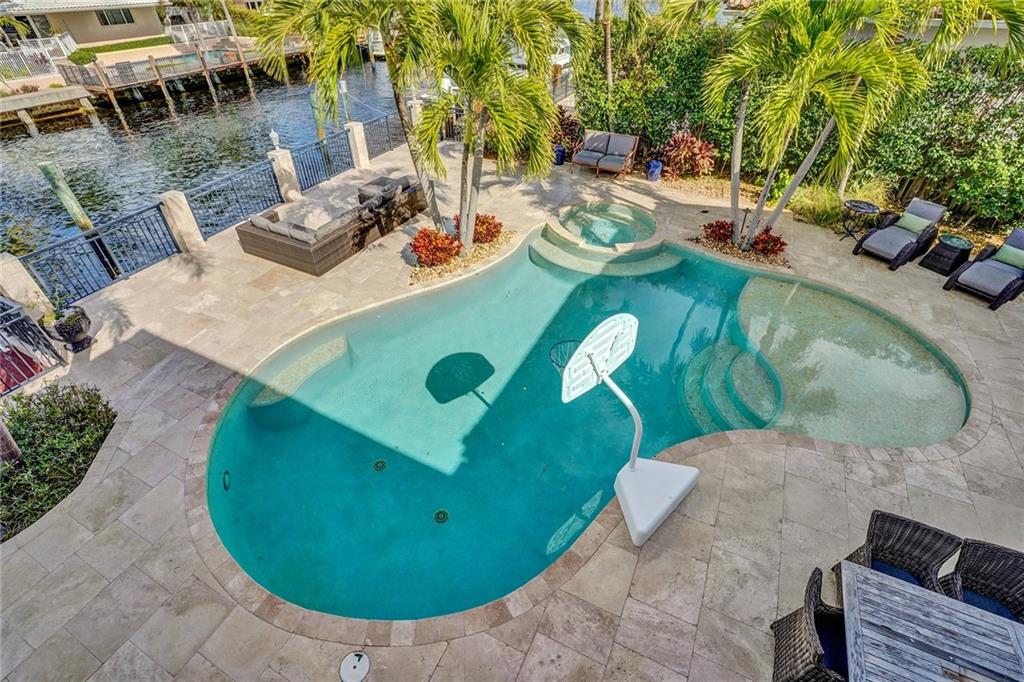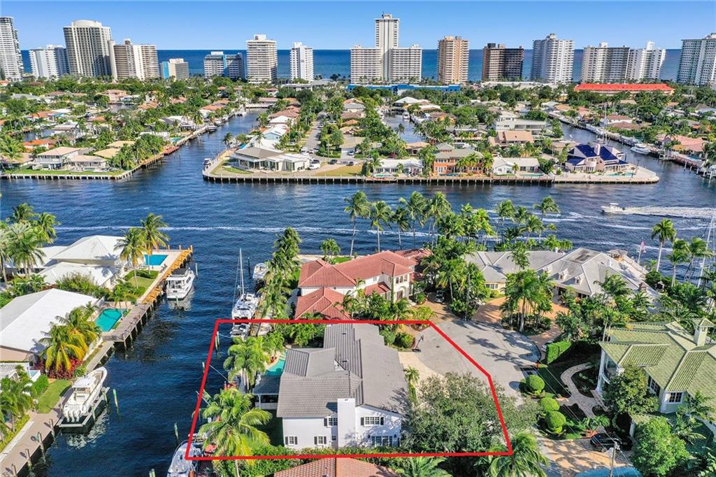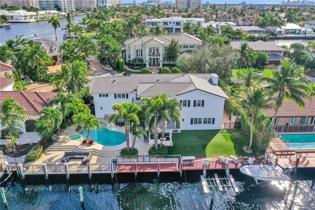 No expense spared in this exceptional expansion and remodel of this "Traditional Coastal" home. Located one house from the Intracoastal with 115' of Deepwater Dock this home offers exceptional views, massive outdoor living space and dockage for up to 105' of vessels. Rebuilt like new over the last several years including: seawall and dock, roof, new pool and spa, all PVC sewer lines and all Hurricane Impact Windows and Doors. Incredible master suite offers large sitting room, high ceilings, two massive walk in closets and private balcony overlooking the Intracoastal. Large living spaces perfect for entertaining. Five bedrooms + office + upstairs kids family room. All baths redone and 4 of the bedrooms have private baths. Generator ready. Huge garage and massive driveway space.