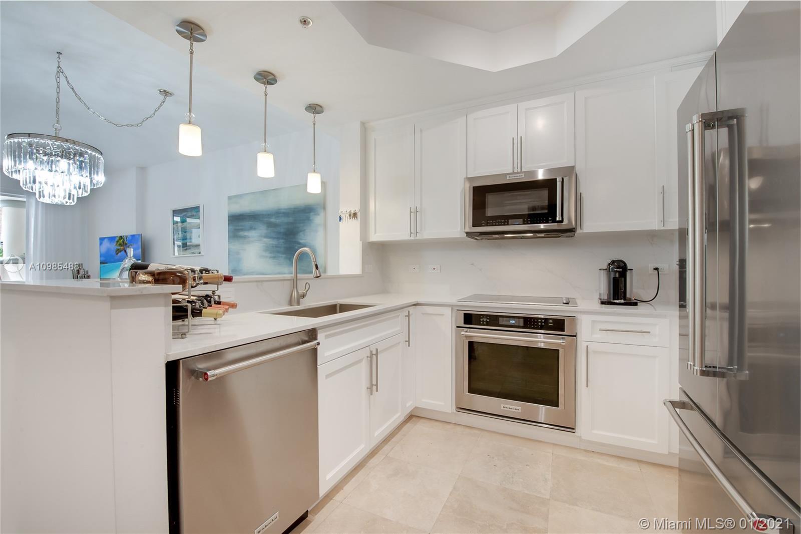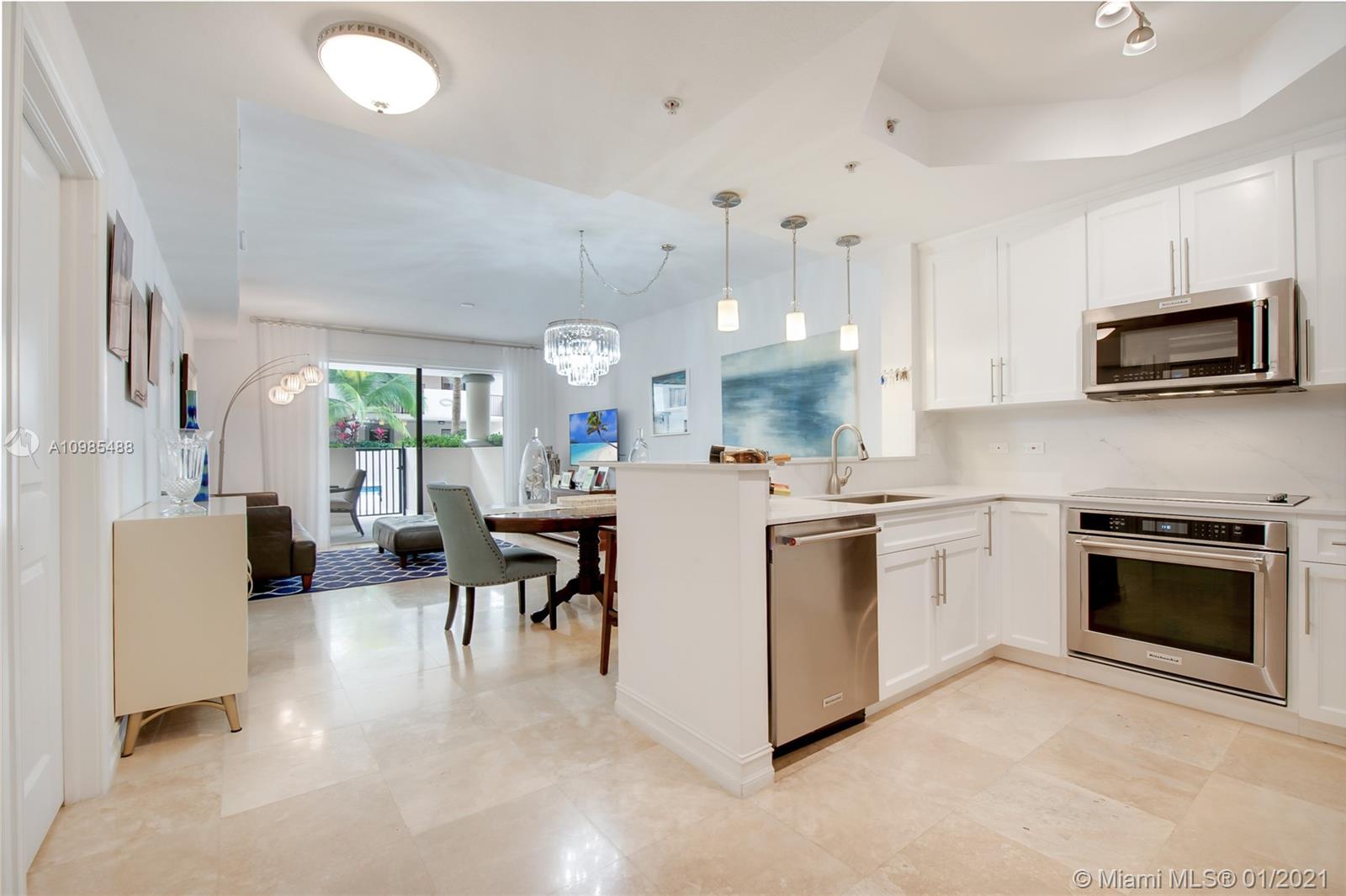 Stunning & completely remodeled w/ Quartz kitchen tops, new cabinets & appliances w/extended warranties. Master bath w/dual sinks, jacuzzi, impact windows, new dryer/washer. Large living area w/an open kitchen concept facing the pool area. Natural stone in the oversized terrace facing the pool area, perfect for entertaining. Walk-in closets in the master bedroom & all of the closets designed by The Container Store. One large bedroom w/ a full bath is located on the first floor & other 2 bedrooms w/full baths on the 2nd floor. Fitness & office center w/ free internet located in this boutique building. Secured building & parking w/ cameras. Covered tandem parking for 2 cars. Perfect location close to the Mile where you enjoy restaurants. 24 hours notice required for showing. Mask required.