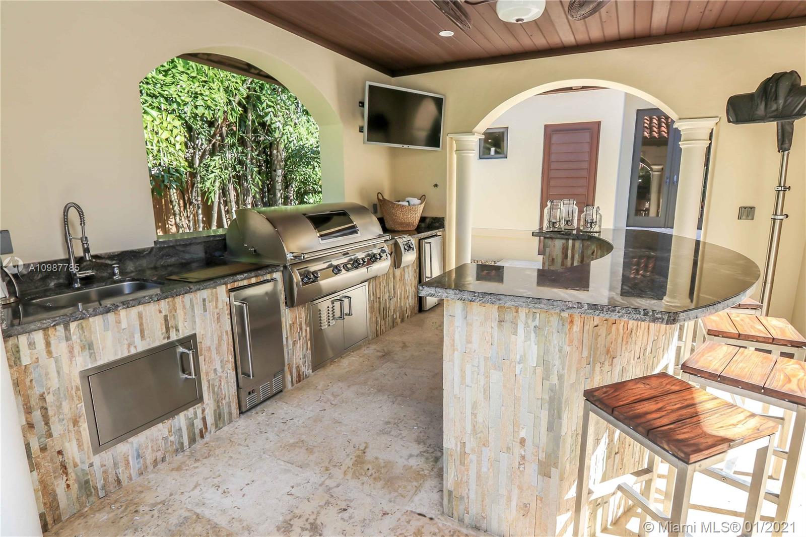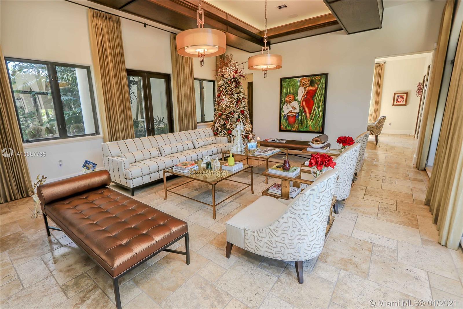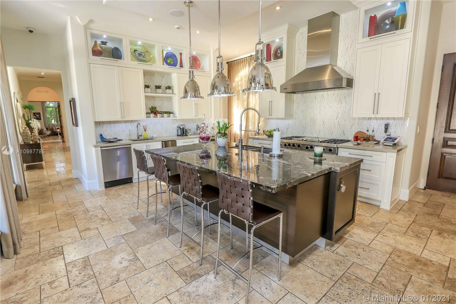 Designer Finished, Lavish Tropical Paradise with High-End, Detailed, Superb Quality Finishes Throughout. High Volume Ceilings. State of the Art Dream Kitchen with Viking, Sub-Zero and Miele Appliances for the Most Discerning Chef. Luxury Living with 6 bedroom/8.5 baths. Dining Room with a State of the Art Temperature Controlled Wine Cellar. Separate Guest Quarters. The Perfect Blend of Indoor and Outdoor Living and Entertaining. Spectacular Bar Room that can also be an additional Master Bedroom with its own entrance and a Billiard Room. All Bedrooms are En-Suites with Walk-In Closets. There are 4 Bedrooms Upstairs and 2 Downstairs. Elevator Shaft Ready. Smart Home and Security Cameras Throughout. Corner Property. Furniture is Available for Sale Upon Request. Much Larger Than Tax Roll.