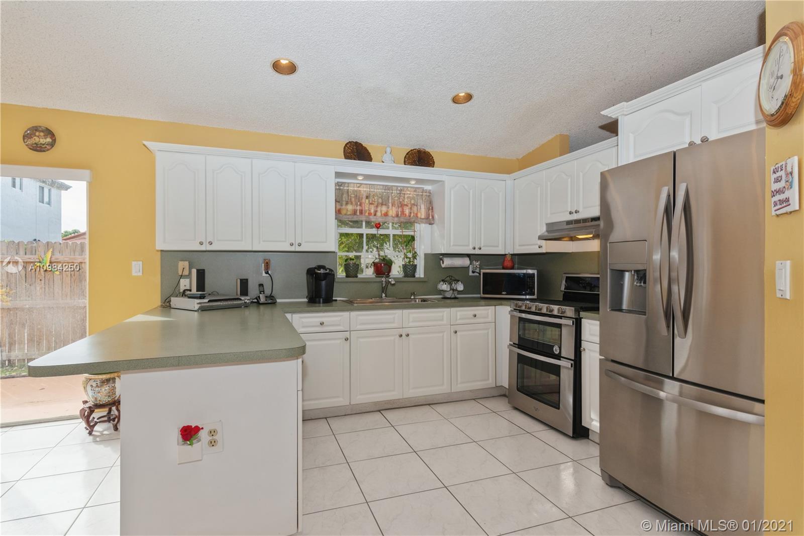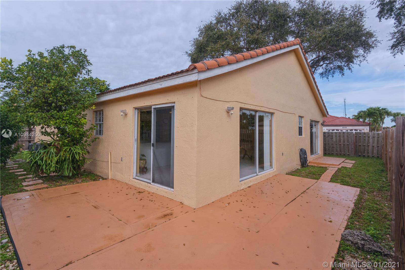 Enjoy living in this spacious, recently painted, 3/2 home. Lots of natural light, living/dining room & family room/kitchen with garden view. Split bedroom design: Master has walk-in closet & garden access. Shower in master & tub/shower in guest bathroom. 2 car garage with remote access. AC, gas water heater, washer & gas dryer are 4 yr old. Stainless steel gas double-oven stove & refrigerator are 2 yr old. Fenced corner lot with neighbors only on 1 side. Security camera, Ring doorbell, Ecobee AC thermostat, storm panels & tiled roof. Great gated guarded community: Pool, club house/party room, children’s park & lake with walking path are a few steps away. Schools & Coral Lake Park just outside the Complex. Easy access to shopping centers & I-75/Turnpike. Easy to show. Ready to move in!