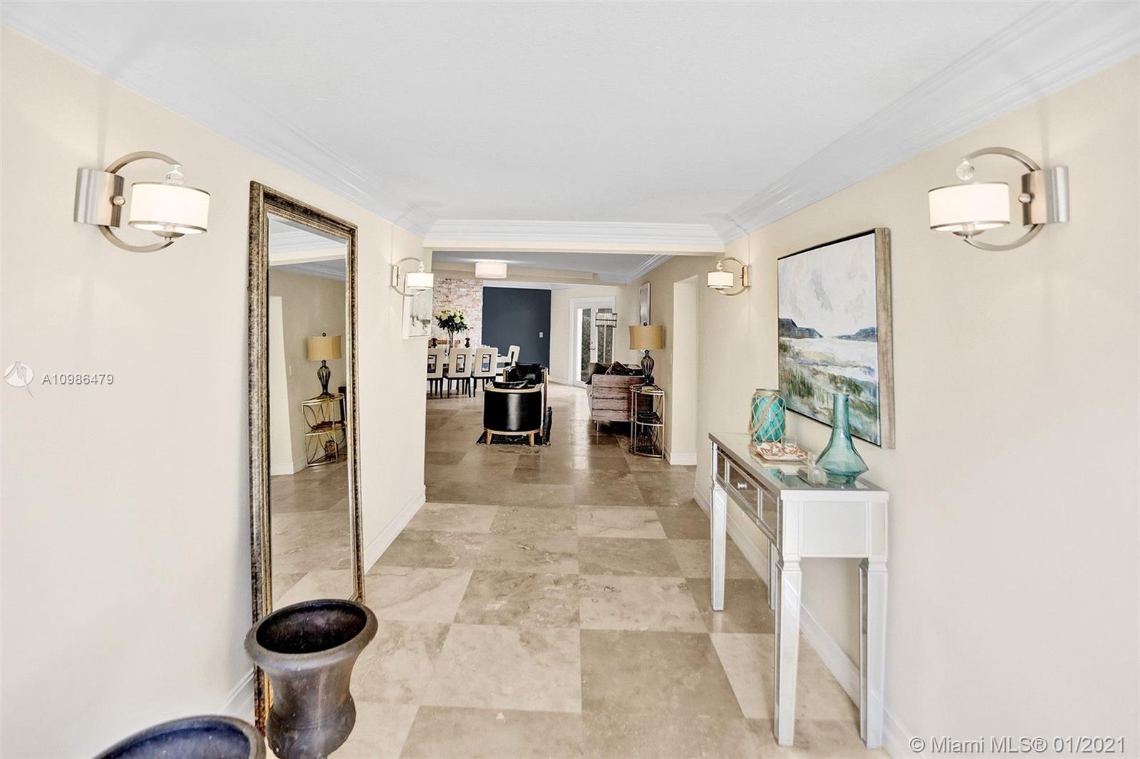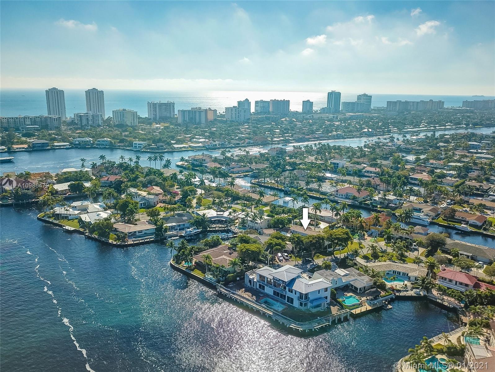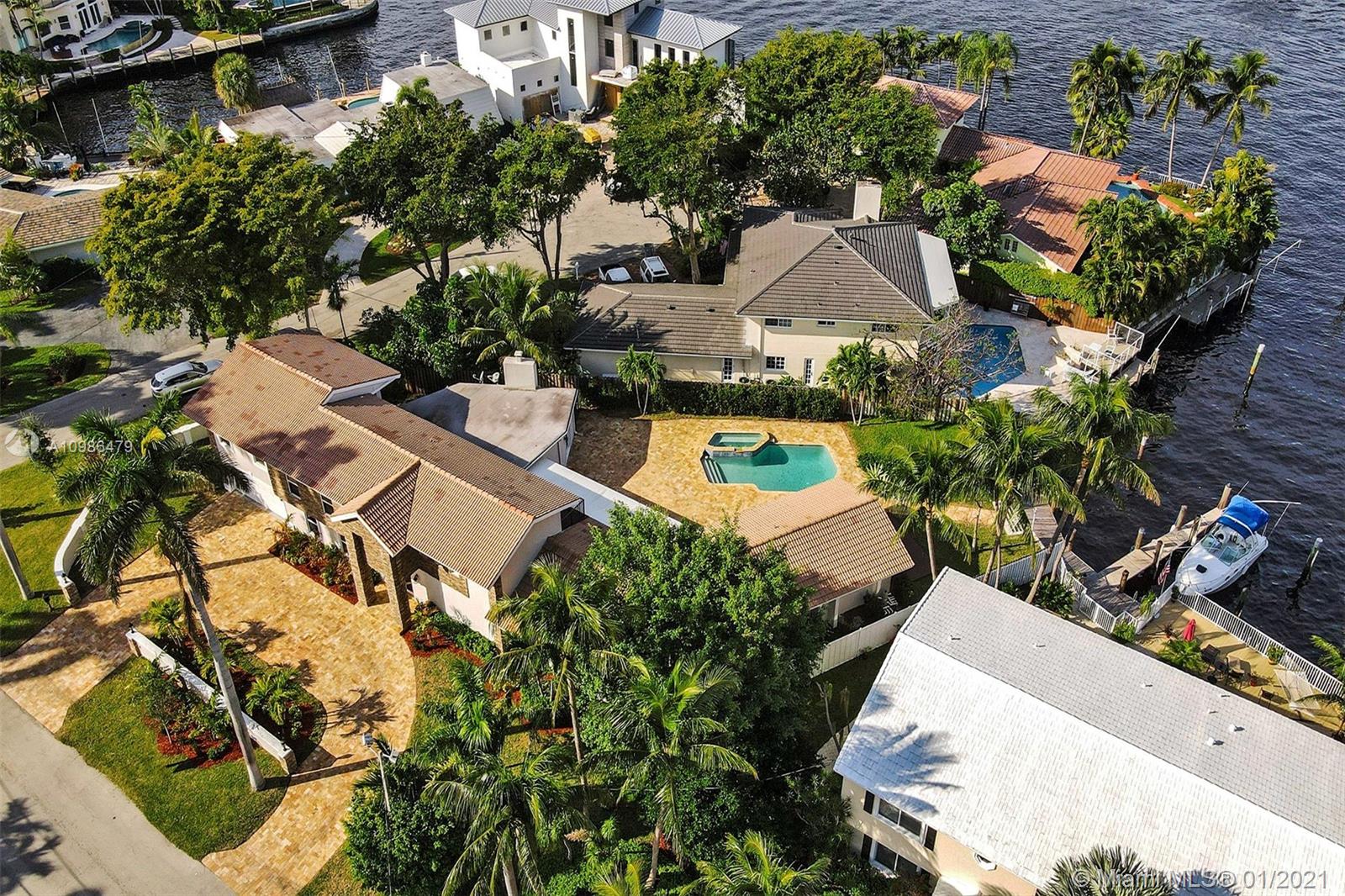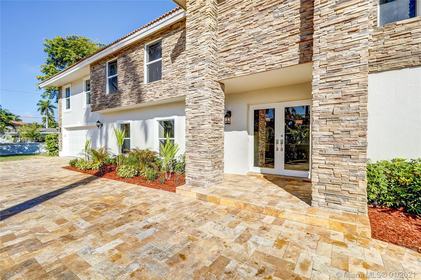 Tropical waterfront & lake views from this beautifully updated corner lot mansion in the coveted Lake Santa Barbara Shores area of Pompano Beach. This bright open concept 2-story pool home features abundant living space. Master suites both up & downstairs, each w/ private deck overlooking water. The huge chef's kitchen is fit for entertaining w/ 2 counter depth stainless refrigerators. Large driveway + oversized 2 car garage, spacious fenced-in patio w/ pool/spa, IMPACT windows & doors throughout, stone surround fireplace, private ELEVATOR, new professional landscaping & dockage for an approx 40ft boat. Zoned for A Rated McNab Elementary School. Northern Exposure for cool breezes. Minutes by boat to Hillsboro Inlet, a quick drive to Pompano Pier & dining, i95 & Ft. Lauderdale.